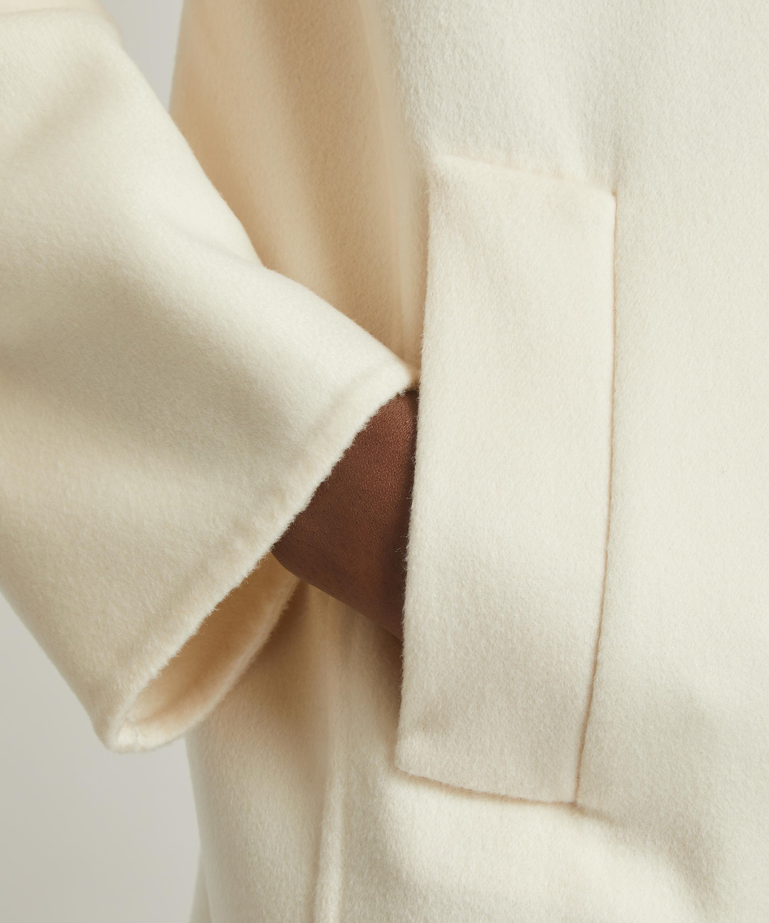 Imbued with the brand’s signature refinement and meticulous eye for craftsmanship, this short coat is cut from a sumptuously soft wool and cashmere blend. A cropped, double-breasted design with a wide lapel collar, button closure and welt pockets, it features a buttoned martingale on the back for a tailored finish.