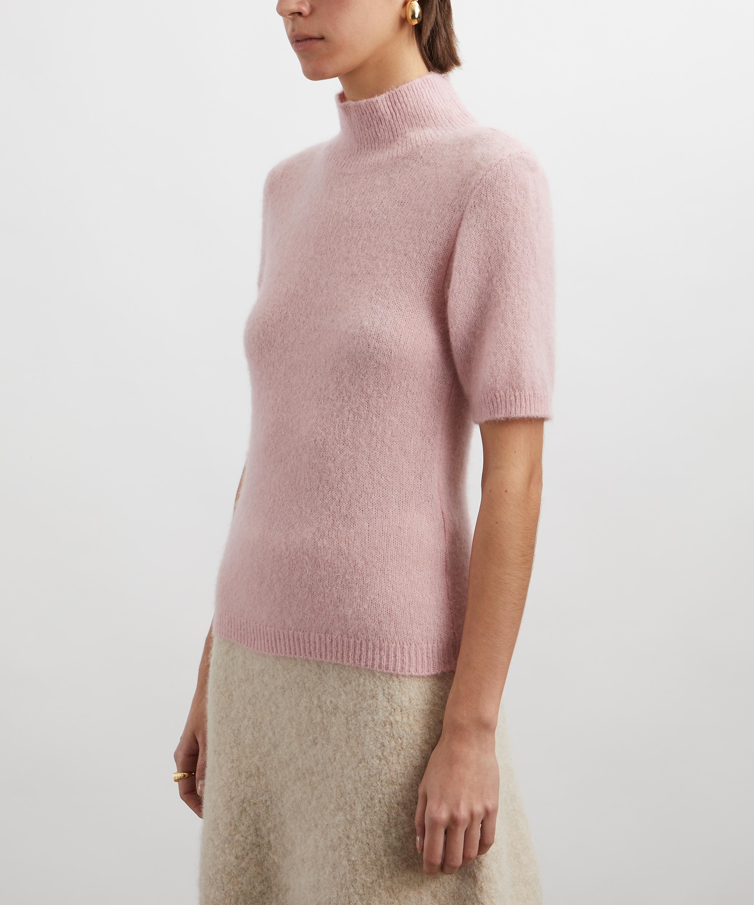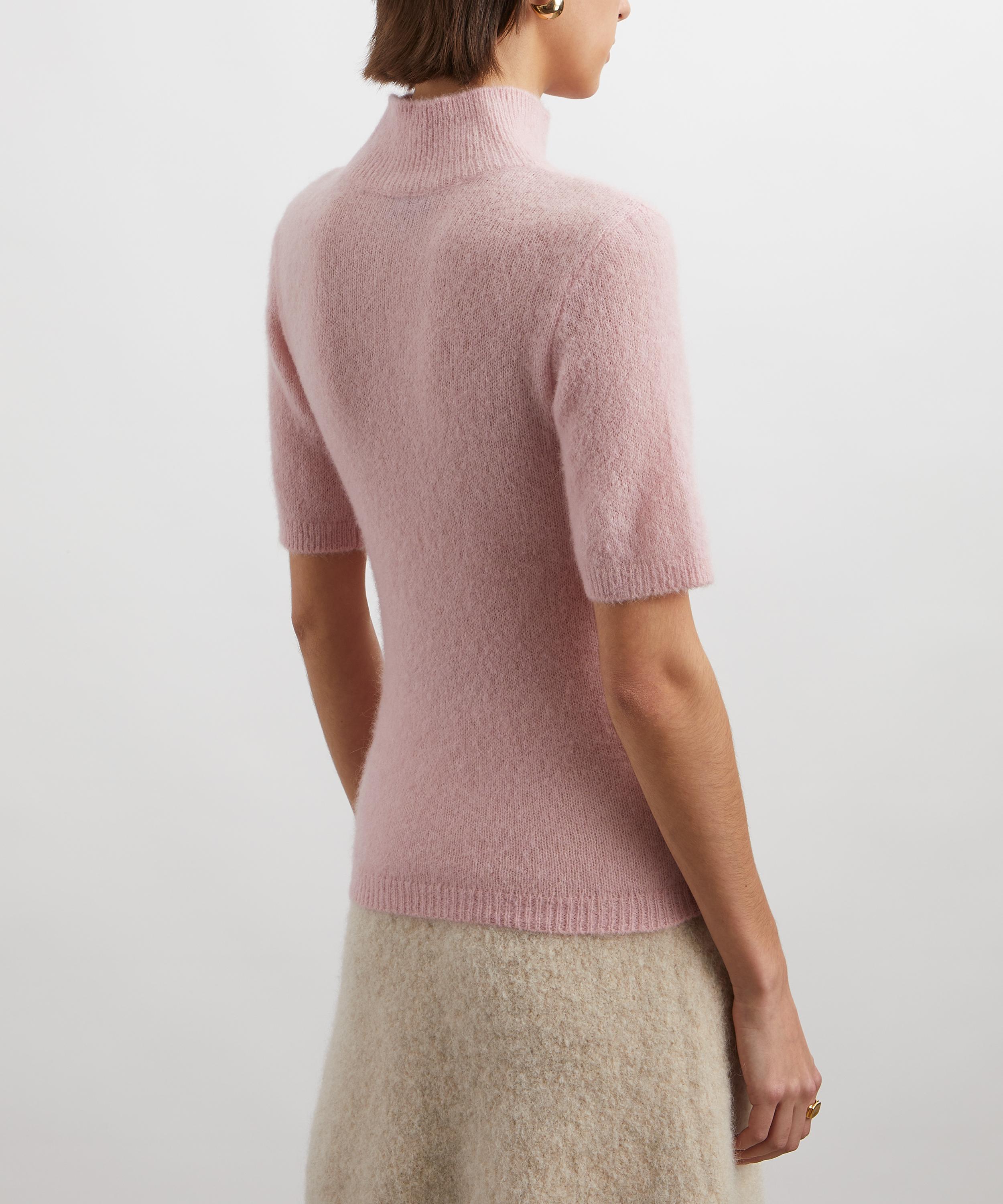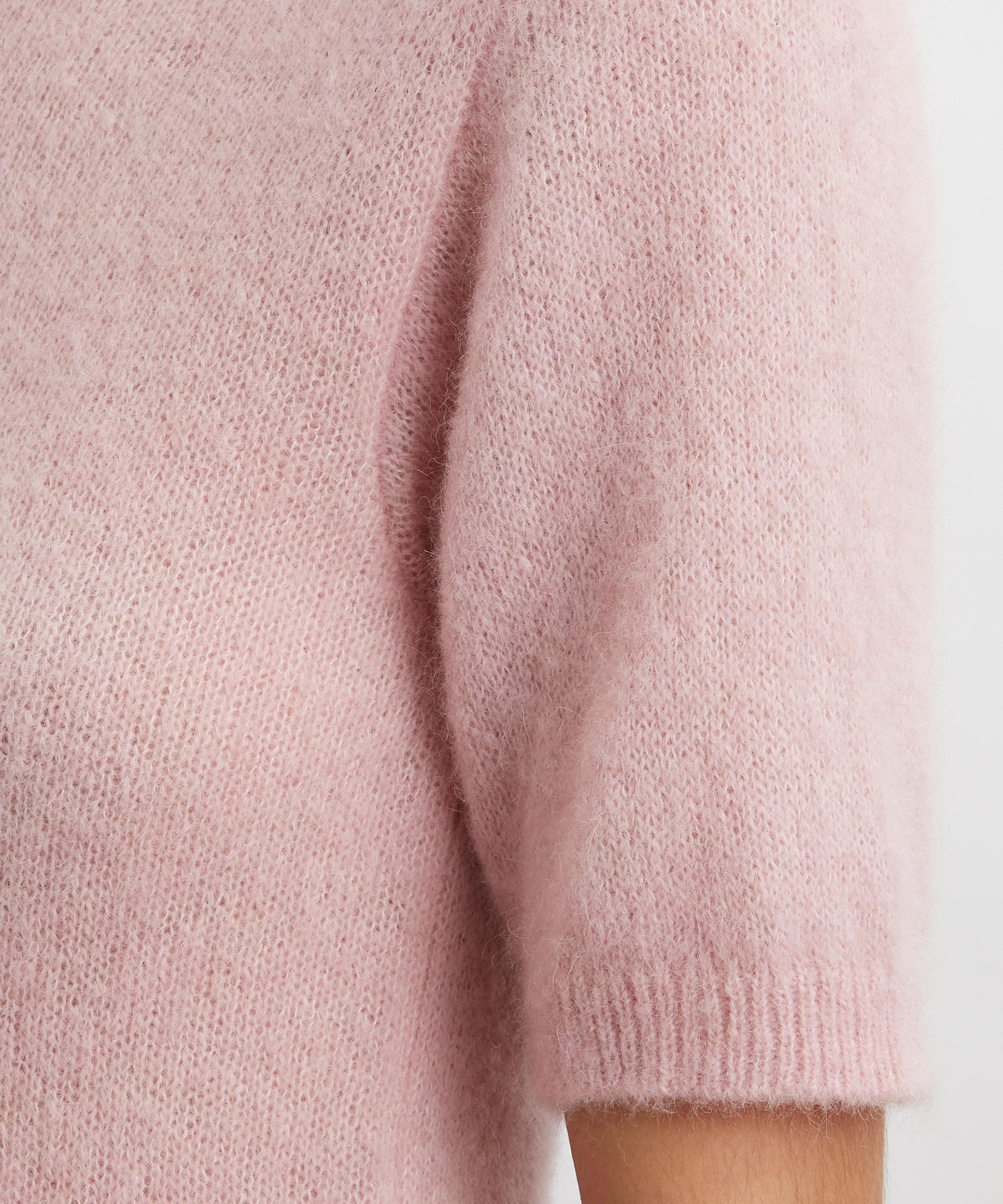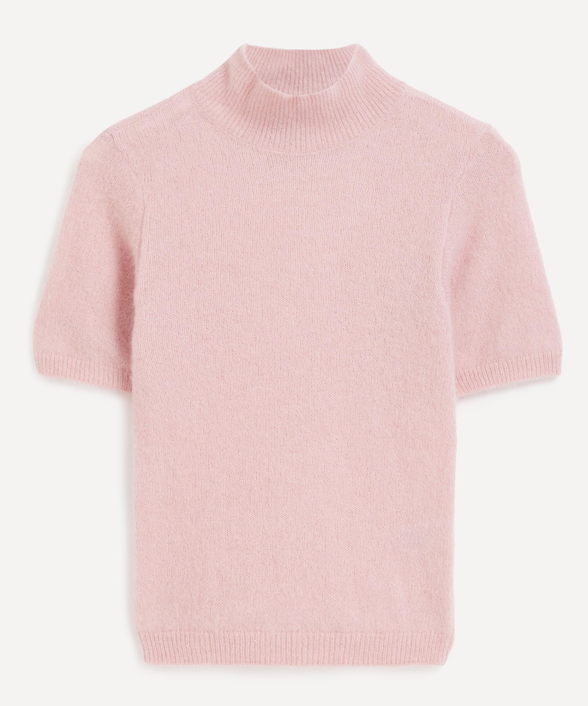 Crafted from a soft blend of alpaca, this cardigan exudes elegance with its high collar and short sleeves. Warm and endlessly wearable, pair it with denim or a shirt for an effortlessly chic ensemble.