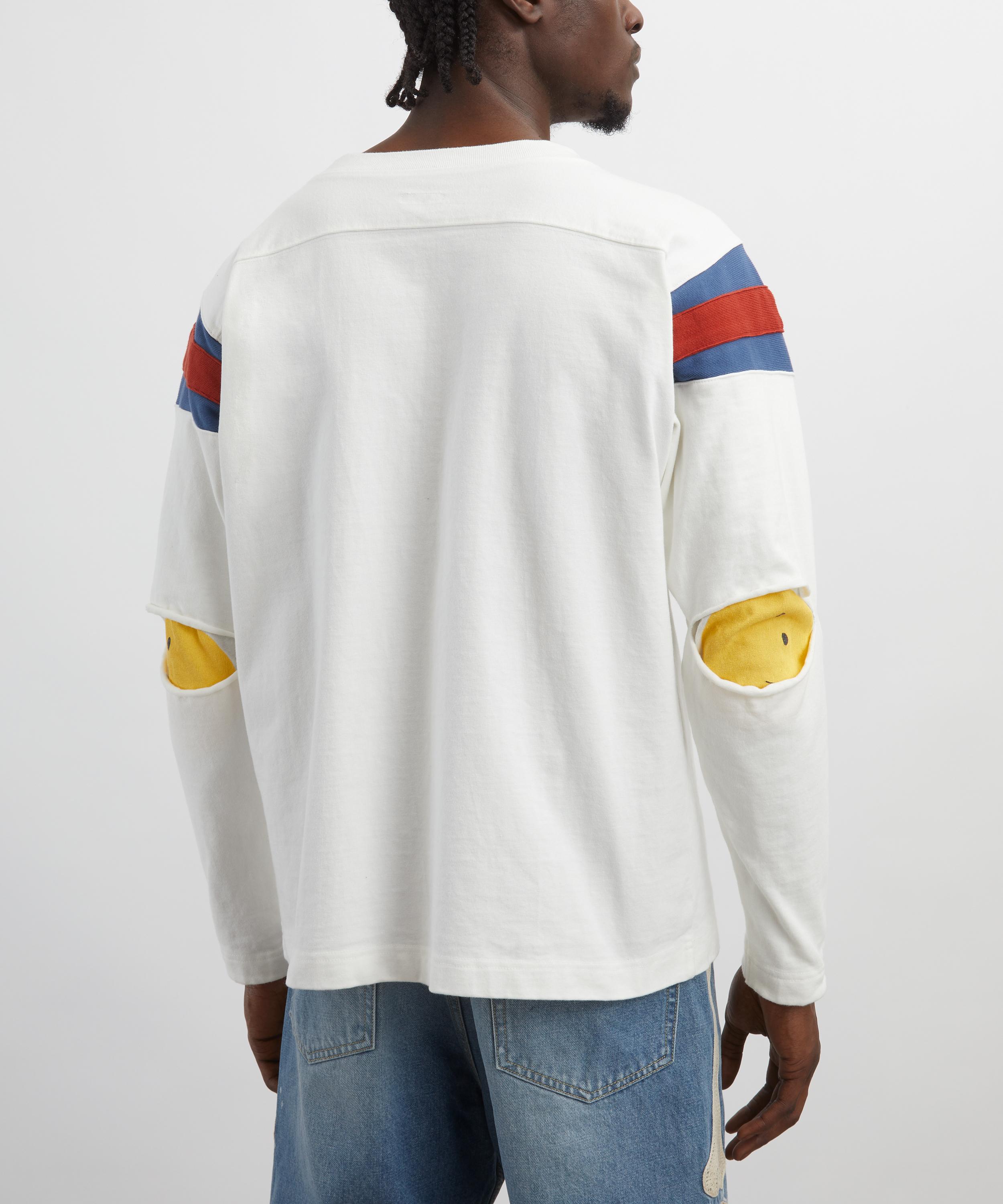 Designed with a modern, streetwear aesthetic, the Elbow-Rip Football Long-Sleeve T-Shirt from cult Japanese label KAPITAL is an eclectic addition to your casual edit.