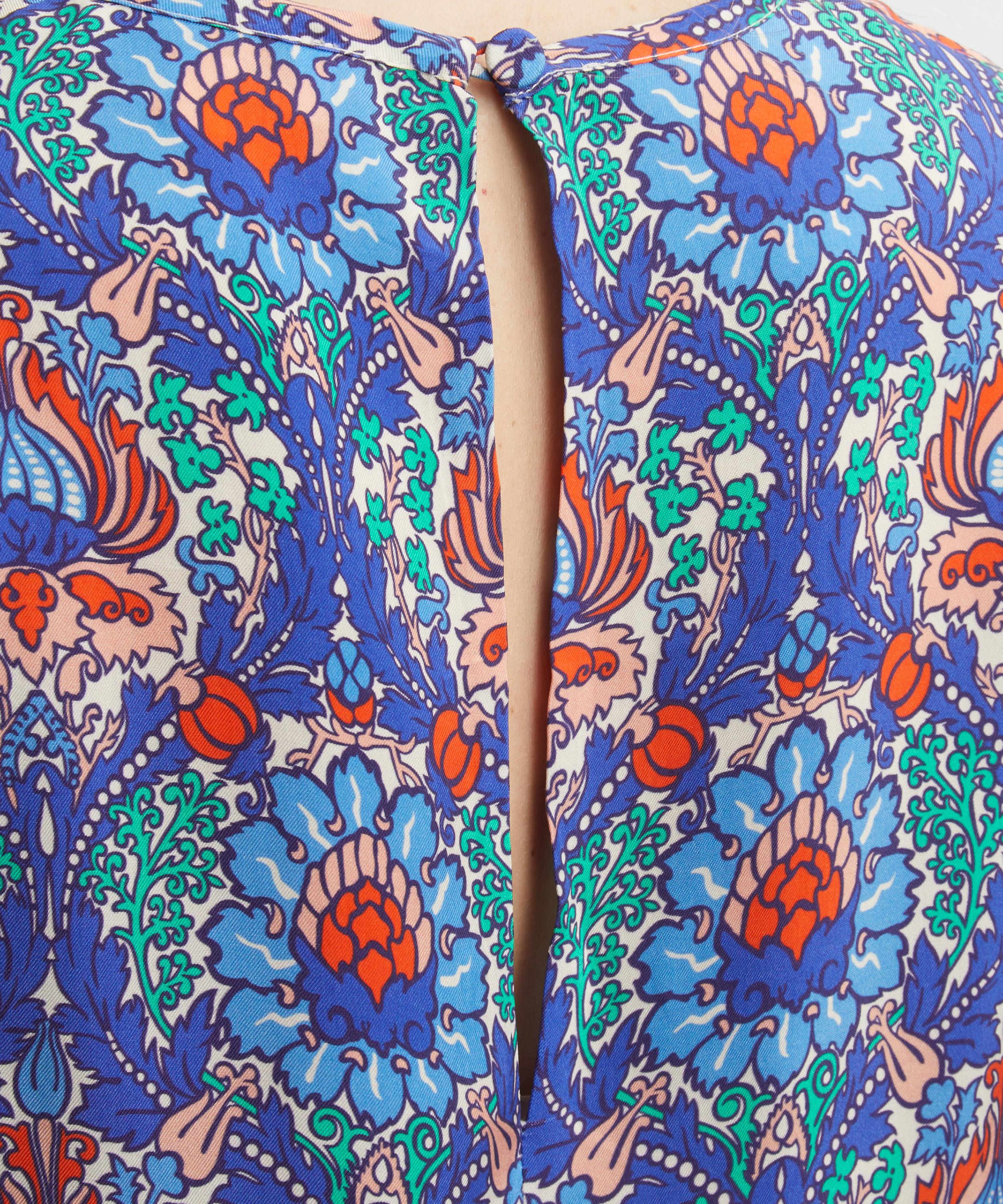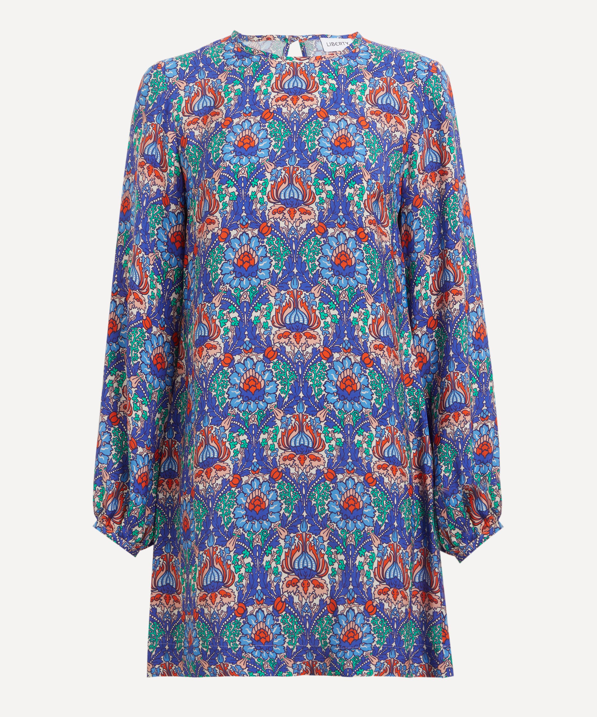 Printed in our very own cutting-edge Liberty fabric mill in northern Italy, this particular style of dress showcases the Electric Nouveau print - drawing inspiration from Liberty’s rock star clientele of the 1960s and 1970s, this flamboyant ornamental incorporates a series of influences, including a mirrored Arts & Crafts layout, traditional damask floral motifs, and even a touch of colourful psychedelia.
