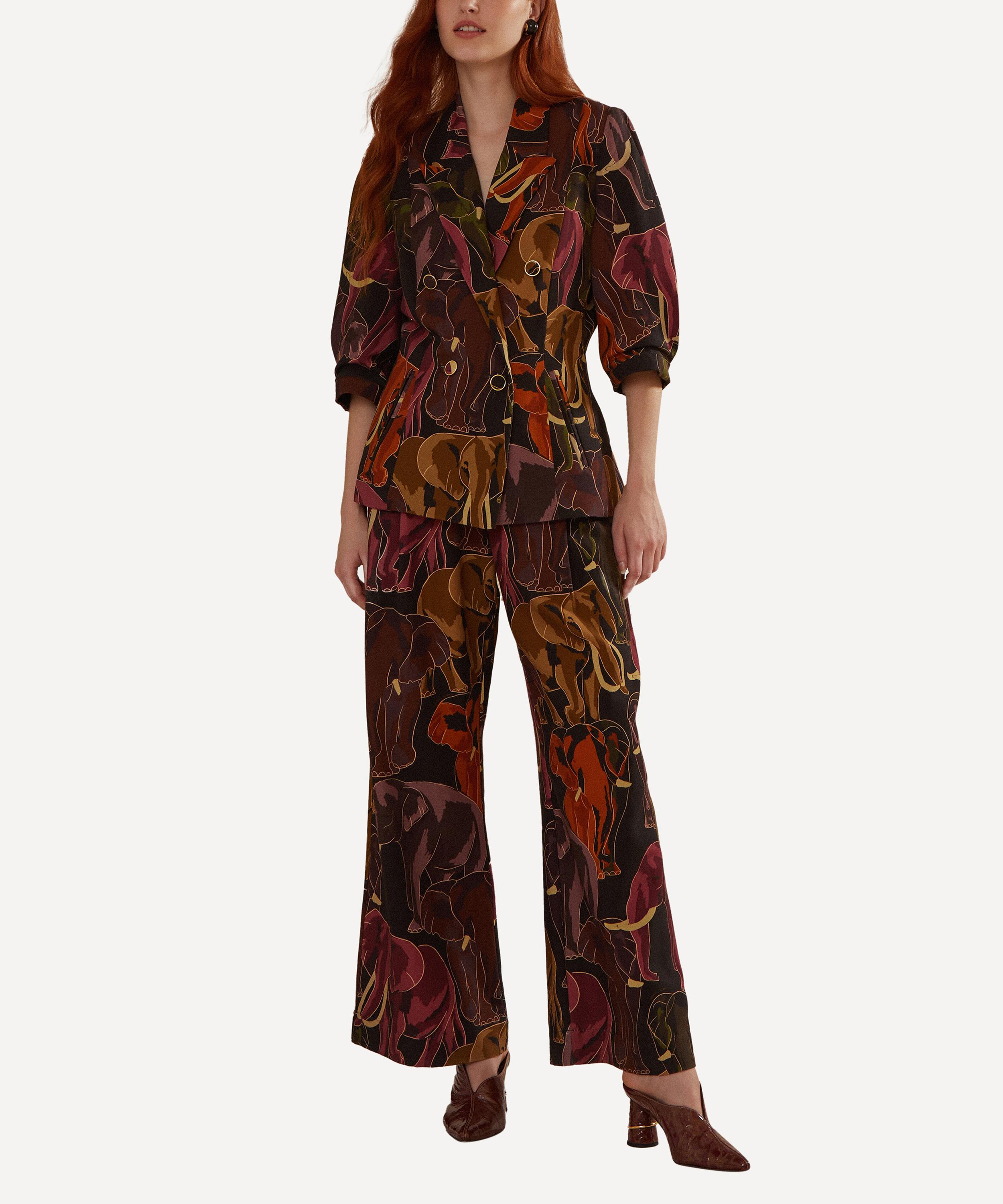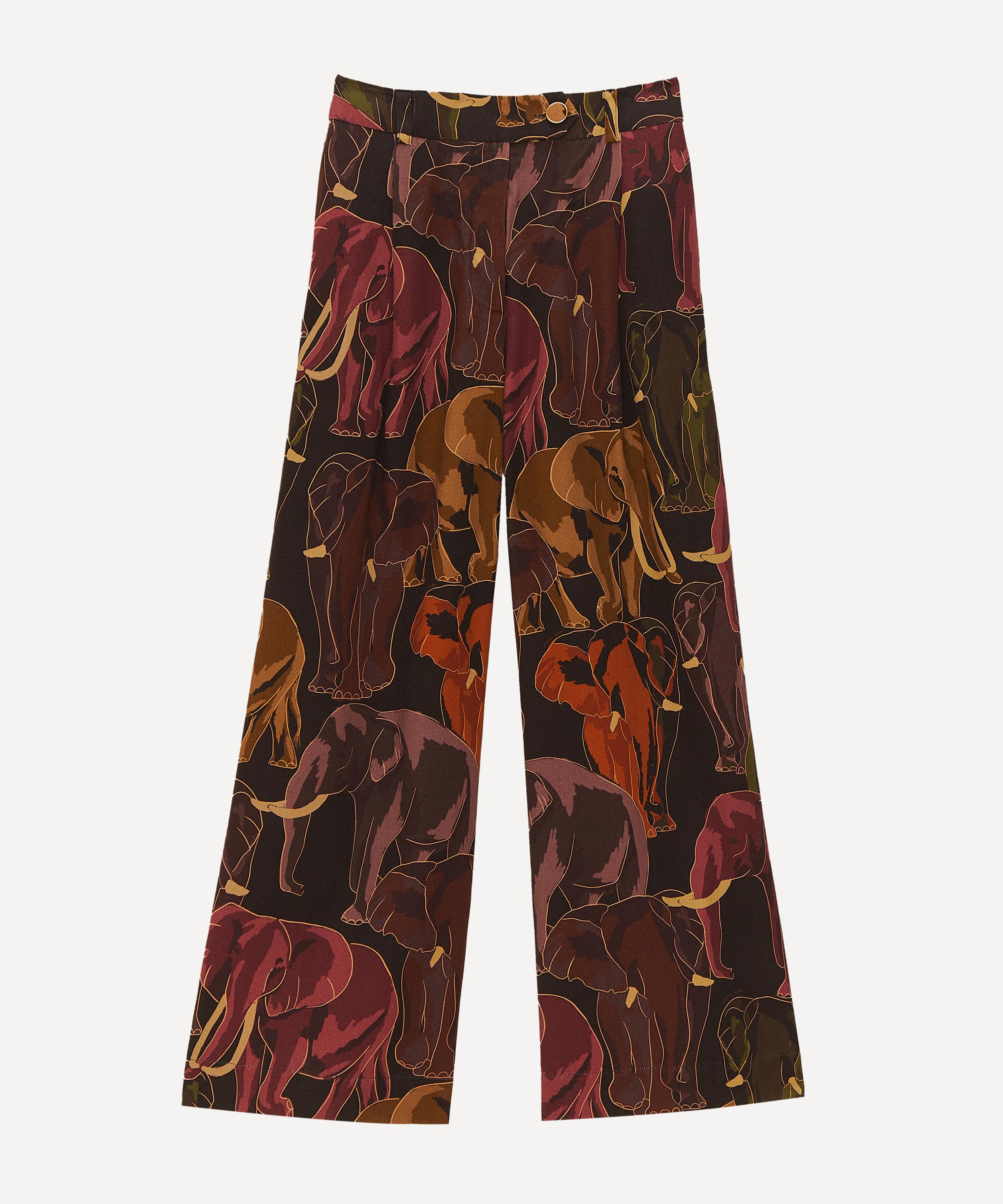 Adorned all-over in the bold Elephants Brown pattern, these statement wide-leg trousers are fitted with pockets on the side of its super-comfy elasticated waist.