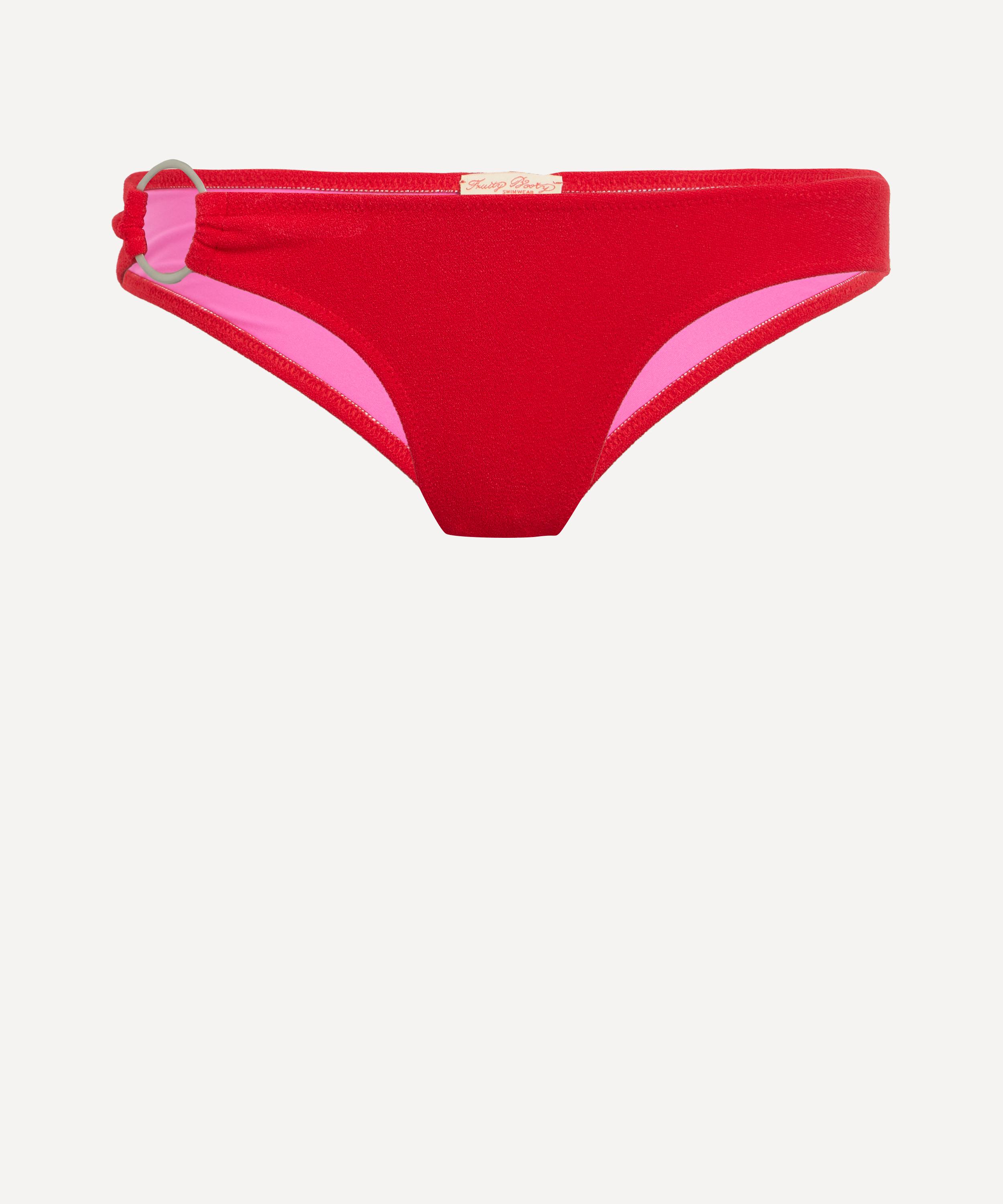 In a vibrant red hue, these bikini bottoms are crafted from a softer fabric for a comfortable, second-skin feel. Designed to sit on the hips or be worn higher, they're finished with silver hoop hardware for a sleek, modern touch.