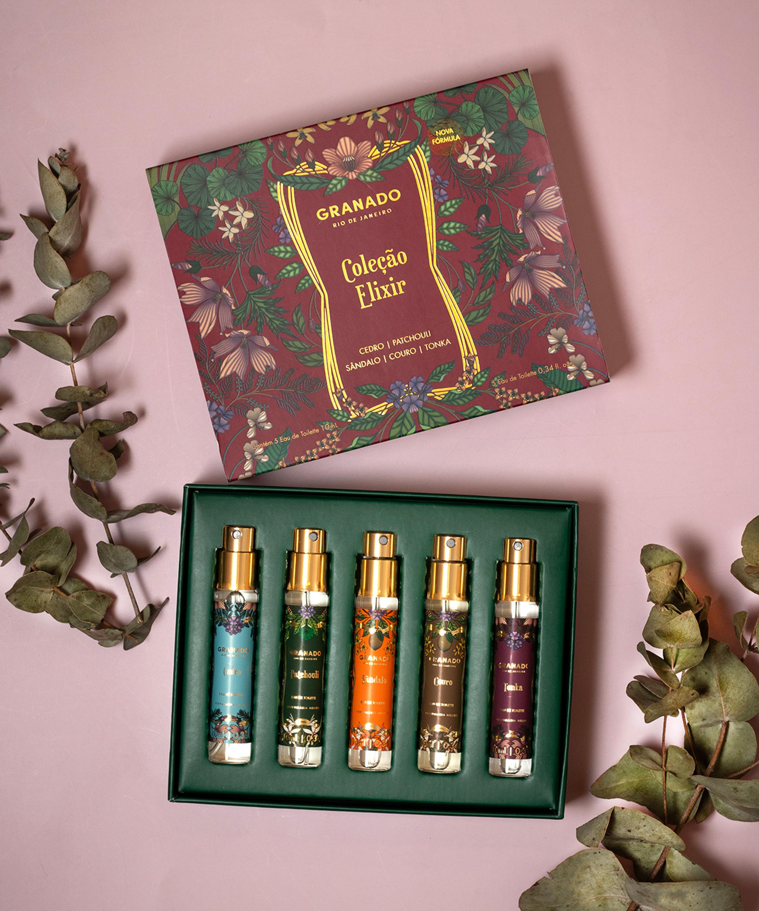 • Elixir Collection Discovery Set includes: Cedar Eau de Toilette 10ml, Patchouli Eau de Toilette 10ml, Sandalwood Eau de Toilette 10ml, Leather Eau de Toilette 10ml and Tonka Eau de Toilette 10ml