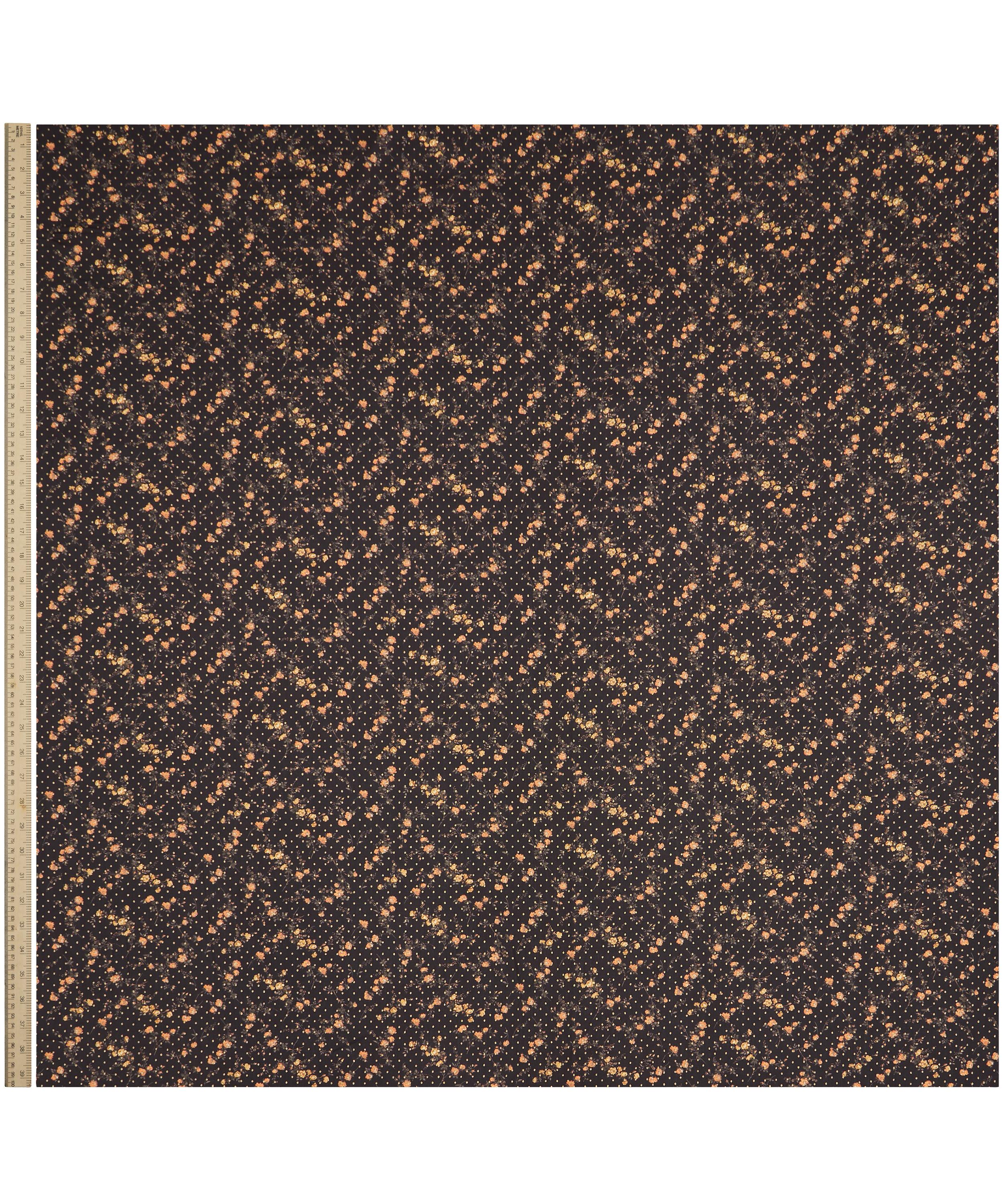 Elizabeth is a small-scale, traditional rose print, inspired by a 1958 screen-printed scarf design from the Liberty archive. Delicately trailing across the fabric, its feathery sprigs appear to dance in a subtle rhythm, conjuring a sense of timeless romance and nostalgic charm. Rescaled by the London design team, Elizabeth is overlayed with a jewel spot repeat.