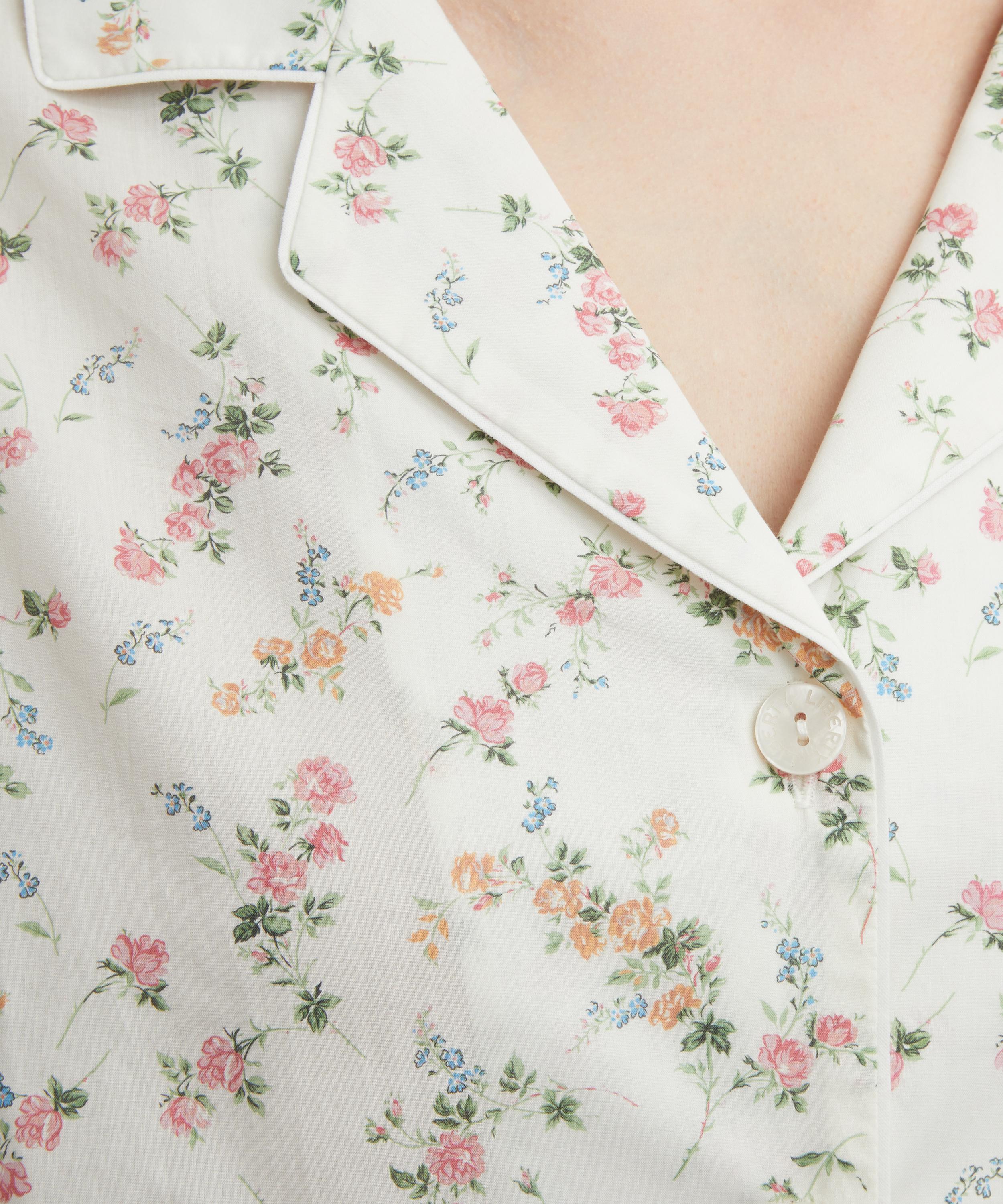 Printed in our very own cutting-edge Liberty fabric mill in northern Italy, this particular pyjama set showcases the Elizabeth print - a small, traditional rose trail print, Elizabeth was taken from a 1958 hand screen-printed scarf design from Liberty’s Merton print works.
