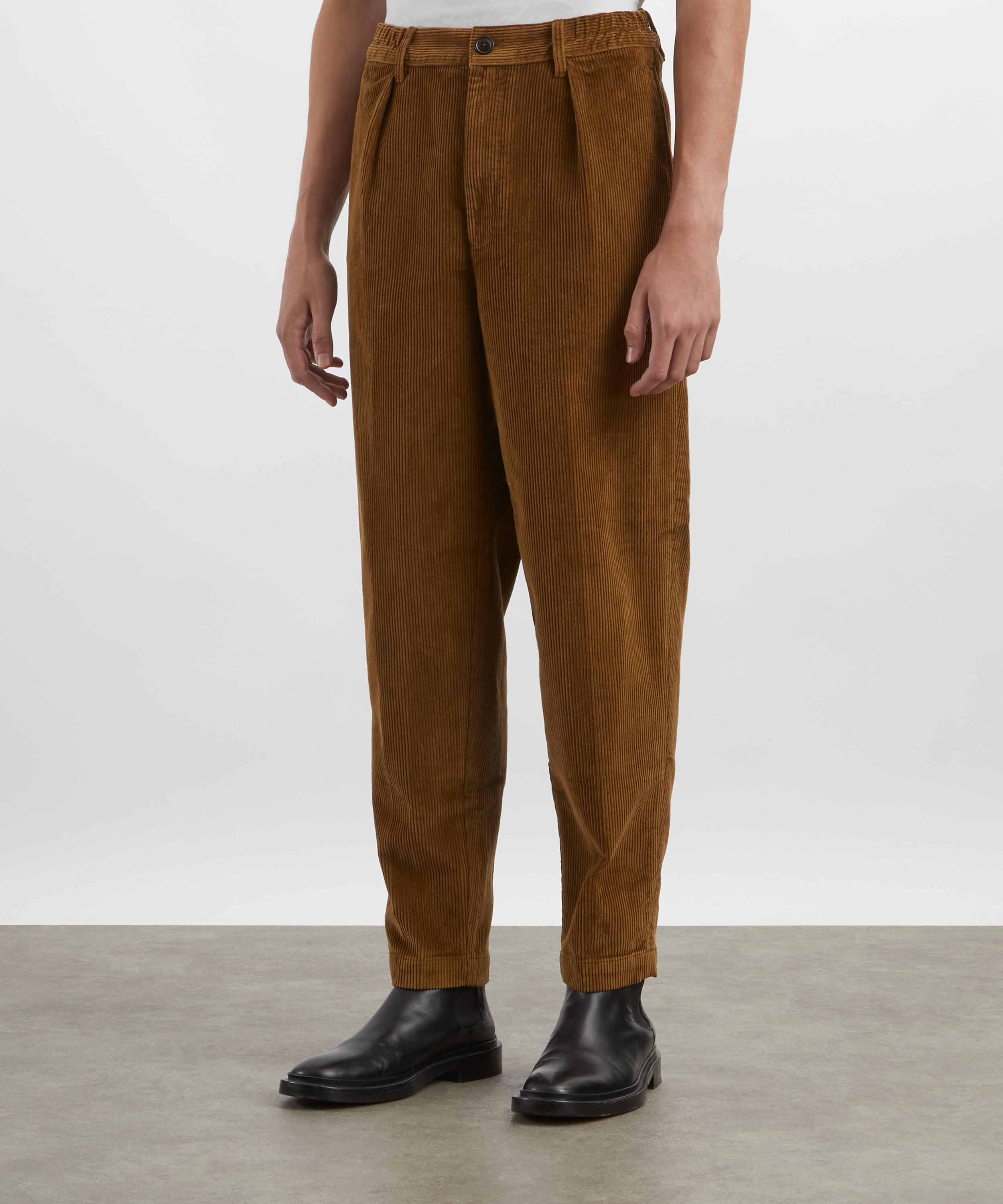 Expertly crafted from velvety-soft 8-wale corduroy, the Elbank trousers feature a relaxed, oversized silhouette with a gently tapered leg. Effortlessly refined, they’re detailed with front pleats for a touch of structure, and finished with side pockets to keep essentials close at hand.