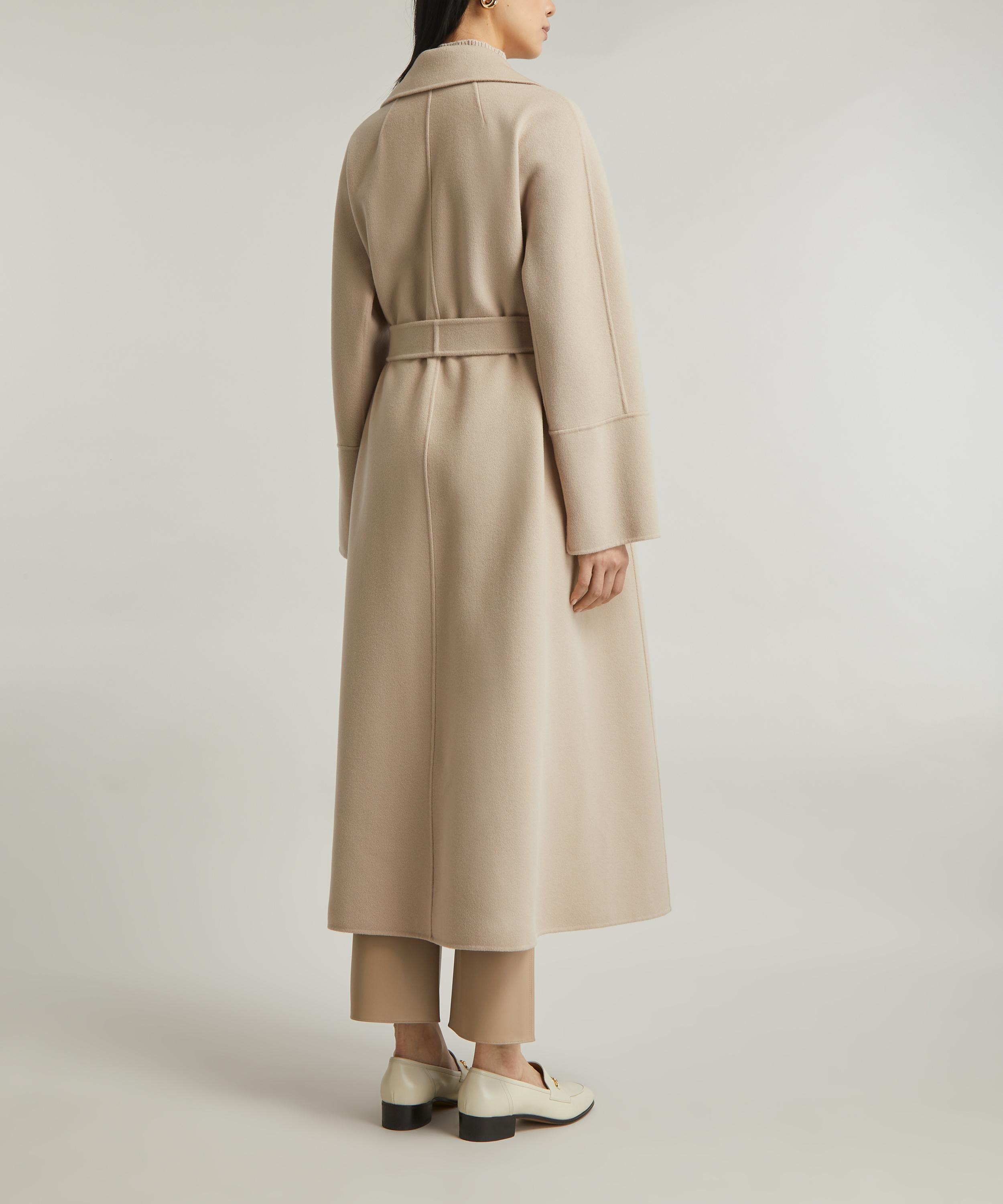 Imbued with the brand’s signature refinement and meticulous eye for craftsmanship, this essential wardrobe staple is crafted from premium wool to a long, slightly oversized fit with a notched lapel, waist-tie belt and two side slit pockets.