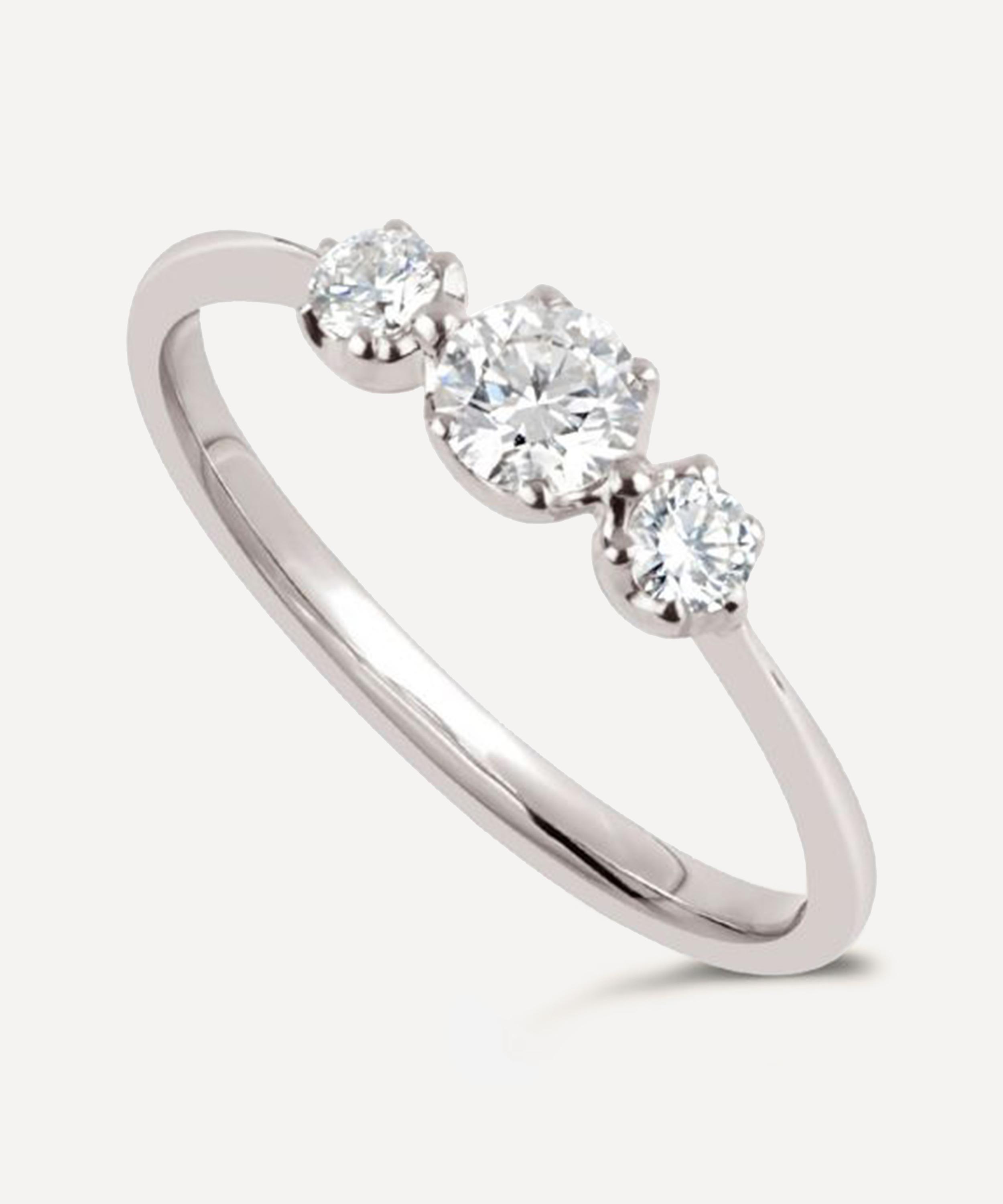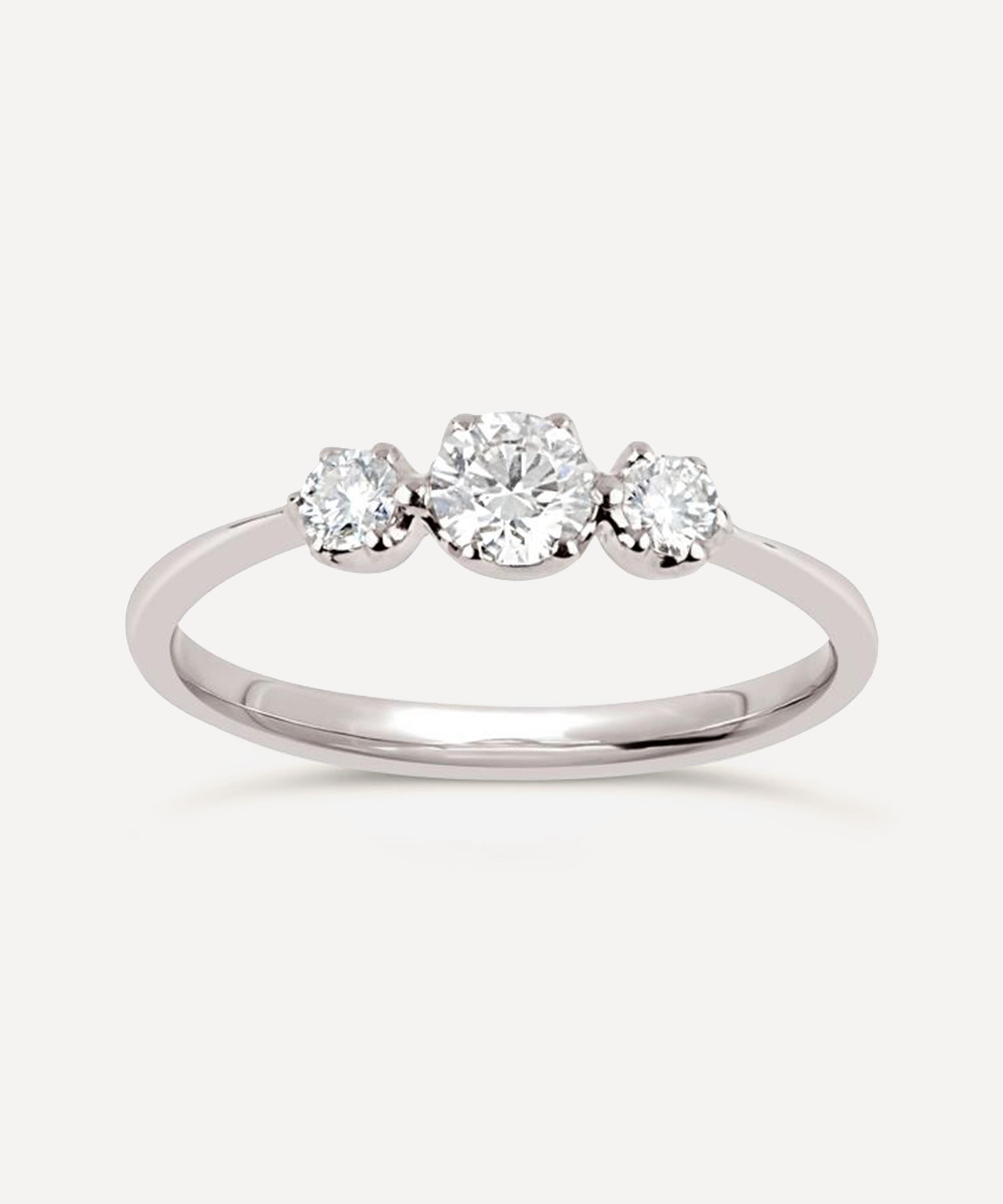 Exemplifying the designer's passion for precious gems, this ring features a trio of brilliant cut white diamonds - each presented in one of the Georgian-inspired, half-orb claw settings that characterise the Elyhara collection. Wear it alone day-to-day or stack it with one of the designer's glittering diamond crown rings for a contemporary bridal curation.