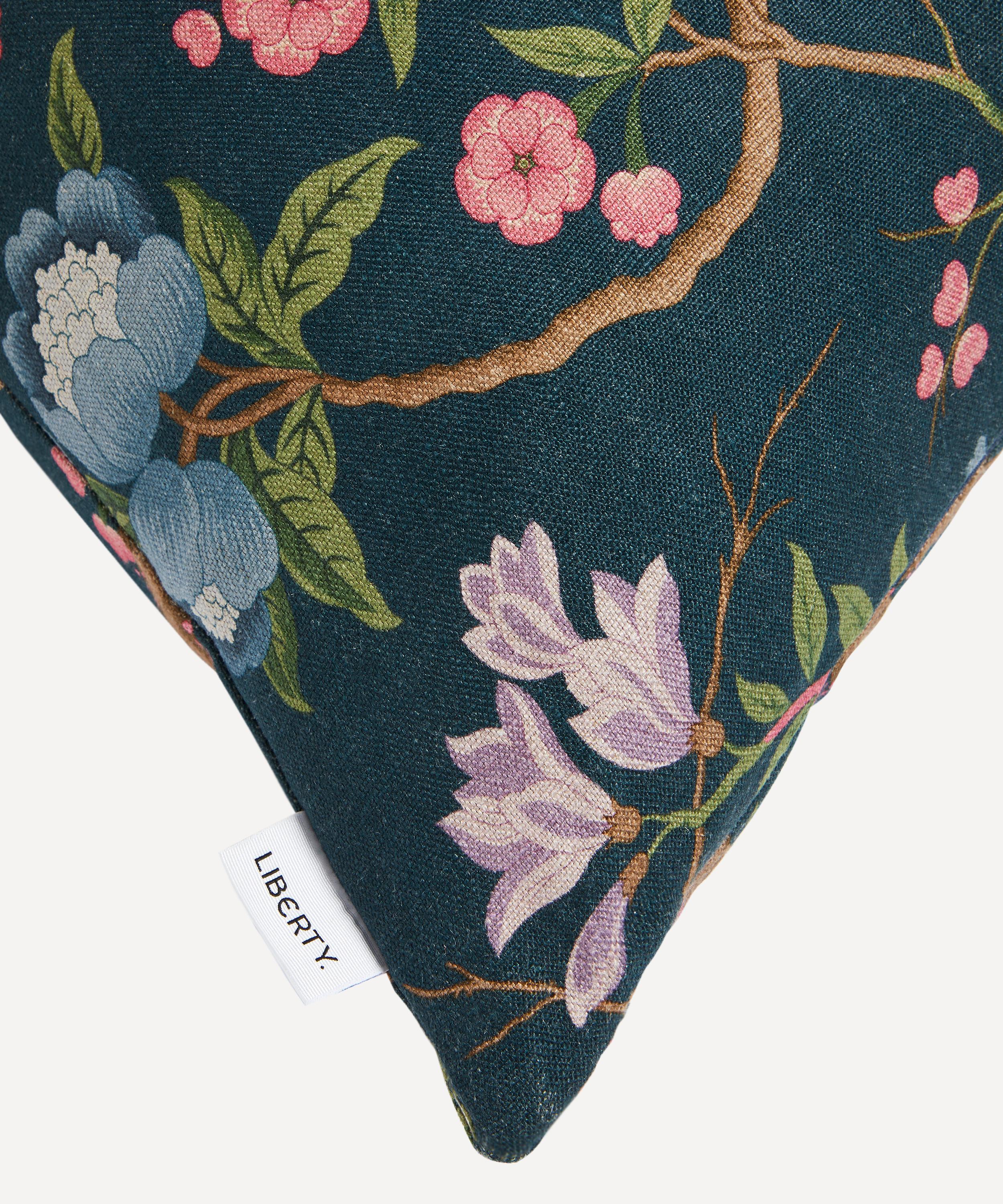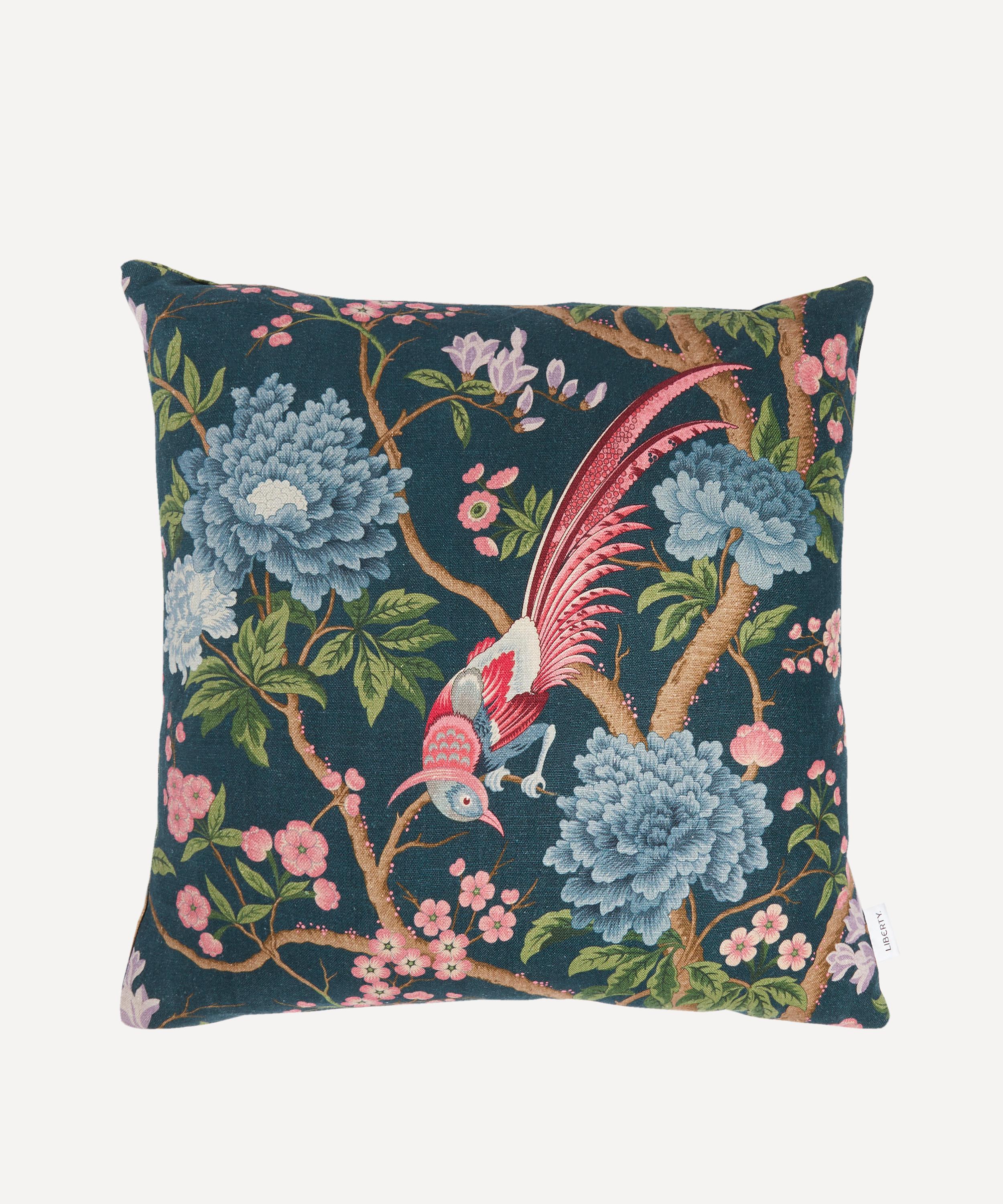 Liberty’s square cushion is a versatile interiors staple, crafted in England and featuring a print from our archives.