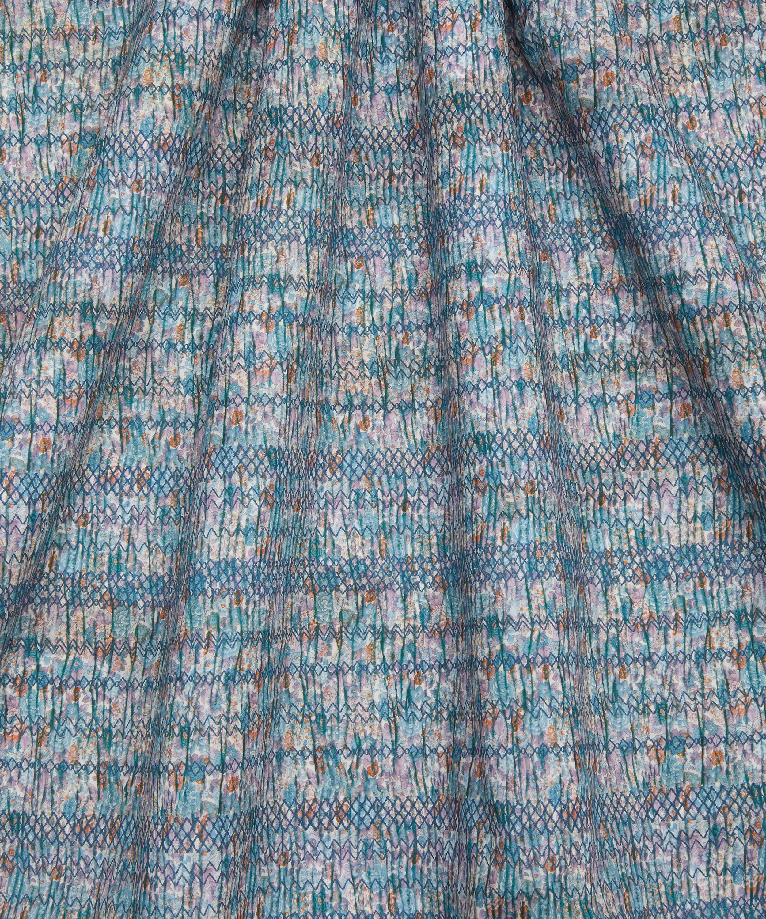 Looking back to Liberty’s 1887 childrenswear department and the enduring charm of smocked dresses from that era, this unusual pattern is a fresh take on our beloved classic, Elysian. Delicate diamond-shaped stitches create a series of textured pleats and folds, creating the illusion of a beautifully nostalgic floral fabric gathered into a garment. This print is part of the Craftsmanship narrative of this collection, exploring the creative process from within the Liberty archive, from print impressions and embroidered studies, to ceramics, jewellery, and furniture. Uncover the origins of the designers’ musings through artworks inspired by their sketchbooks and prototypes.