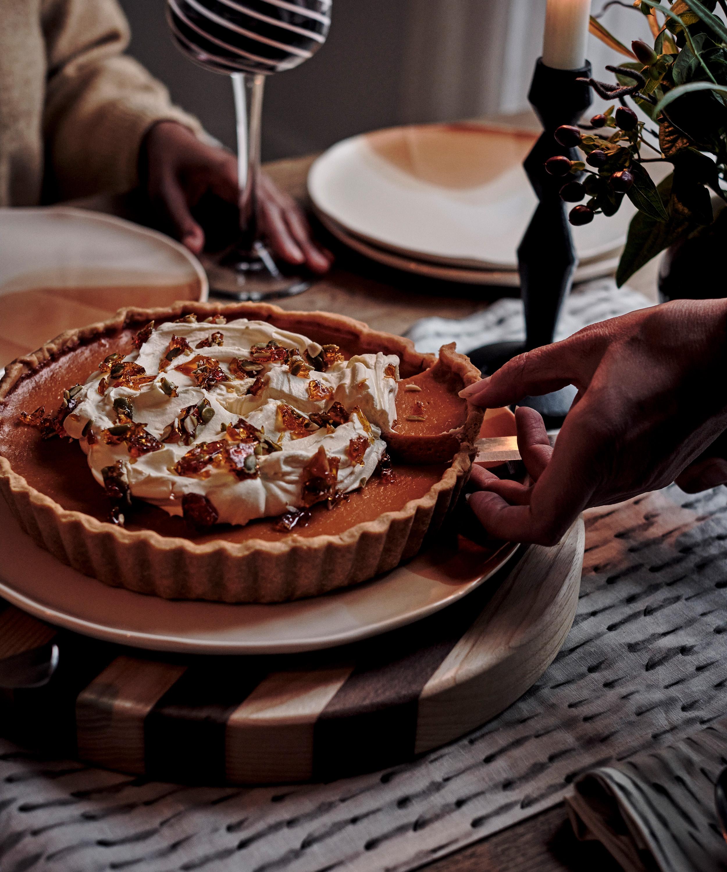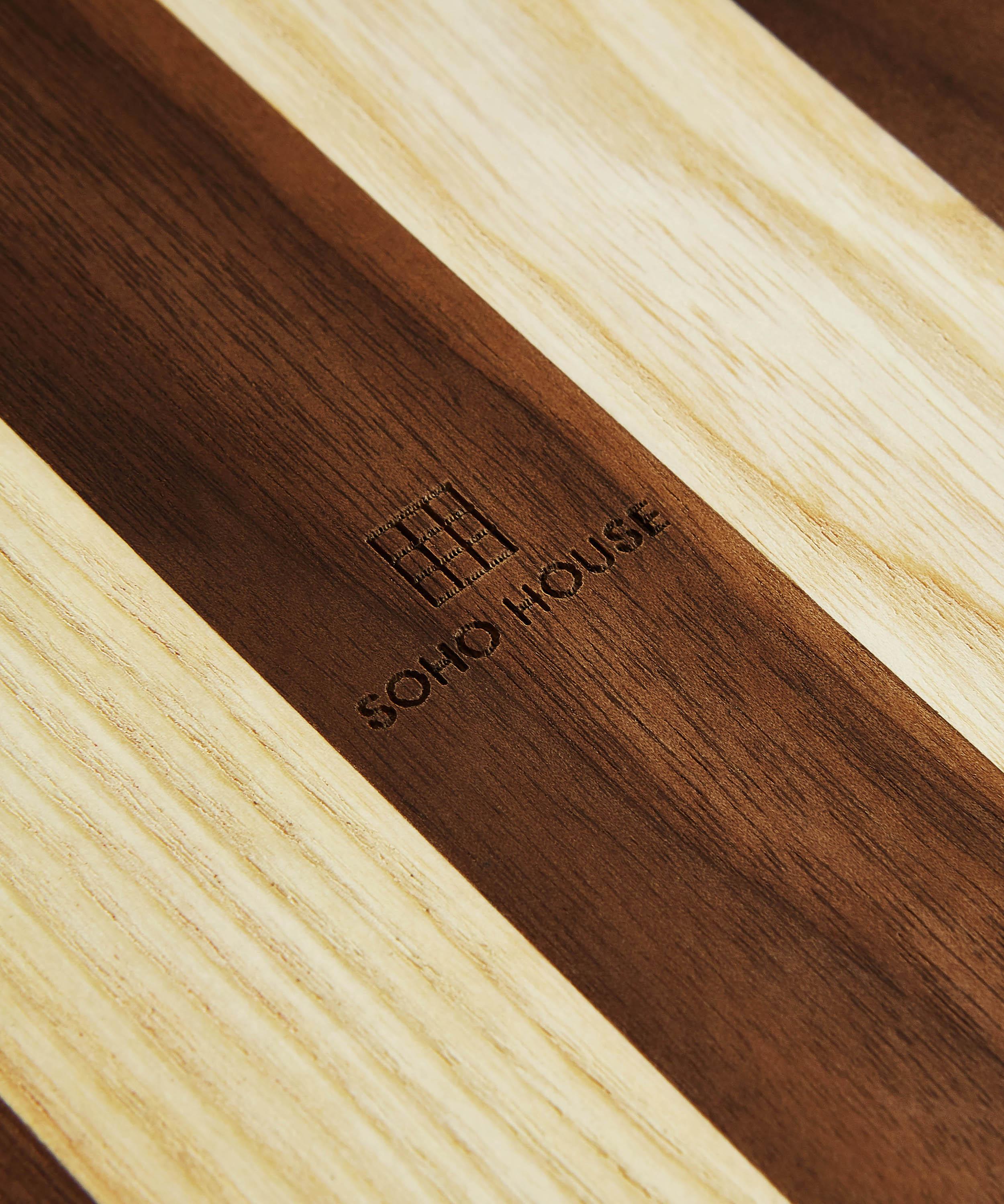 Enhance your tablescape with the Ember contrast circular chopping board from Soho Home, inspired by the decorative contrast parquet wooden flooring of the club’s location on 40 Green Street.