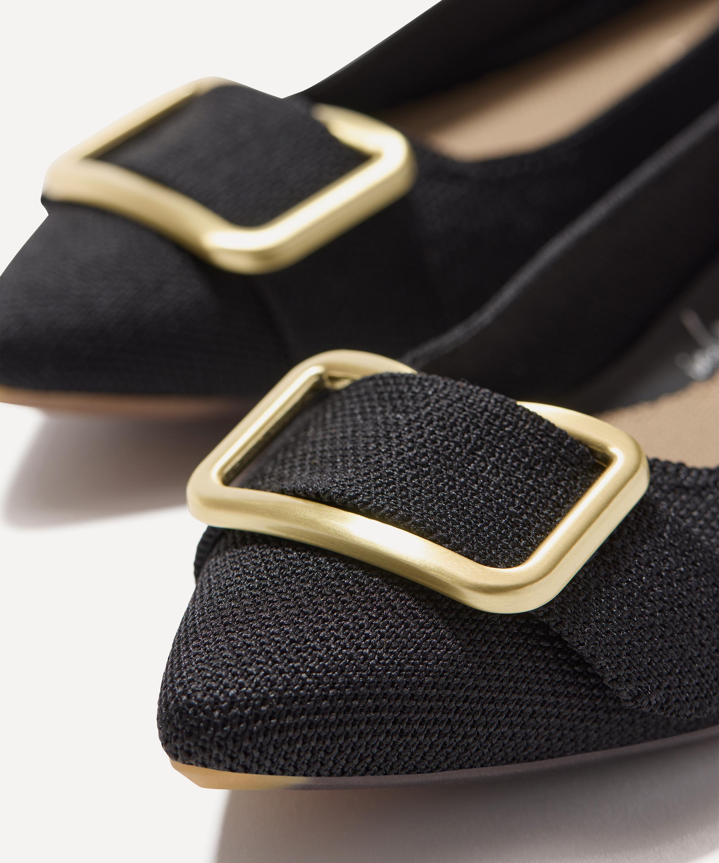 These luxe flats deliver cushion-like comfort with every step, thanks to the innovative In Love Insole™. They feature the label’s signature knitted construction, a spacious toe box, and a sleek black colourway, complete with a flexible upper and durable rubber outsole. A gold-tone buckle at the toe adds a refined, statement finish. Designed to be worn on repeat, they’re a timeless addition to your rotation, ready to elevate any outfit with ease.