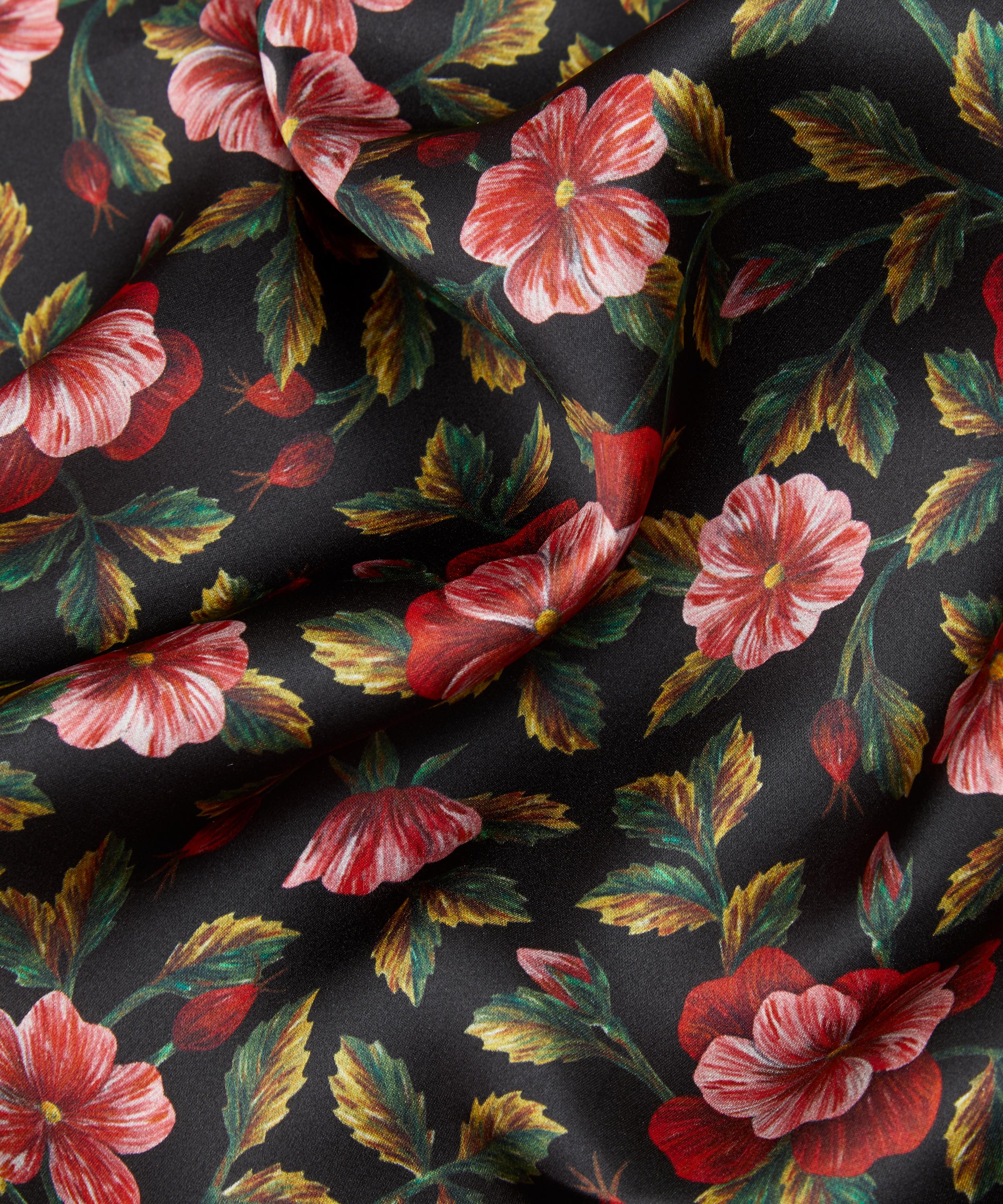 The design is printed by experts in Italy onto our elegant, reflective 16 momme Belgravia silk satin – a fabric prized for its lustrous drape and fluidity, along with its luminously high-shine surface. Construct it into eveningwear pieces such as sheath gowns, or use it to create opulently wearable daytime designs like wrap dresses and flowing shirting.