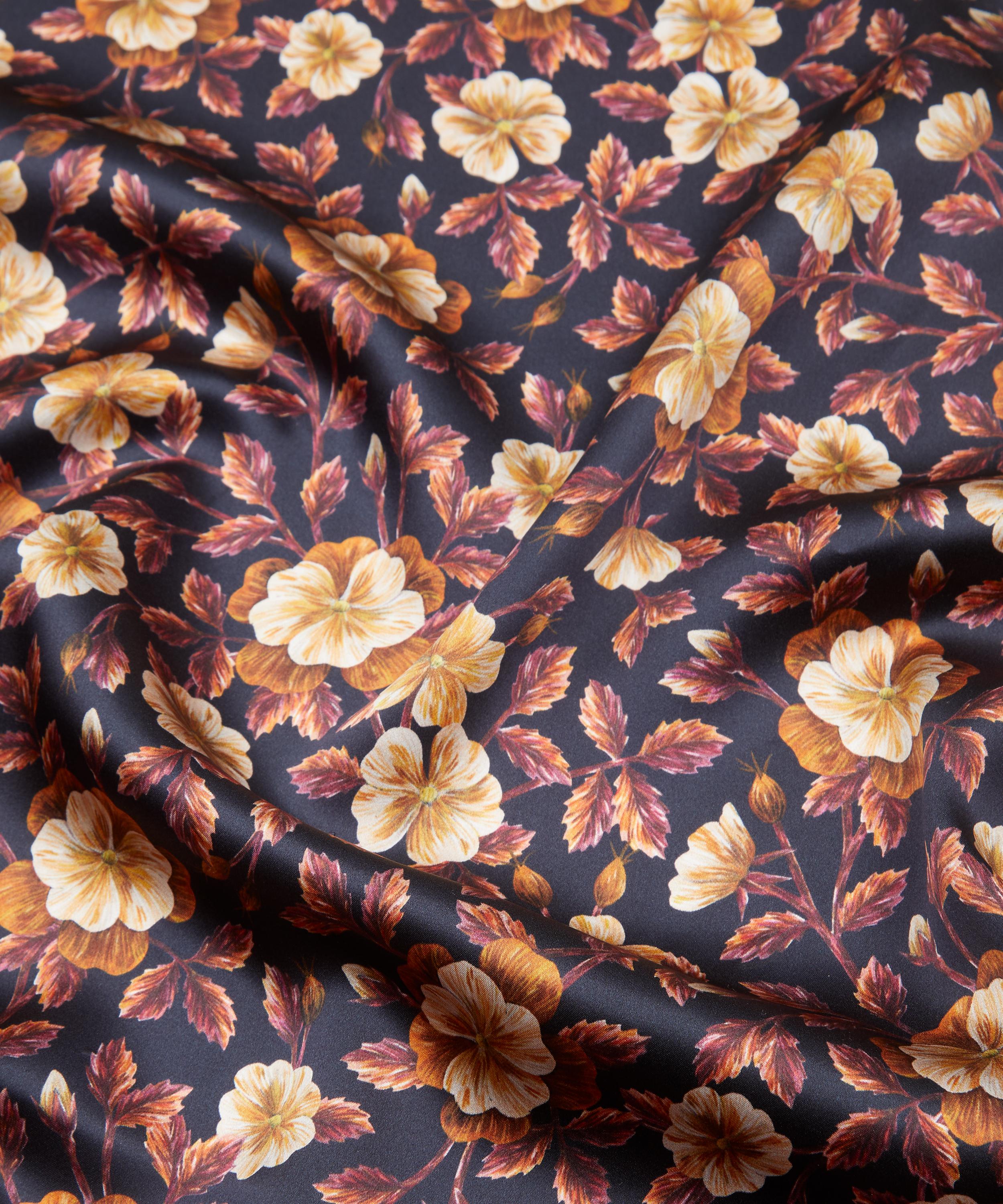 The design is printed by experts in Italy onto our elegant, reflective 16 momme Belgravia silk satin – a fabric prized for its lustrous drape and fluidity, along with its luminously high-shine surface. Construct it into eveningwear pieces such as sheath gowns, or use it to create opulently wearable daytime designs like wrap dresses and flowing shirting.