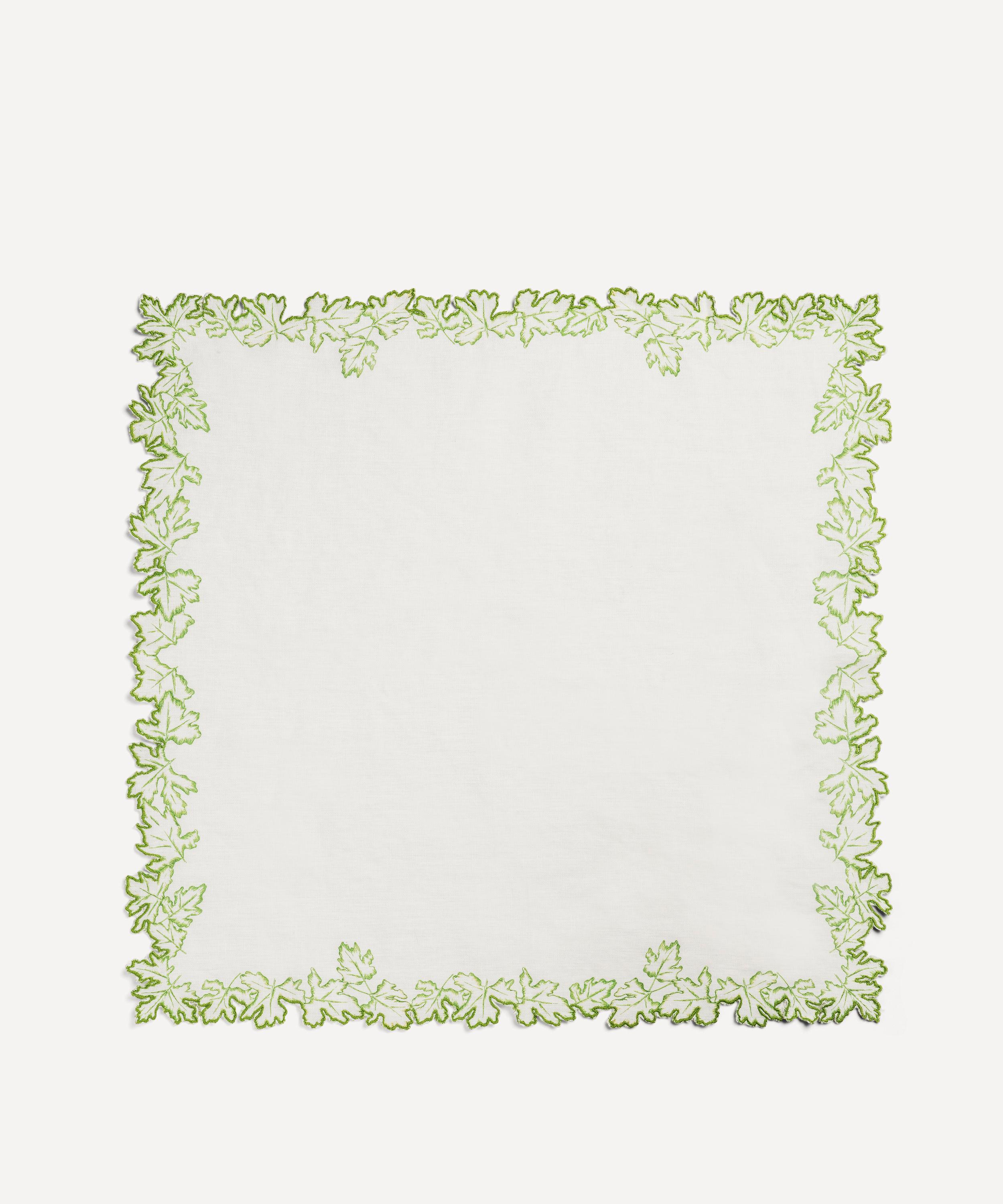 Inspired by founder Carole Bamford’s enduring love of geraniums and pelargoniums, this napkin captures the charm of their distinctive silhouette and is embroidered with a delicate, leafy border. Pairing perfectly with the brand’s Geranium tablecloth and placemats, this linen lays a beautifully botanical foundation for your next hosting escapade.