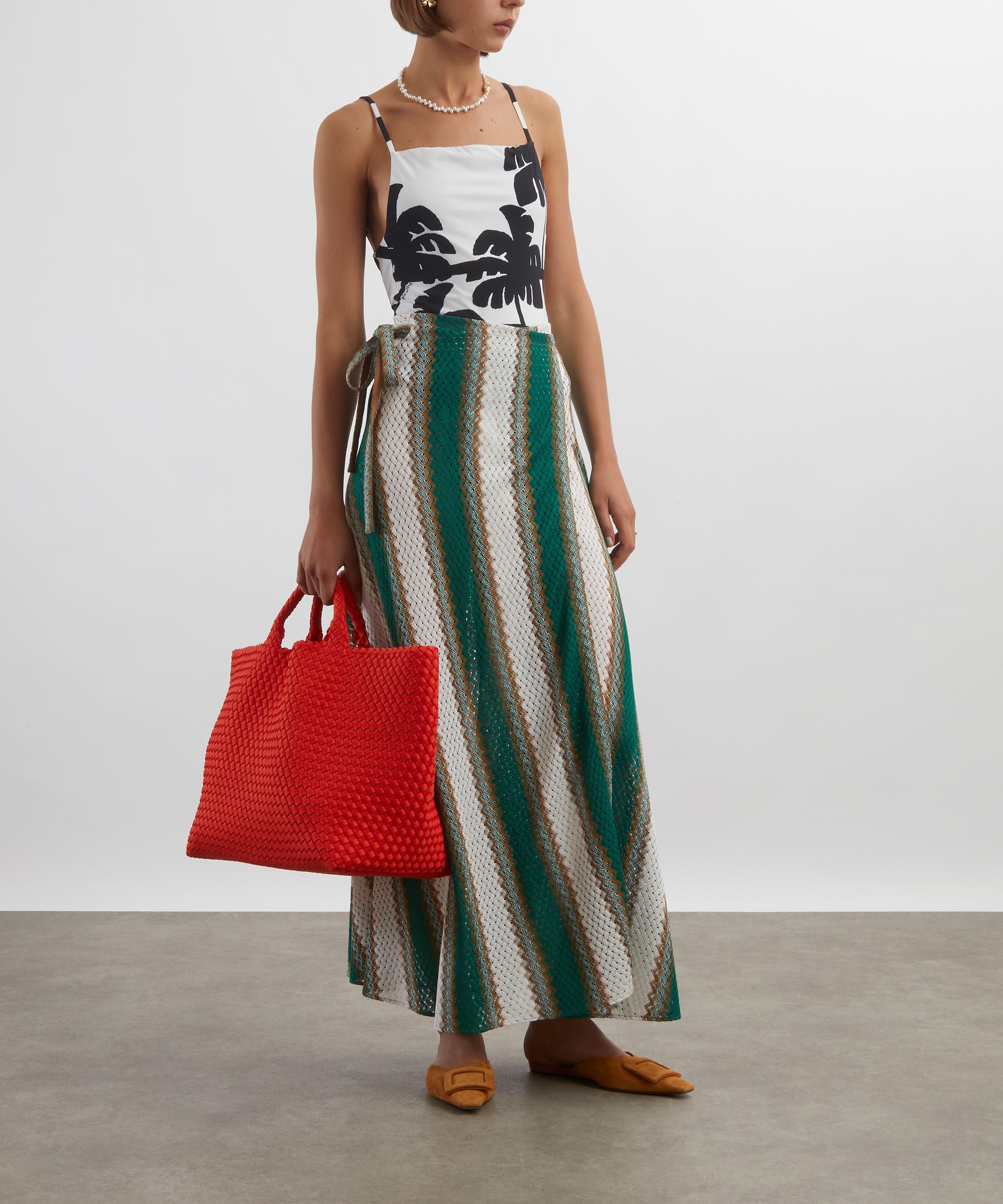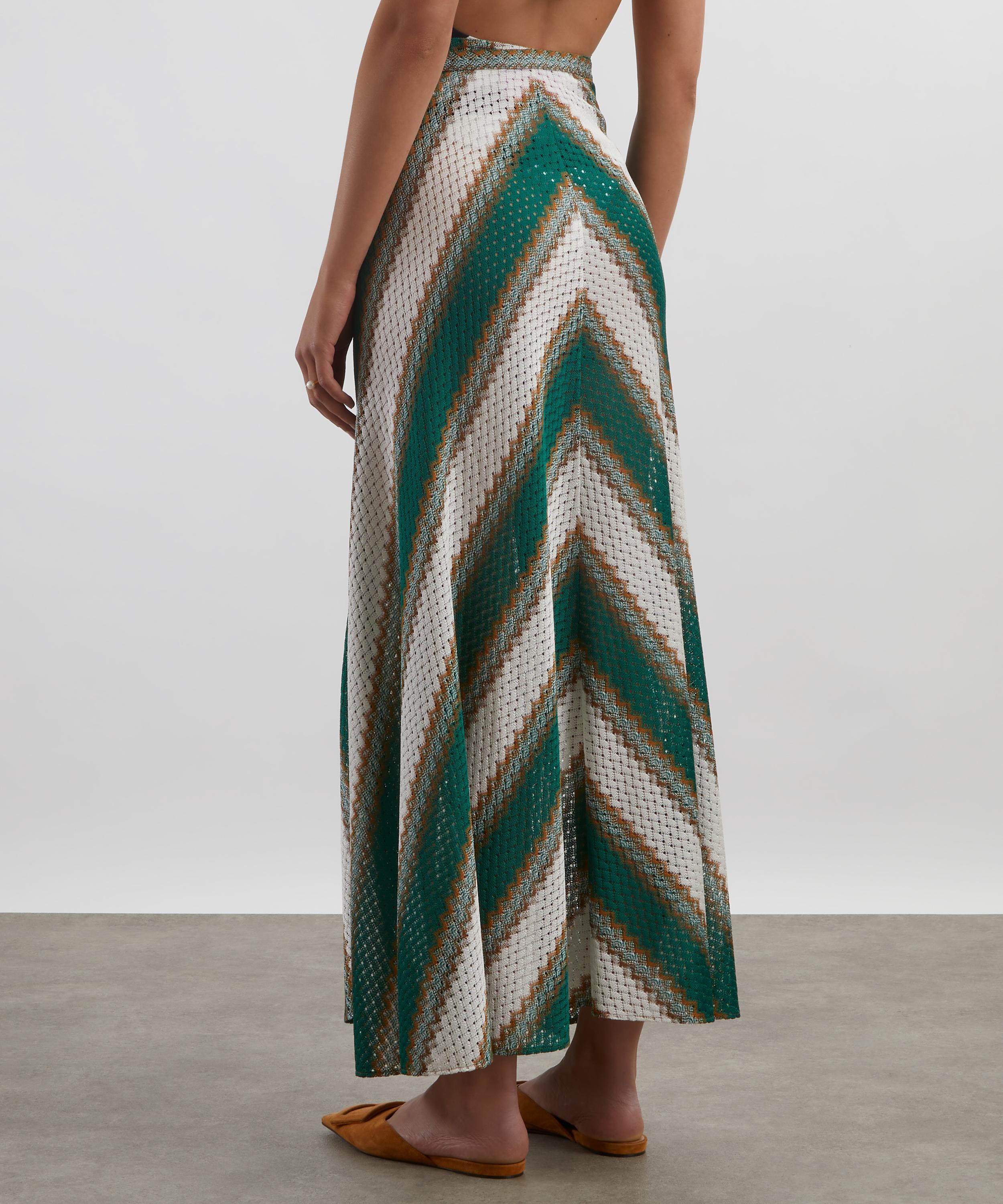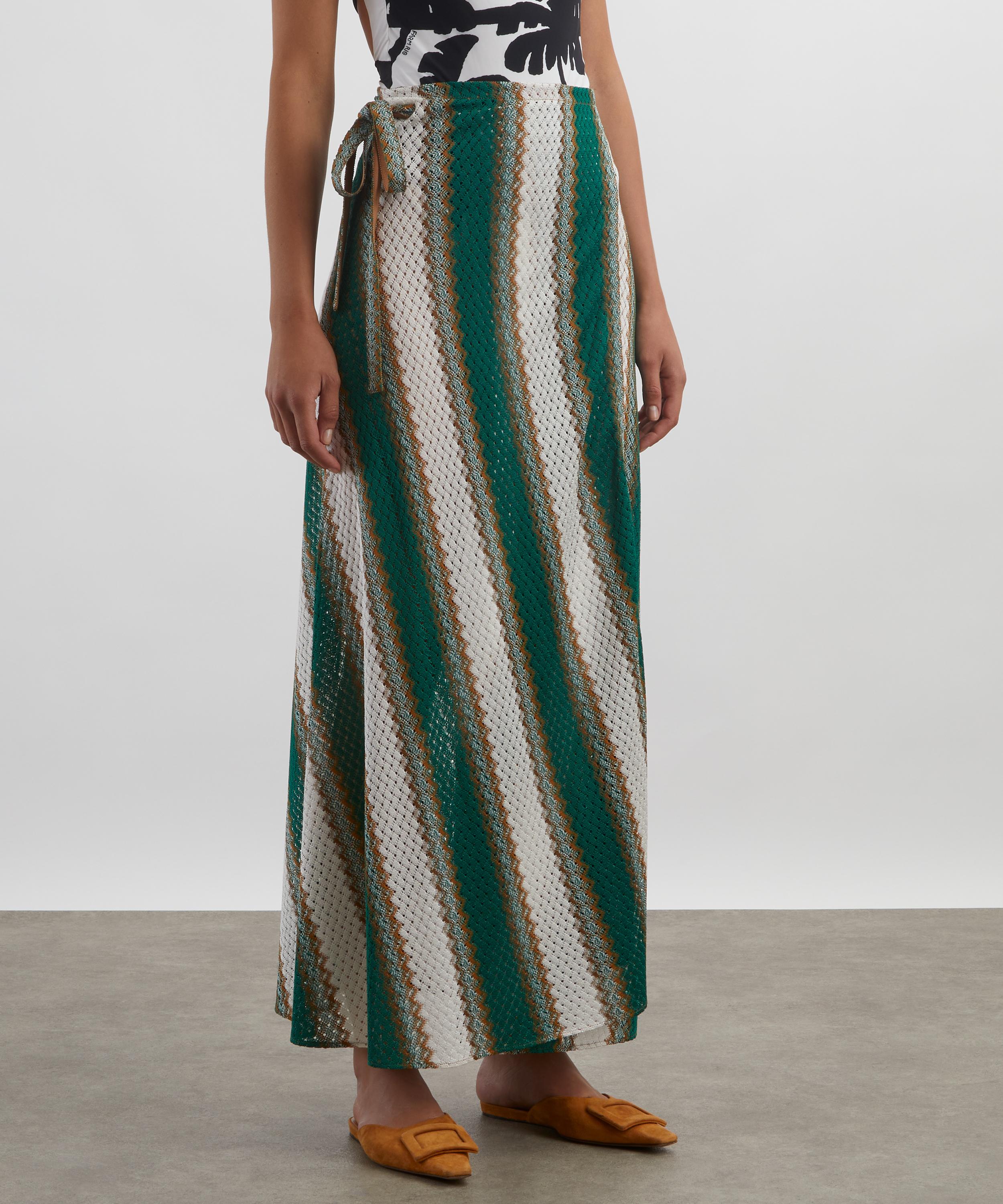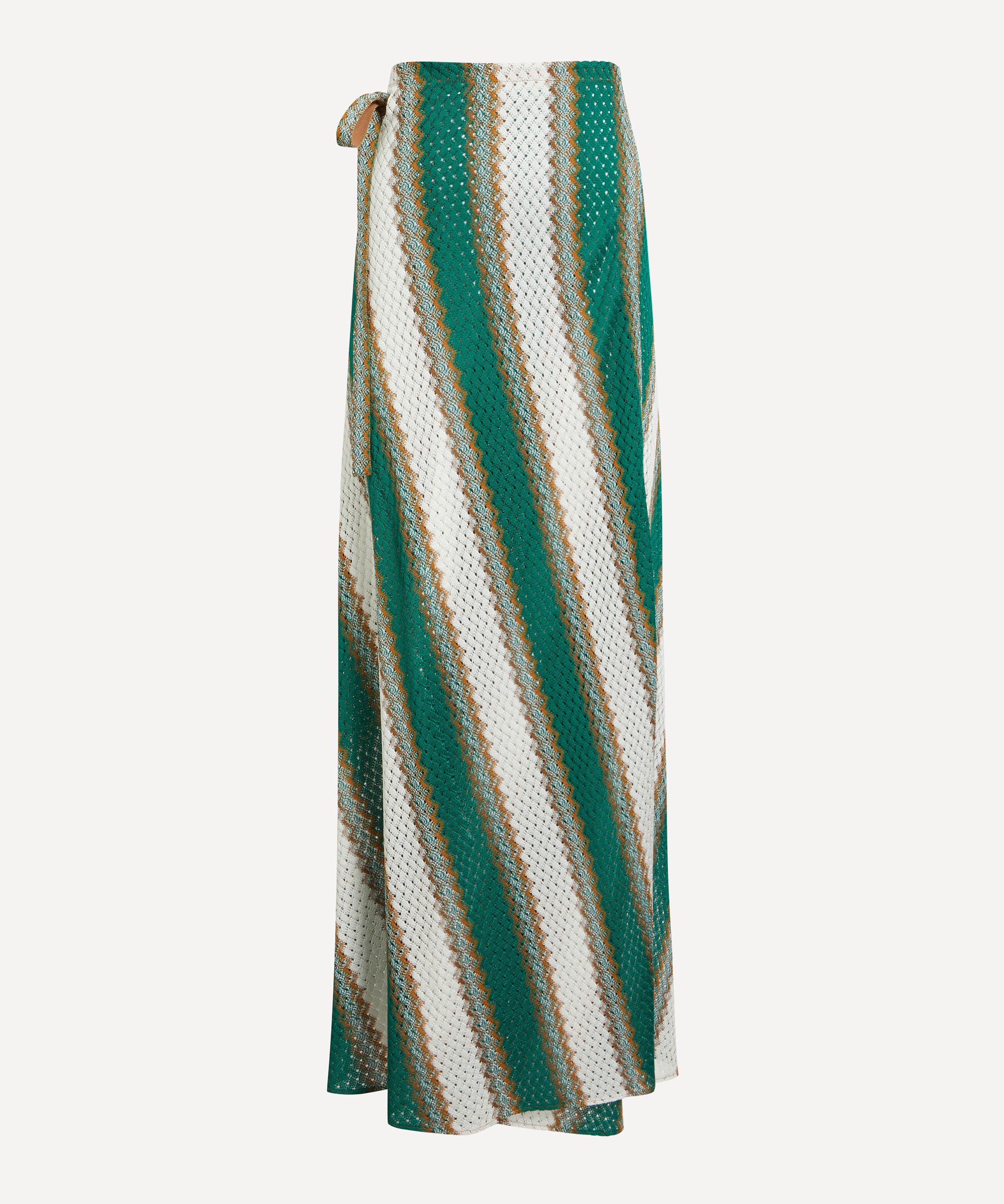 Finely knit in bold retro stripes, this sarong-style skirt features a classic wrap design with side ties - perfect for hopping between Malibu beaches and Milan bars.