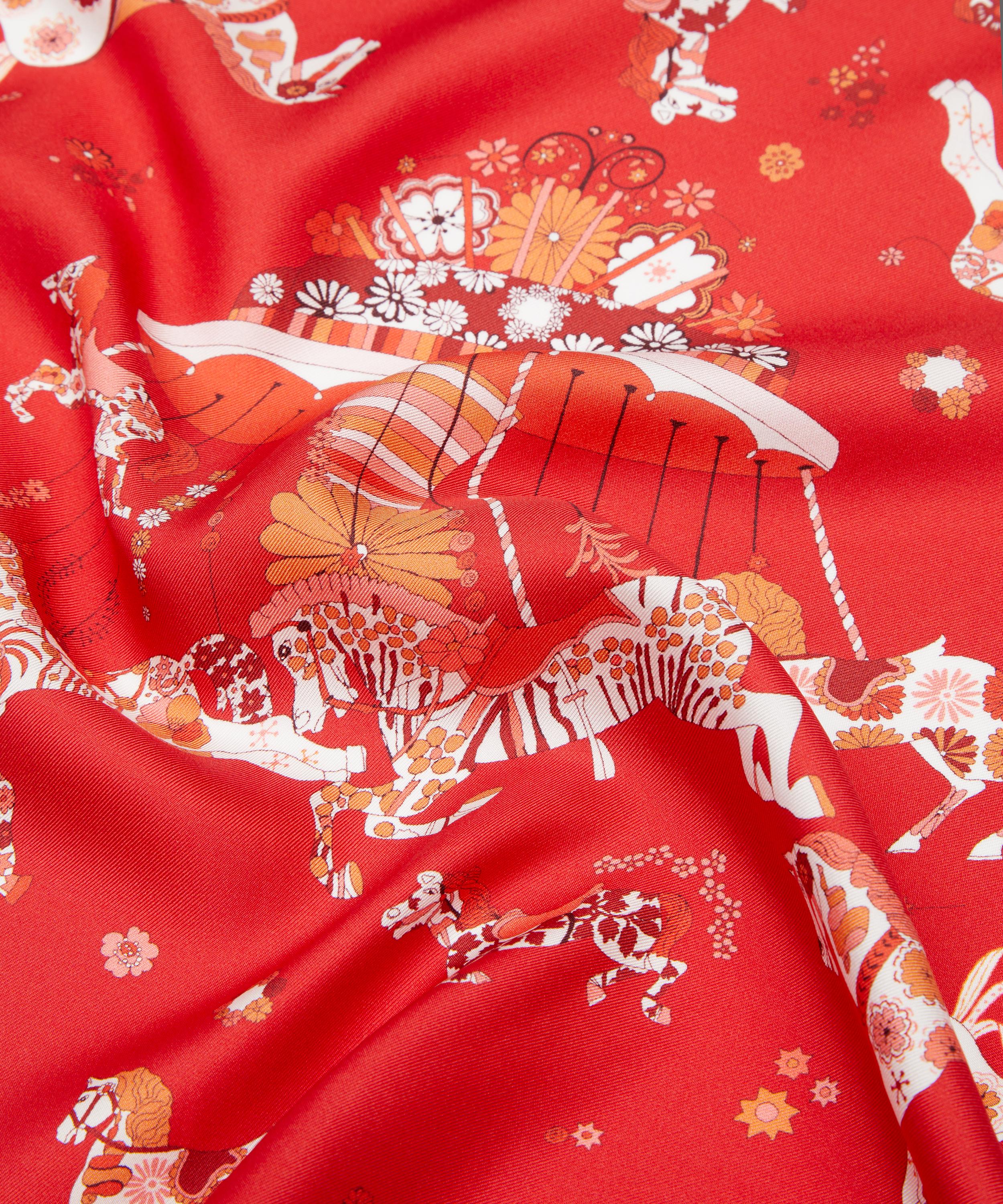 Expertly woven from ultra-soft silk, it showcases our iconic Emolly Can Can print – created in celebration of Chinese New Year, it features a contemporary rework of an archival print originally designed by the Japan team. Each horse energetically prancing around the scarf is beautifully decorated with intricate details capturing the power and beauty of the horse. Bursting with colour and vitality, this versatile and timeless accessory staple will bring a refreshing lift to your wardrobe. Knot it close to the neck for a pop of colour, tie it around the handles of a bag or weave it through your hair for an effortless statement – the styling possibilities are endless.