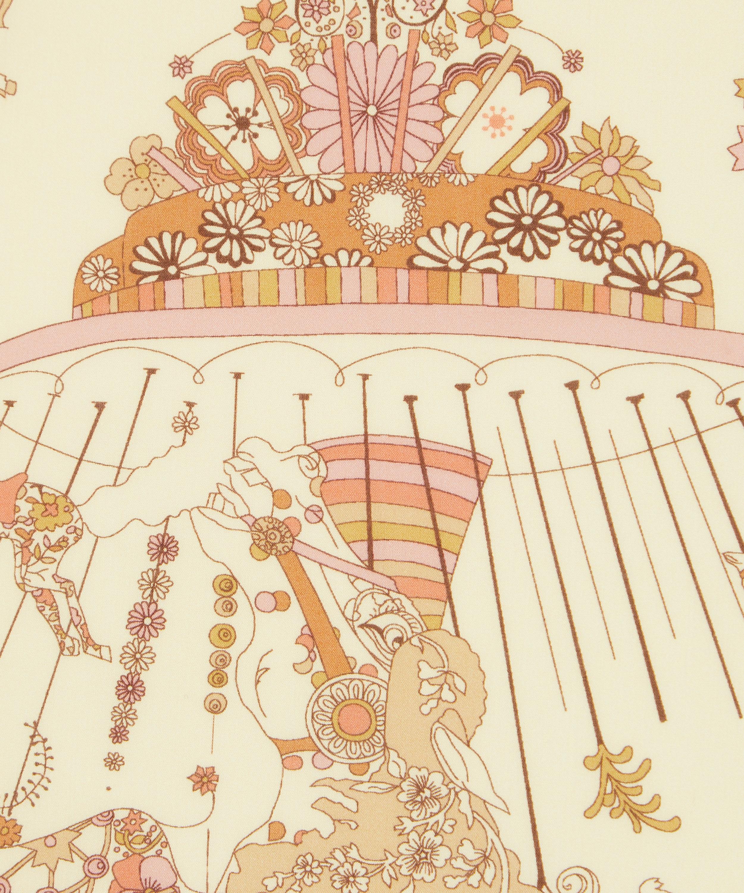 The beautifully painted carousels at old-style steam fairs were the inspiration behind Emolly Can-Can. Each of the horses are named and decorated with a Liberty print, with flowers spilling over into the background of this charming design.