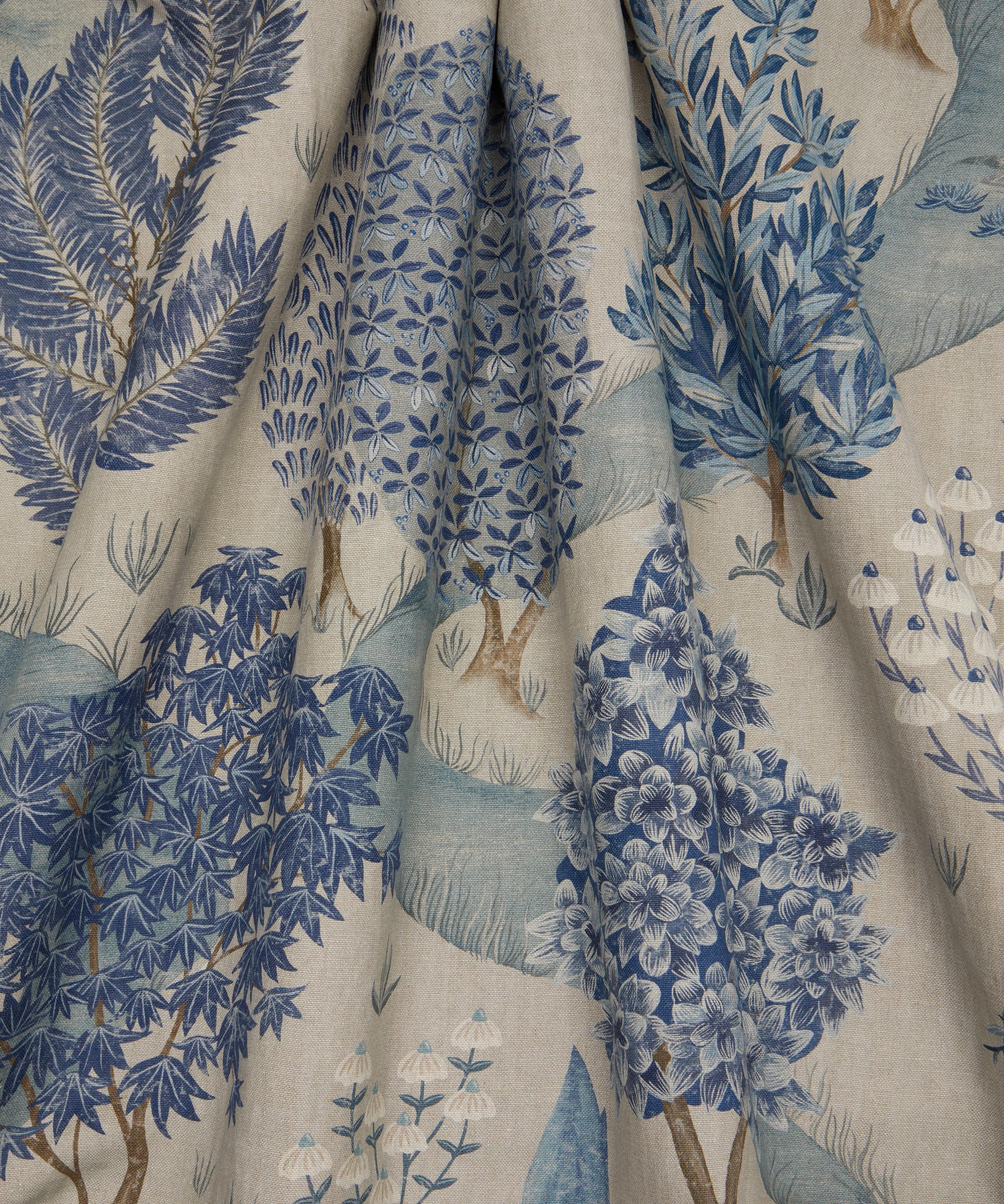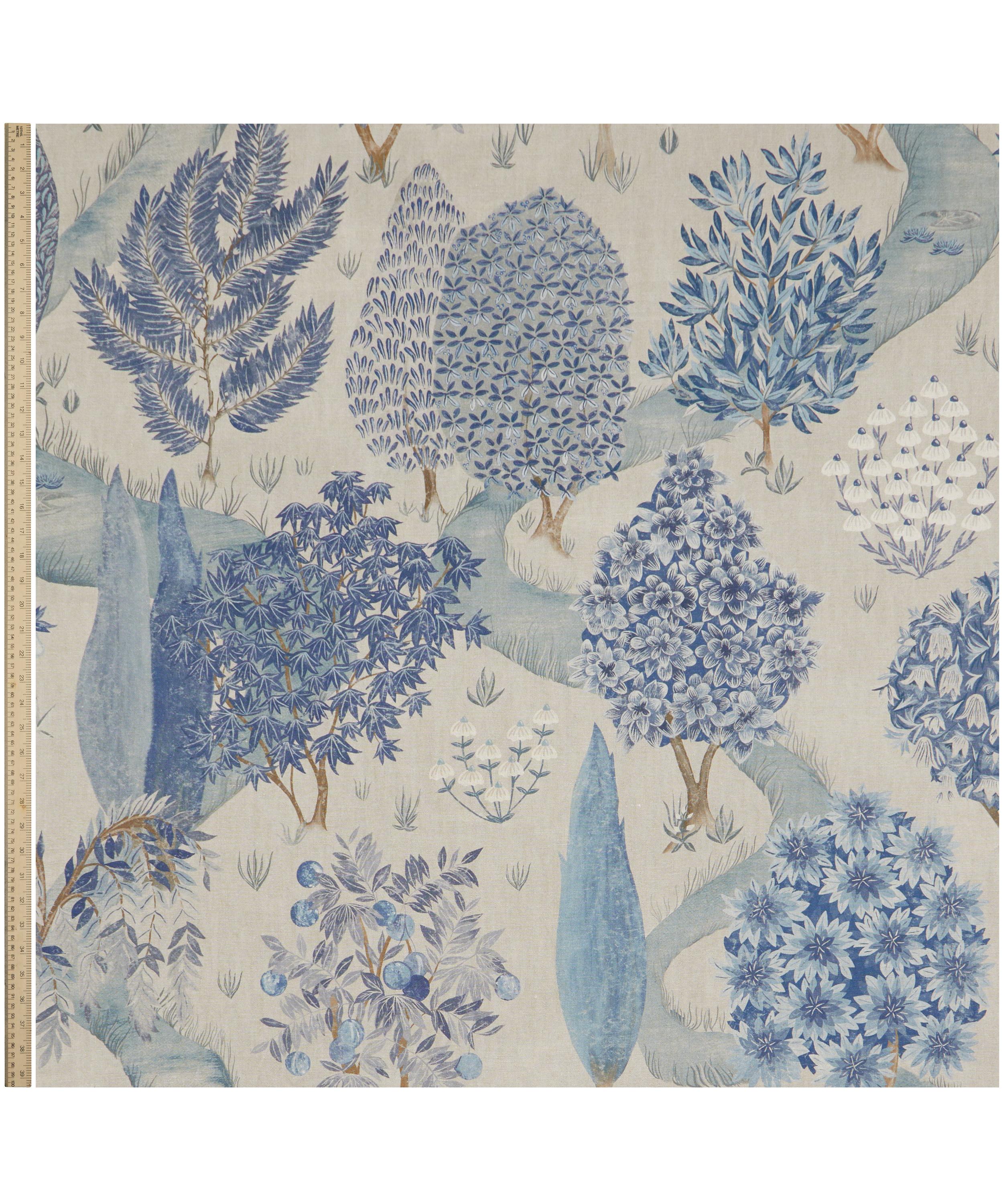 Hand-painted in the Liberty Design Studio in a style influenced by miniature Indian garden paintings, this captivating design integrates stylised trees from all over the world including maple, cypress, willow, orange, and pear. Weaving through these lush woodlands are meandering streams, delicate grass, and even an imagined Liberty floral tree. Printed in Italy on a beautiful linen, with a heavy drape and soft tumbled finish, Enchanted Wood is perfect for upholstery, drapery, cushions, and accessories.