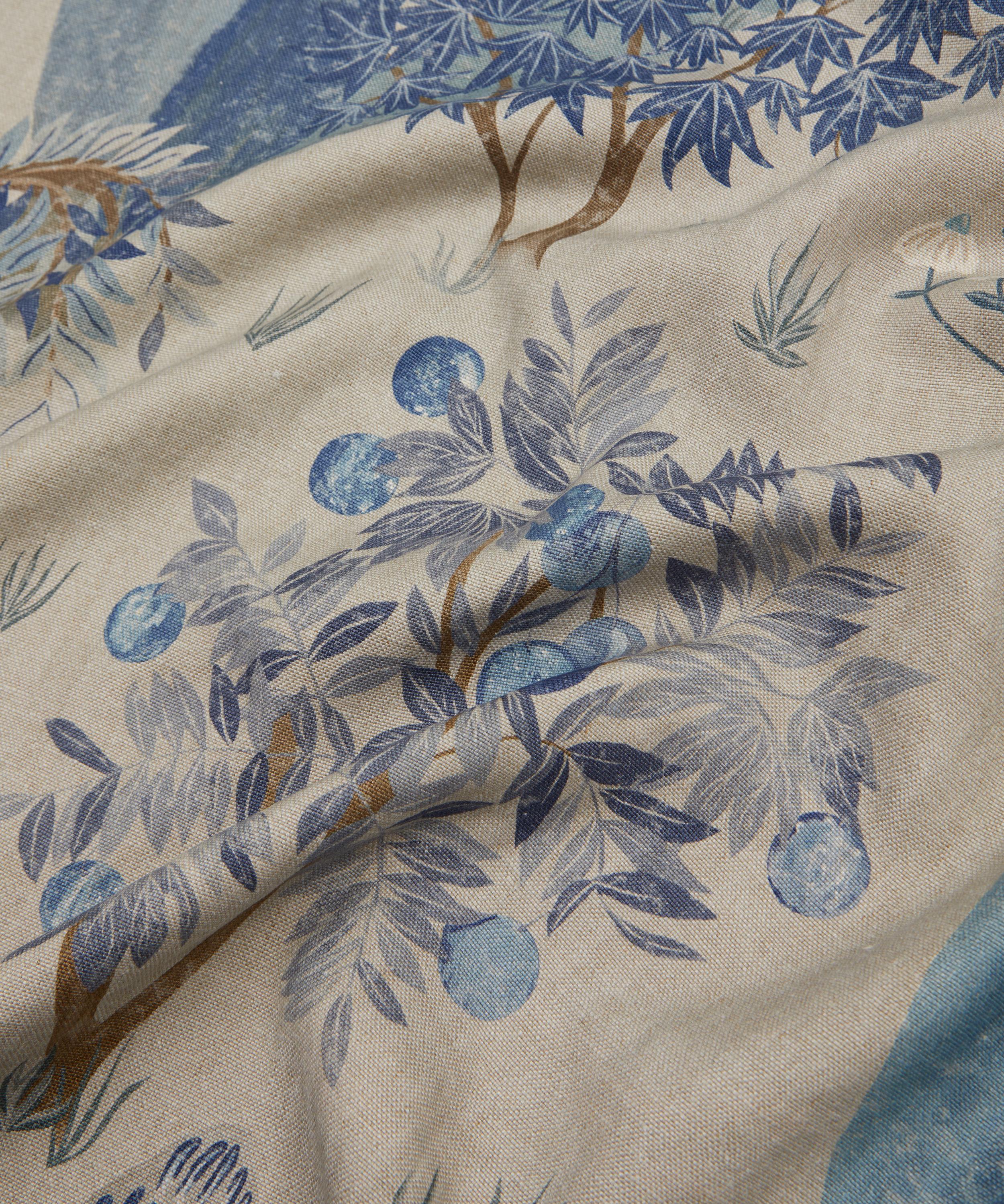 Hand-painted in the Liberty Design Studio in a style influenced by miniature Indian garden paintings, this captivating design integrates stylised trees from all over the world including maple, cypress, willow, orange, and pear. Weaving through these lush woodlands are meandering streams, delicate grass, and even an imagined Liberty floral tree. Printed in Italy on a beautiful linen, with a heavy drape and soft tumbled finish, Enchanted Wood is perfect for upholstery, drapery, cushions, and accessories.
