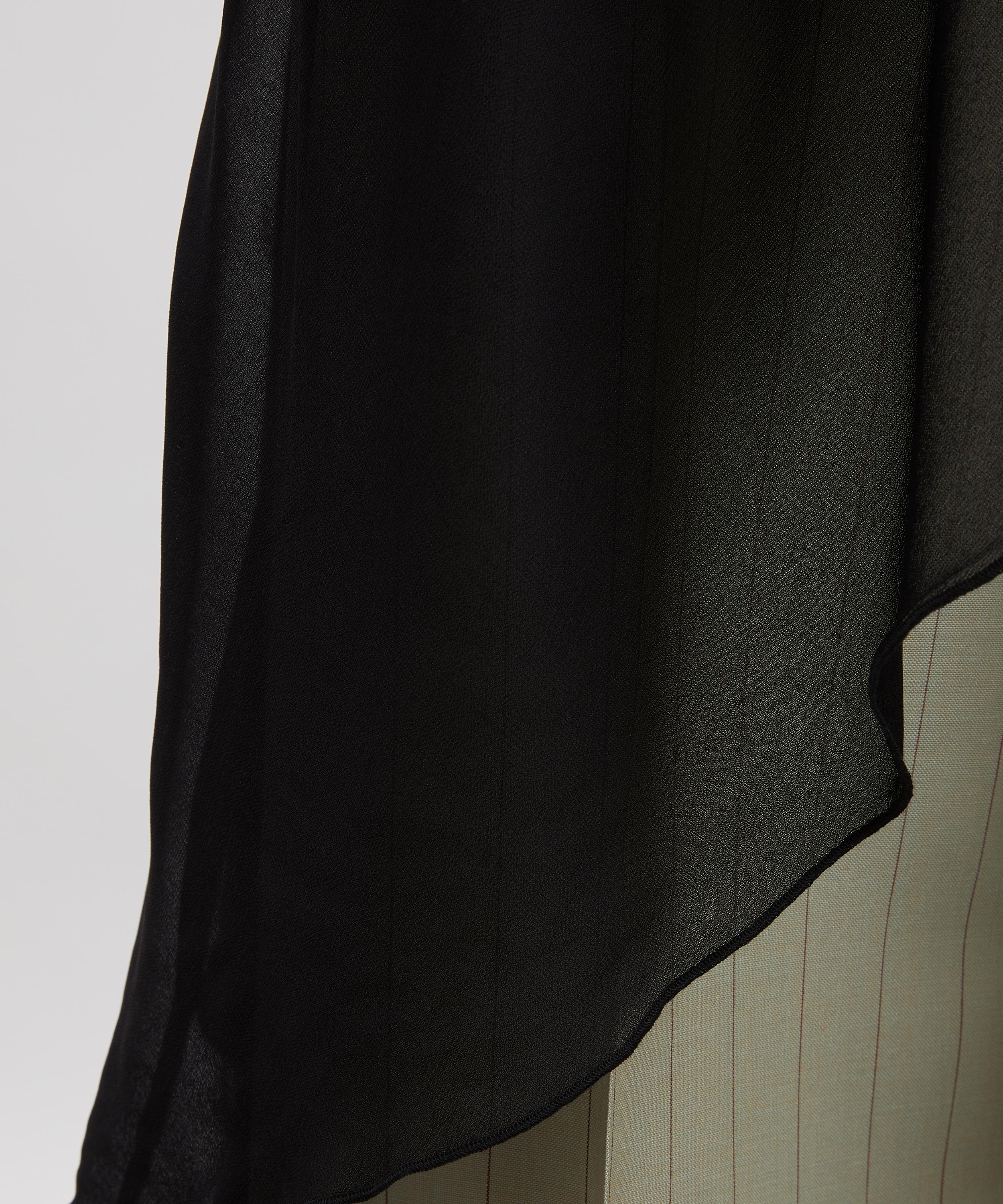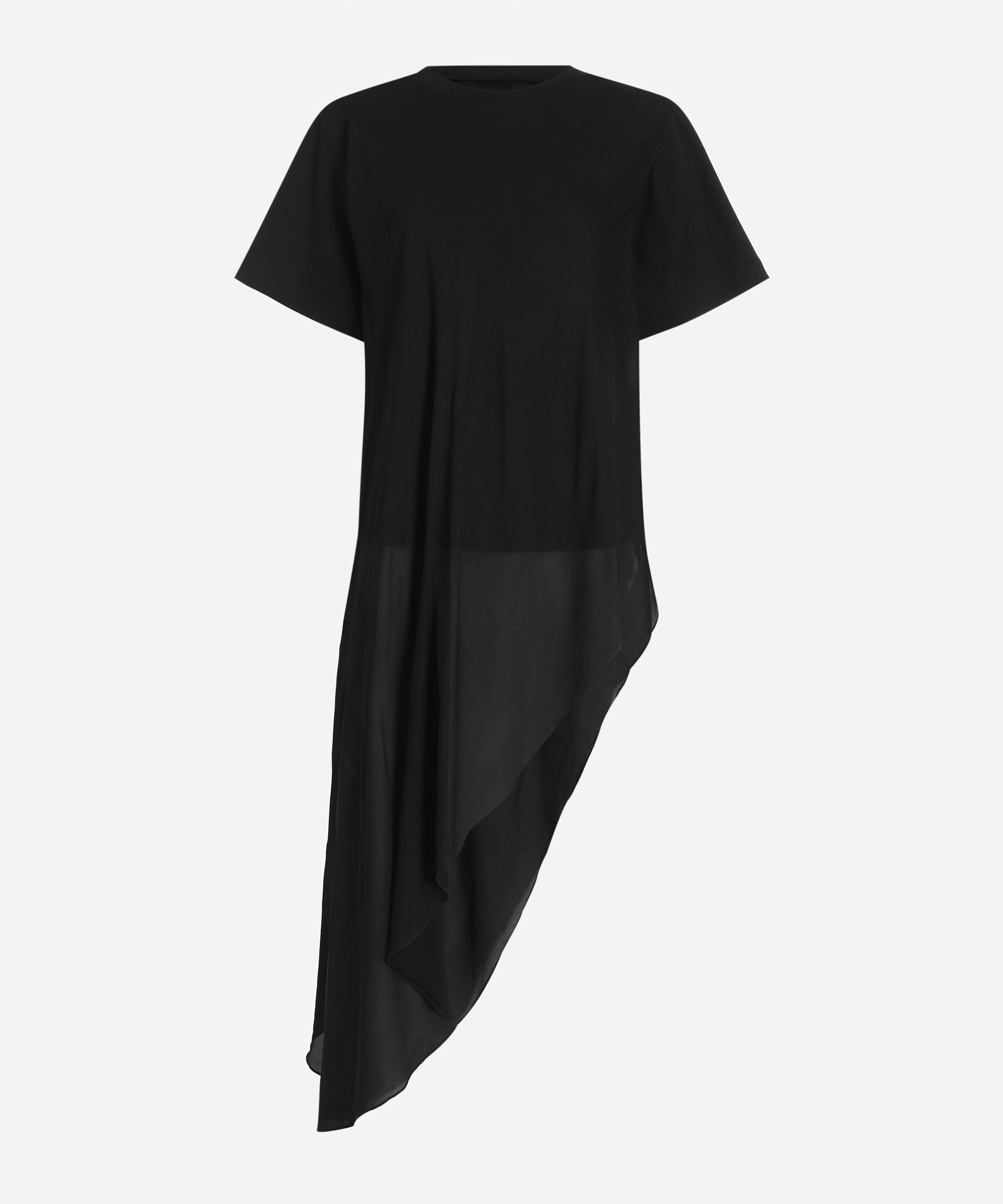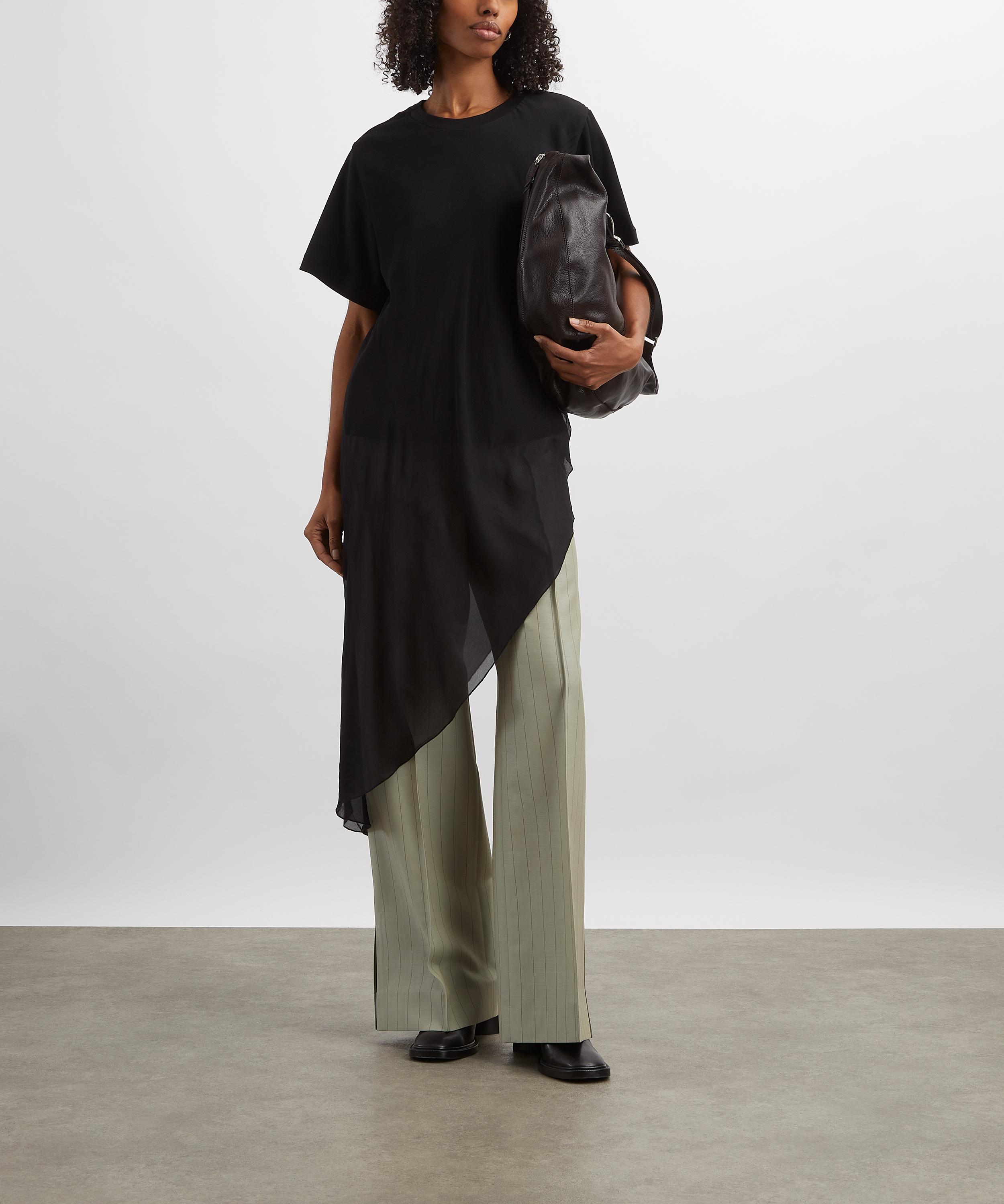 This classic crew-neck t-shirt gets a modern twist with a sheer, asymmetric overlay - ideal for layering over trousers or skirts.