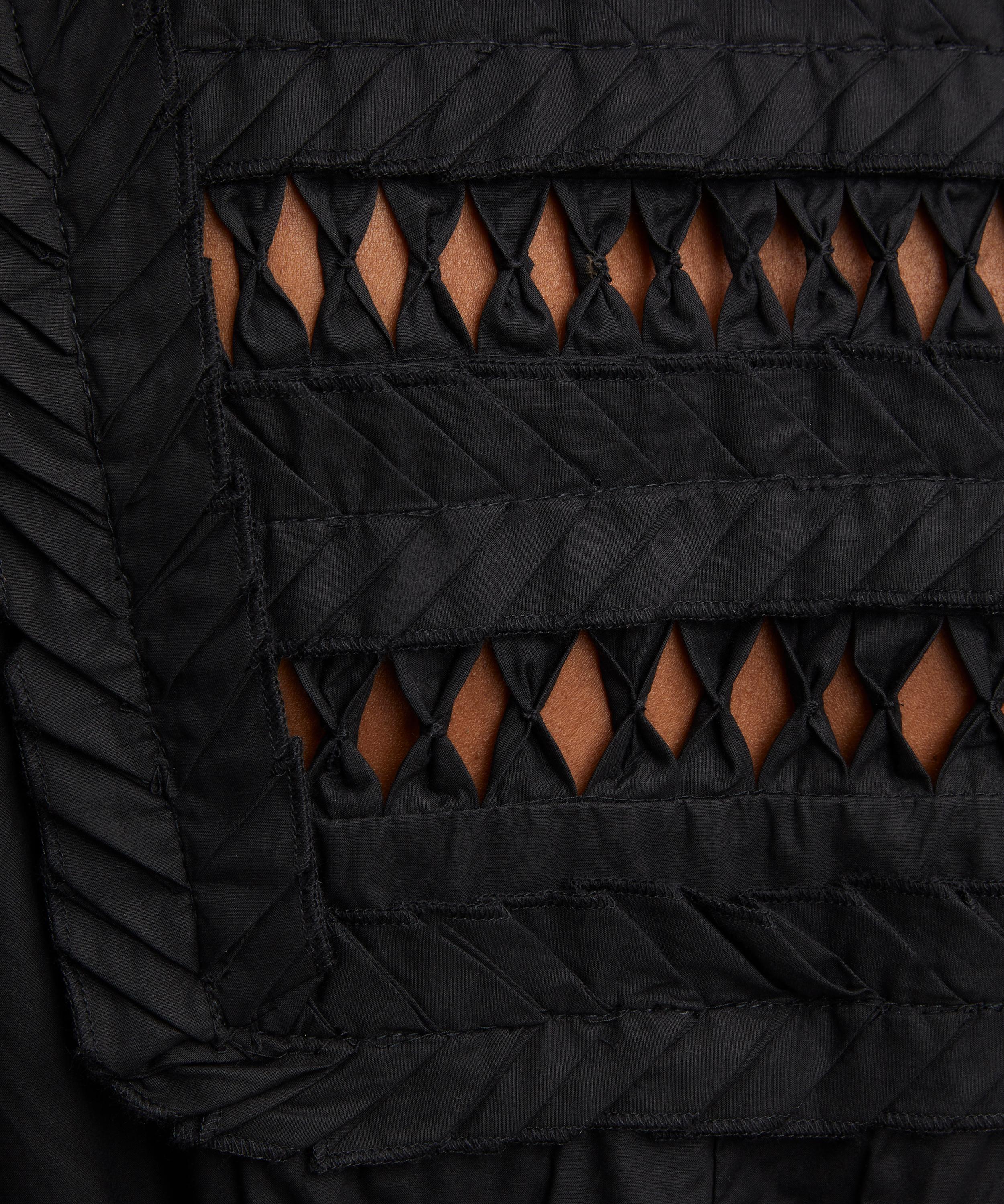Crafted from airy cotton poplin, it features voluminous balloon sleeves, a collared V-neckline and a delicately handmade yoke. Effortlessly versatile, it shifts from summer staple to autumn favourite when styled with knee-high boots.