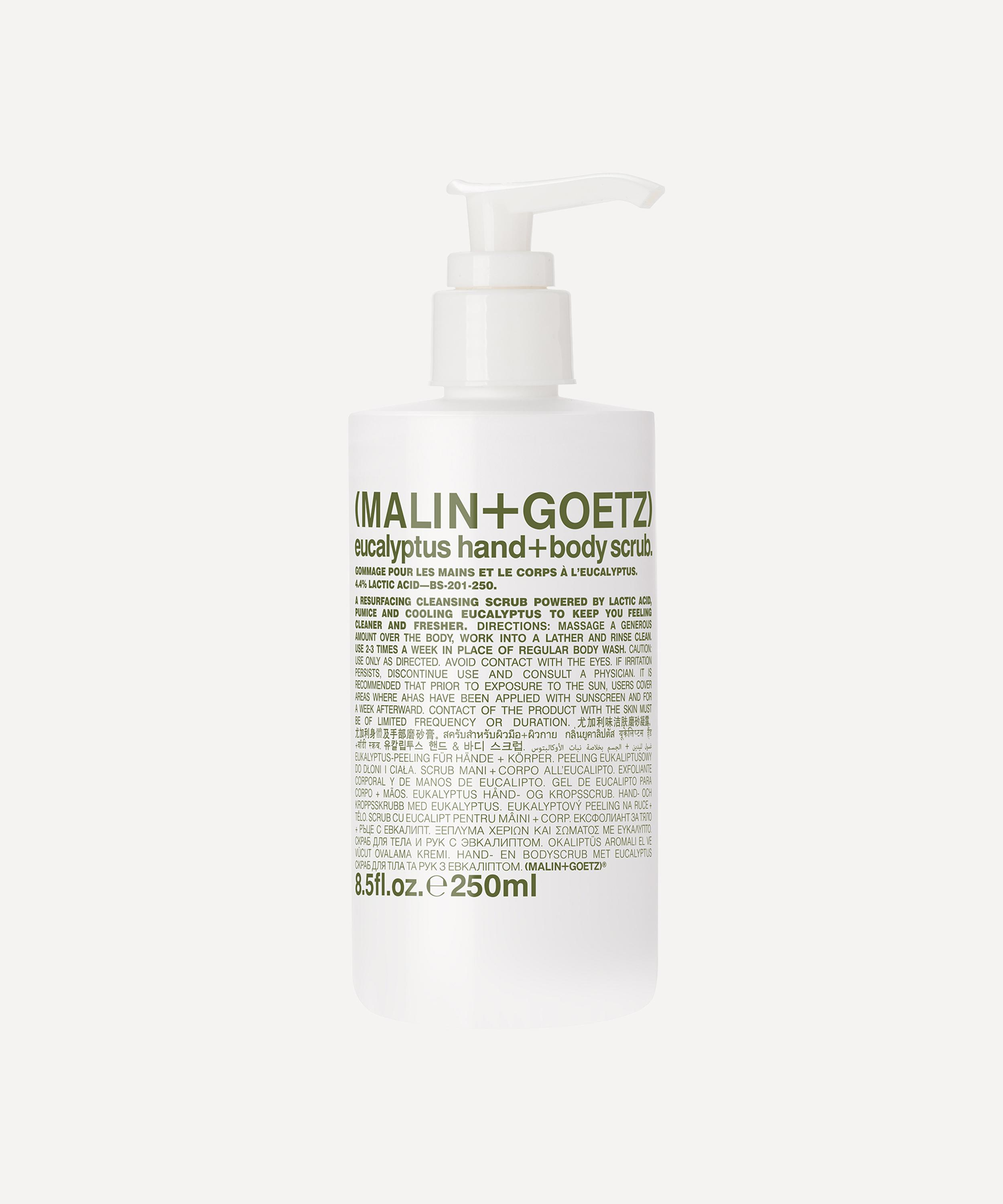 The Eucalyptus Hand and Body Scrub from (MALIN+GOETZ) is a two-in-one cleanser crafted to deliver refreshed, brighter and smoother skin.