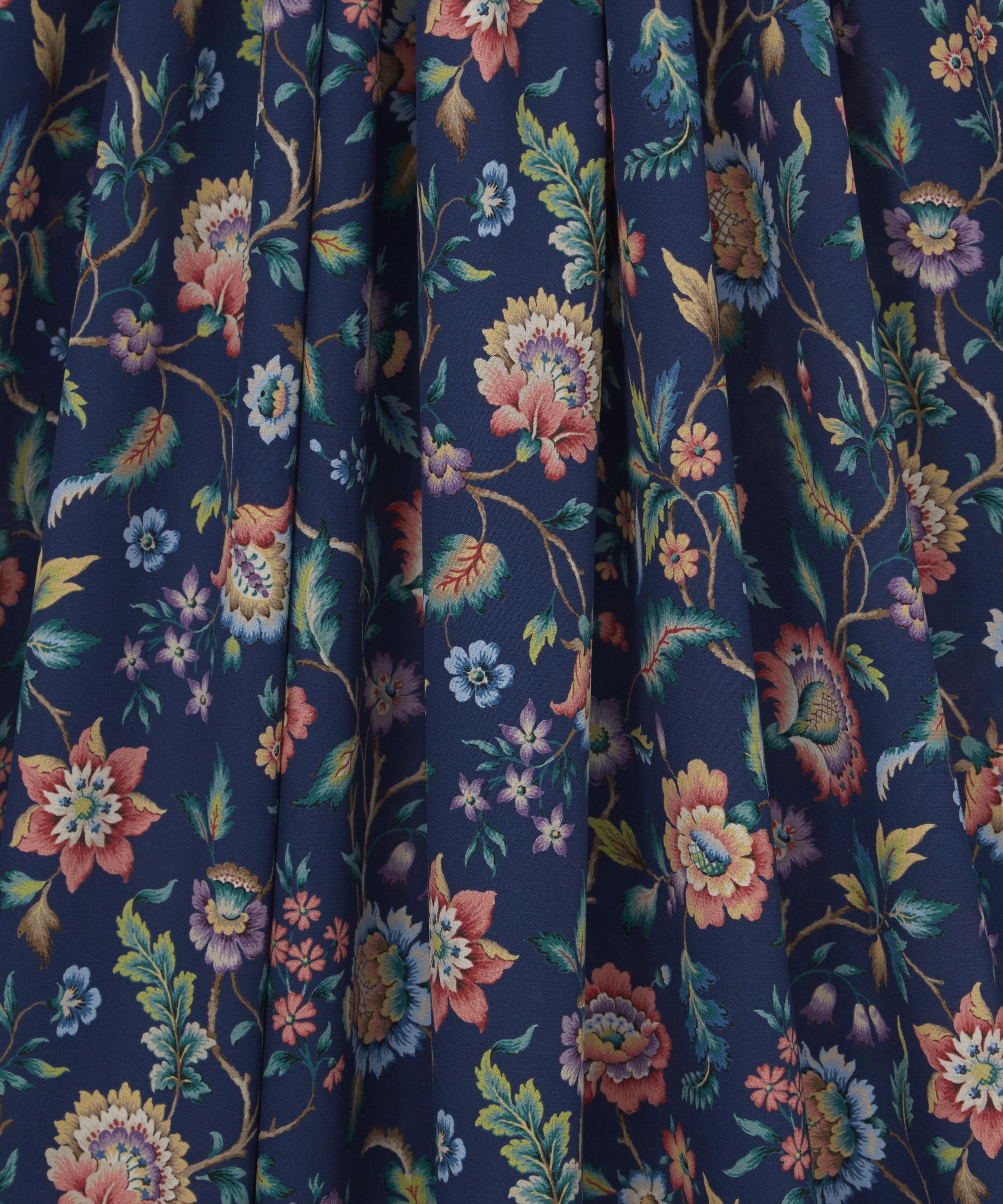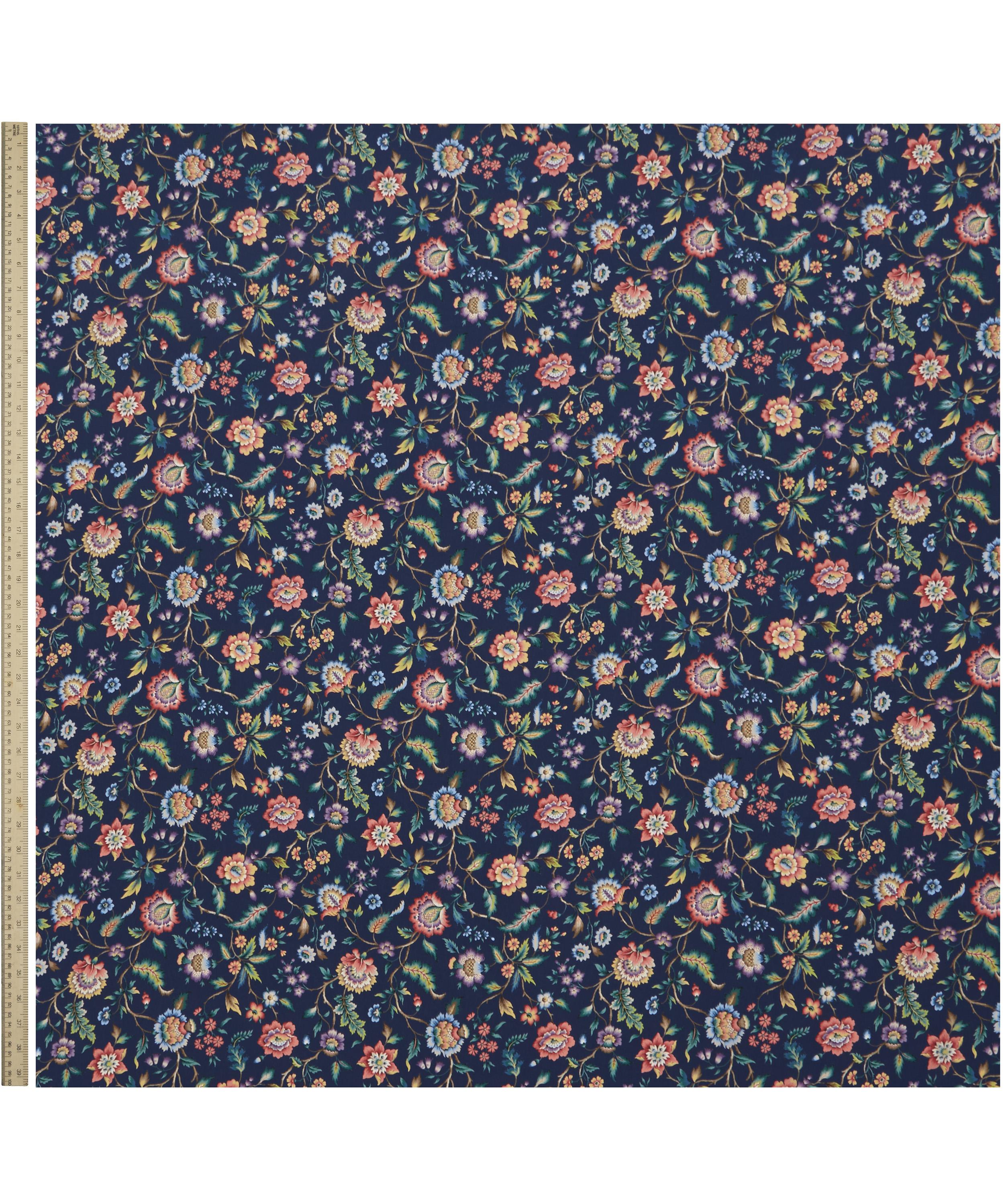 Eva Belle is inspired by a design from the Liberty archive, originally created between the 1910s and 1930s in Jacobean needlework style. A Tree of Life arrangement, it features stylised florals with winding leaves and intricately shaded petals in soft jewel-tone colourways.