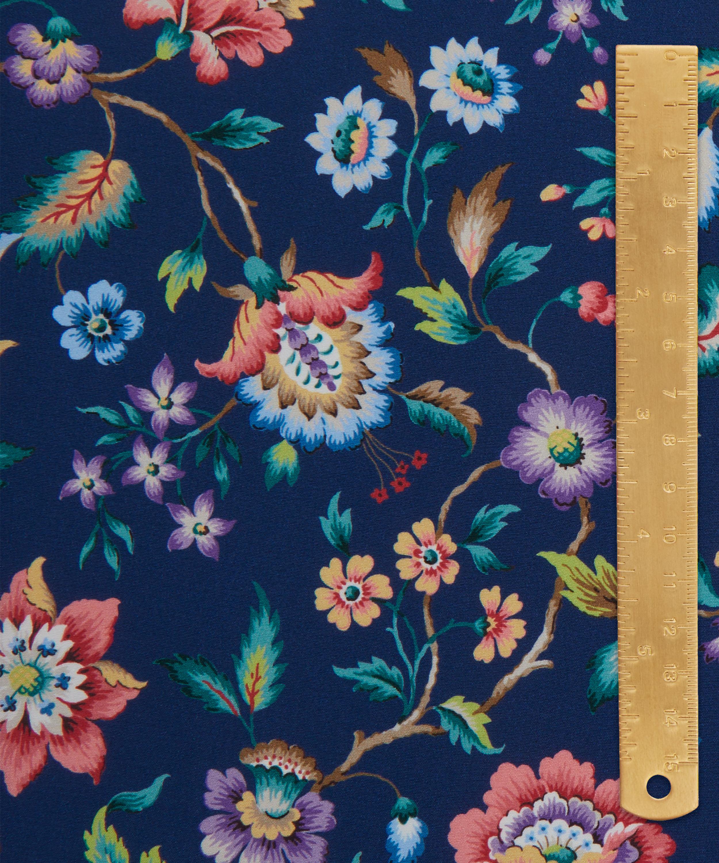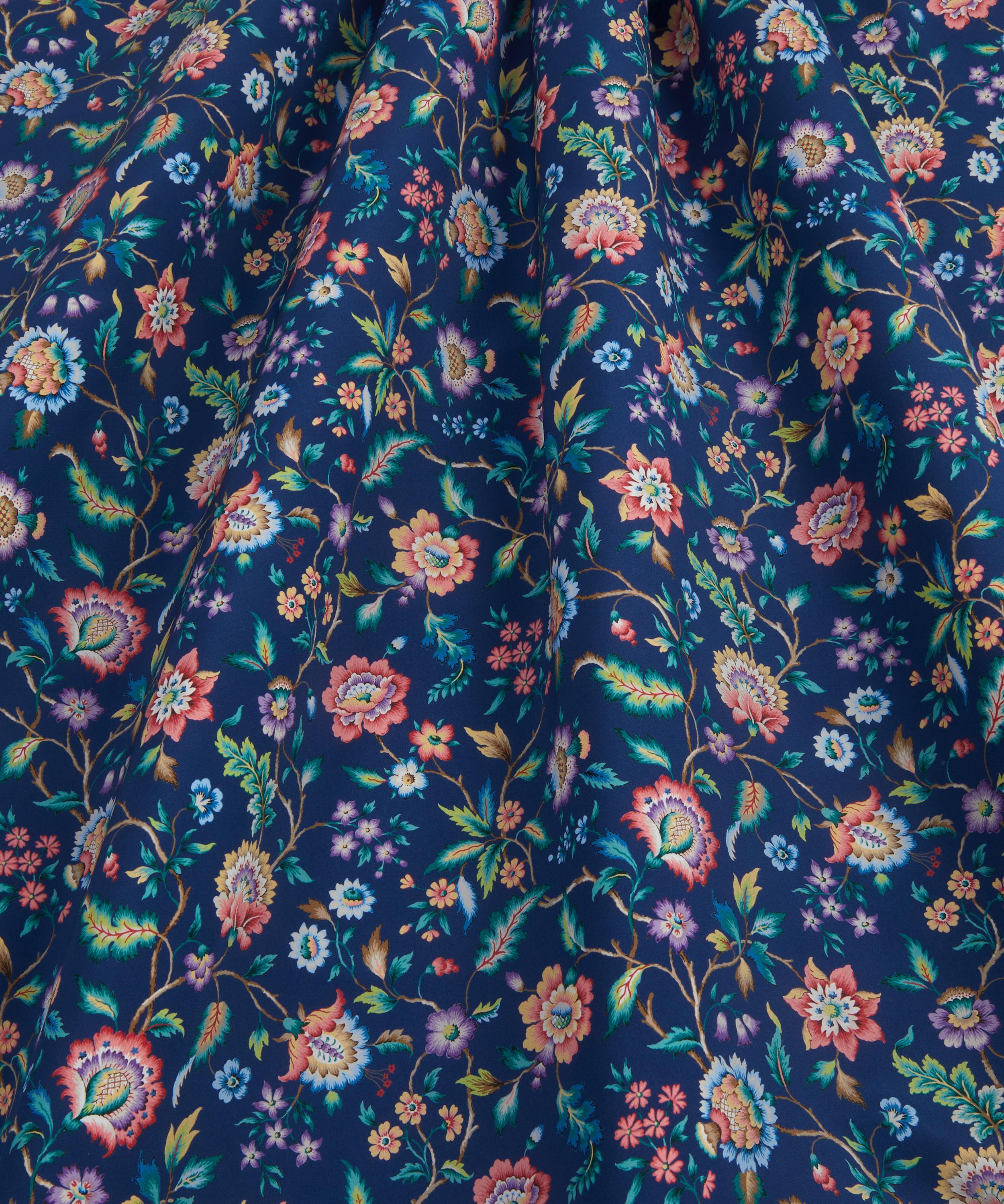 Our Eva Belle print is inspired by a design from the Liberty Fabrics archive, originally created between the 1910s and 1930s in Jacobean needlework style. A Tree of Life arrangement, it features stylised florals with winding leaves and intricately shaded petals in soft jewel-tone colourways.