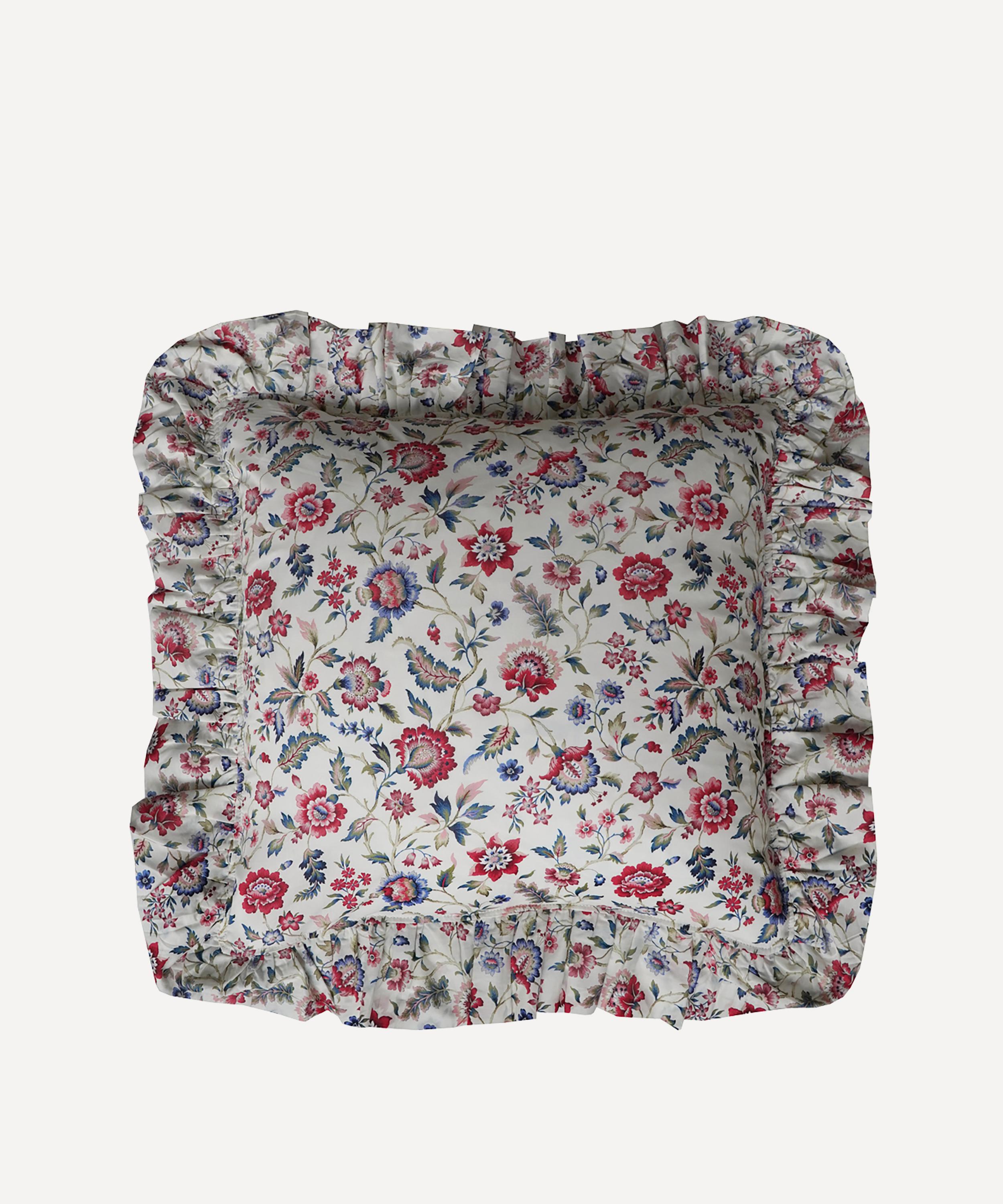 This Liberty print ruffle square cushion from Coco & Wolf is set to brighten up bedding and seating arrangements.