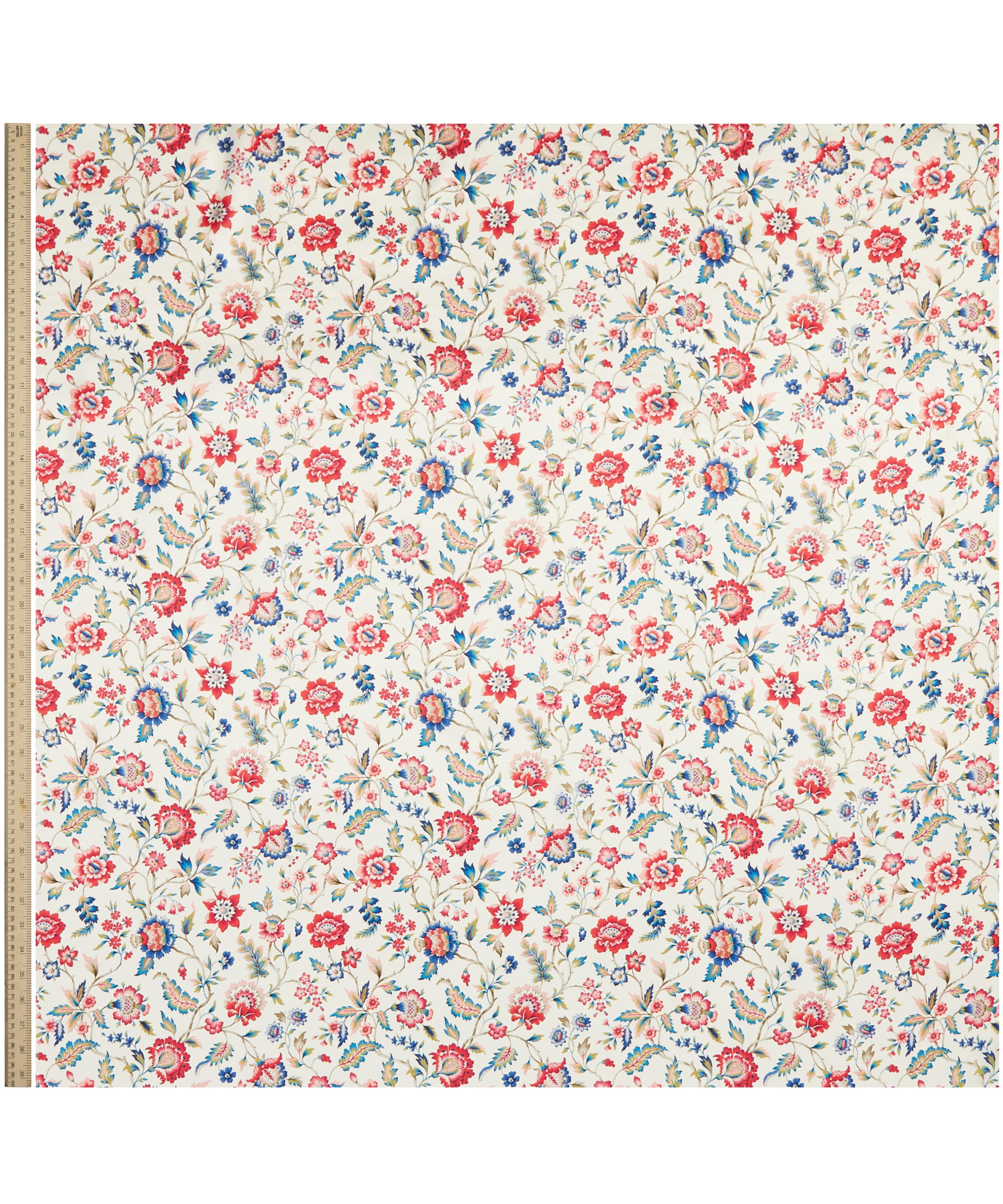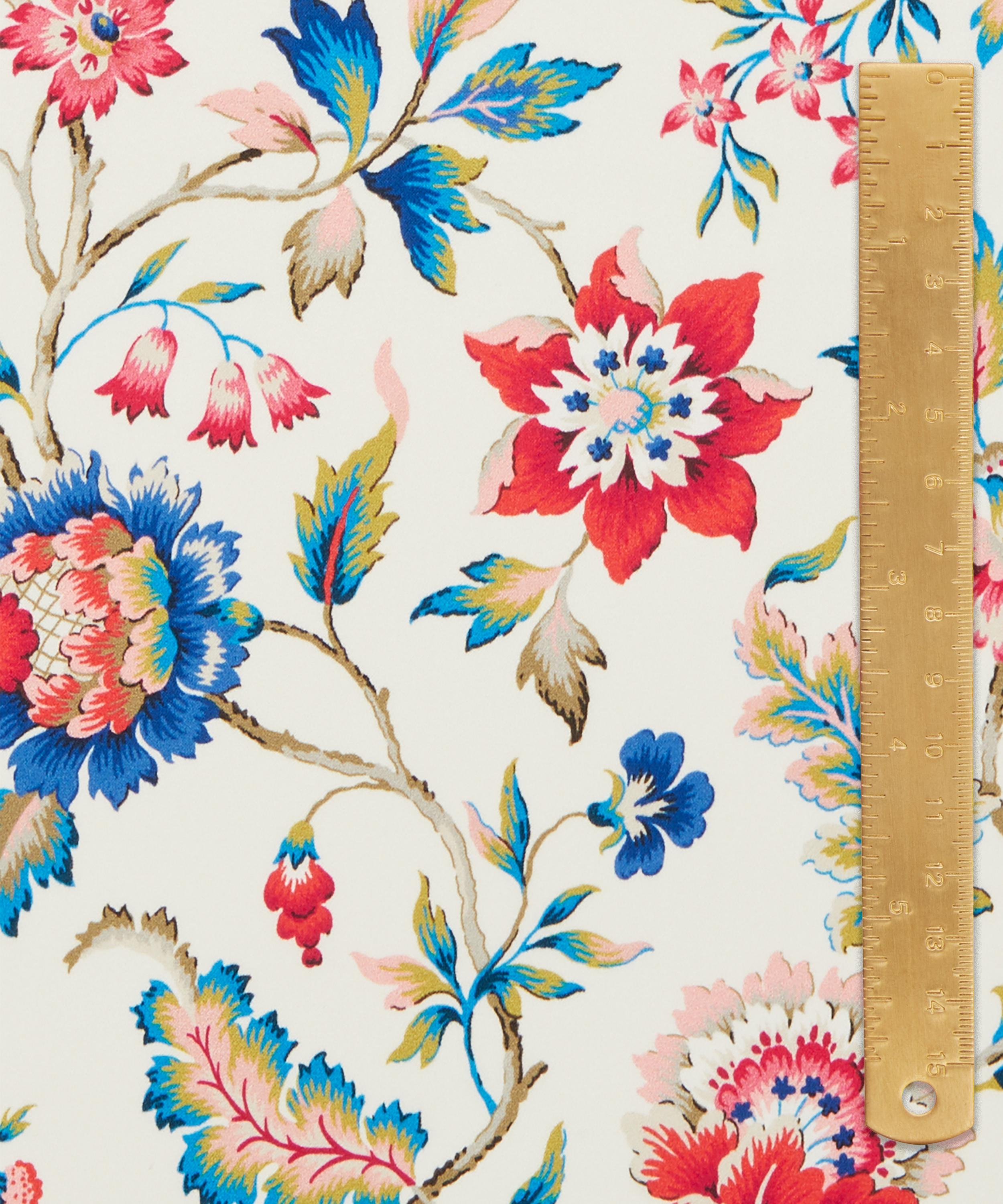 Our Eva Belle print is inspired by a design from the Liberty Fabrics archive, originally created between the 1910s and 1930s in Jacobean needlework style. A Tree of Life arrangement, it features stylised florals with winding leaves and intricately shaded petals in soft jewel-tone colourways.