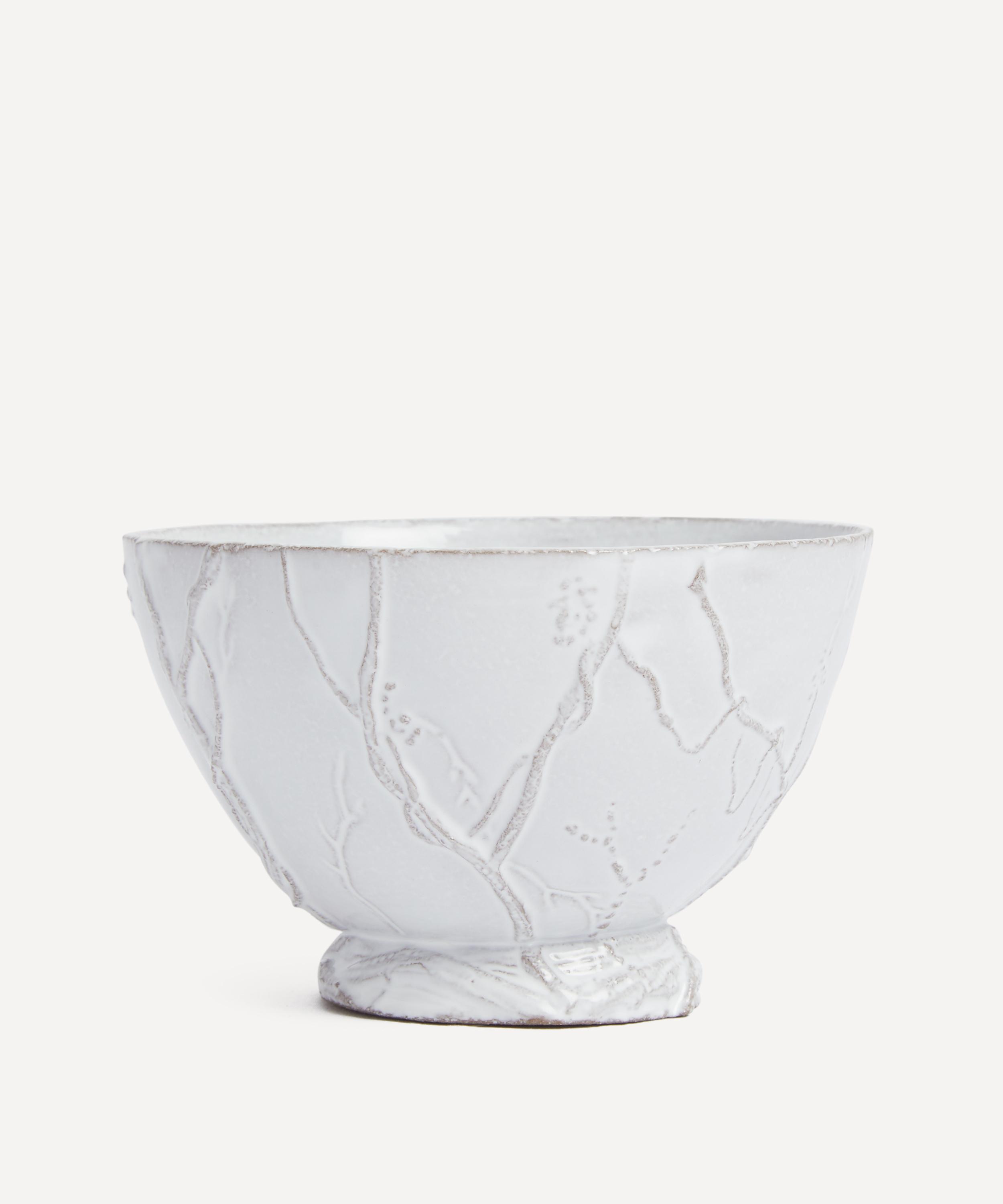 Votary of pre-industrial fabrication, Astier de Villatte is celebrated for being the one and only studio in Paris to hold and harbour the traditions of artisanal ceramic production. Restoring the ancestral systems of moulding and stamping, this bowl is made using techniques from the Middle Ages which involve moulding a sheet of handmade clay, double firing the ‘biscuit’ piece and glazing the product in white enamel – a lengthy process that requires a drying time of up to one month. Designed by Eva Jospin to depict an airy, sylvan interlacing of vines and branches, this bowl is engraved with the brand’s signature crest - depicting an interlacing A & V - alongside the initials of one of the 40 master artisans who created it. Each handmade piece tells a beautiful story, it romances and imparts a sense of nostalgia into its owner. Arrange with other bowls in the collection to breathe an air of authenticity into your dining collection.