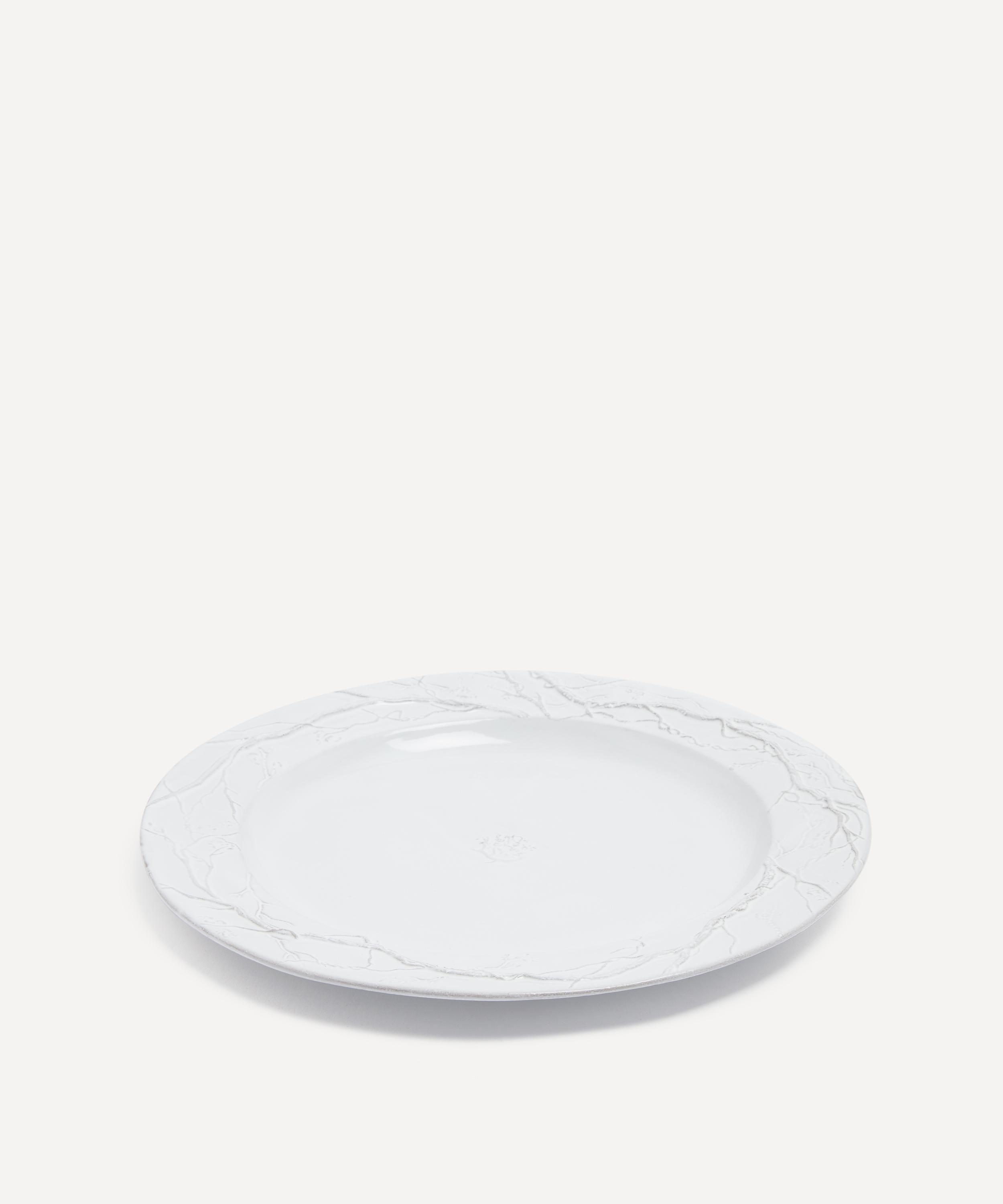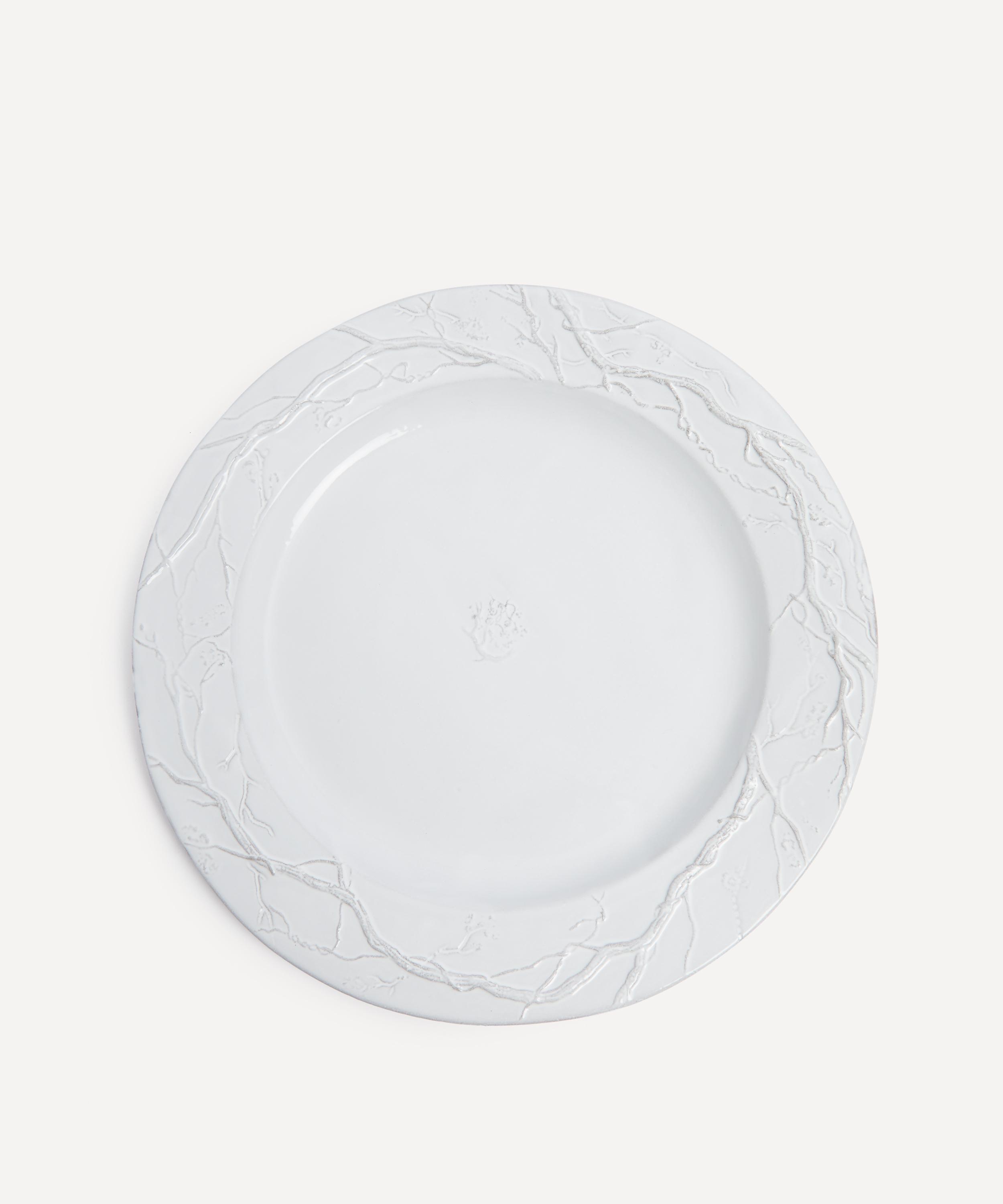 Votary of pre-industrial fabrication, Astier de Villatte is celebrated for being the one and only studio in Paris to hold and harbour the traditions of artisanal ceramic production. Restoring the ancestral systems of moulding and stamping, this plate is made using techniques from the Middle Ages which involve moulding a sheet of handmade clay, double firing the ‘biscuit’ piece and glazing the product in white enamel – a lengthy process that requires a drying time of up to one month. Designed by Eva Jospin to depict an airy, sylvan interlacing of vines and branches, this plate is engraved with the brand’s signature crest - depicting an interlacing A & V - alongside the initials of one of the 40 master artisans who created it. Each handmade piece tells a beautiful story, it romances and imparts a sense of nostalgia into its owner. Arrange with other plates in the collection to breathe an air of authenticity into your dining collection.
