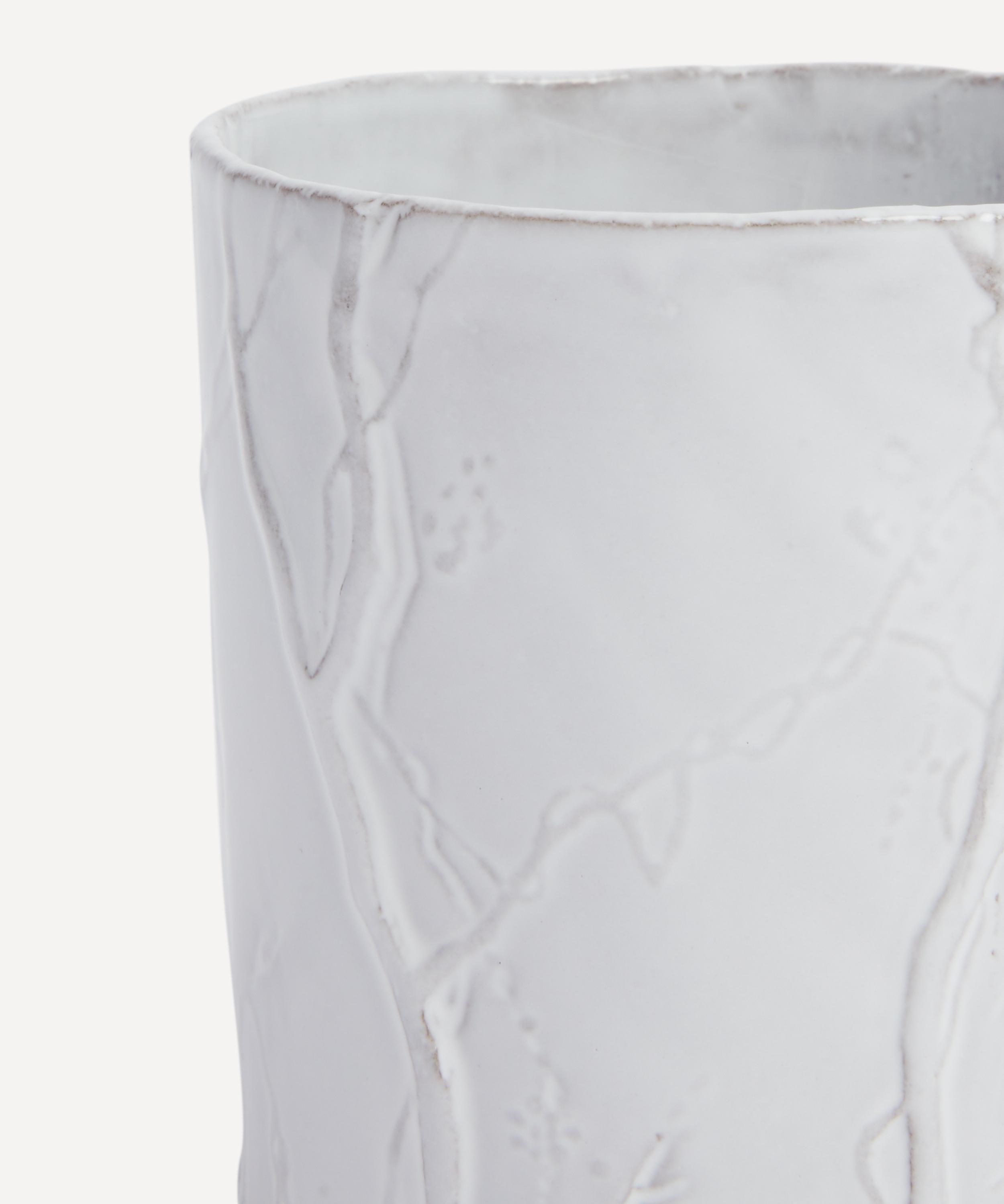 Votary of pre-industrial fabrication, Astier de Villatte is celebrated for being the one and only studio in Paris to hold and harbour the traditions of artisanal ceramic production. Restoring the ancestral systems of moulding and stamping, this mug is made using techniques from the Middle Ages which involve moulding a sheet of handmade clay, double firing the ‘biscuit’ piece and glazing the product in white enamel – a lengthy process that requires a drying time of up to one month. Designed by Eva Jospin to depict an airy, sylvan interlacing of vines and branches, this mug is engraved with the brand’s signature crest - depicting an interlacing A & V - alongside the initials of one of the 40 master artisans who created it. Each handmade piece tells a beautiful story, it romances and imparts a sense of nostalgia into its owner. Arrange with other mugs in the collection to breathe an air of authenticity into your dining collection.