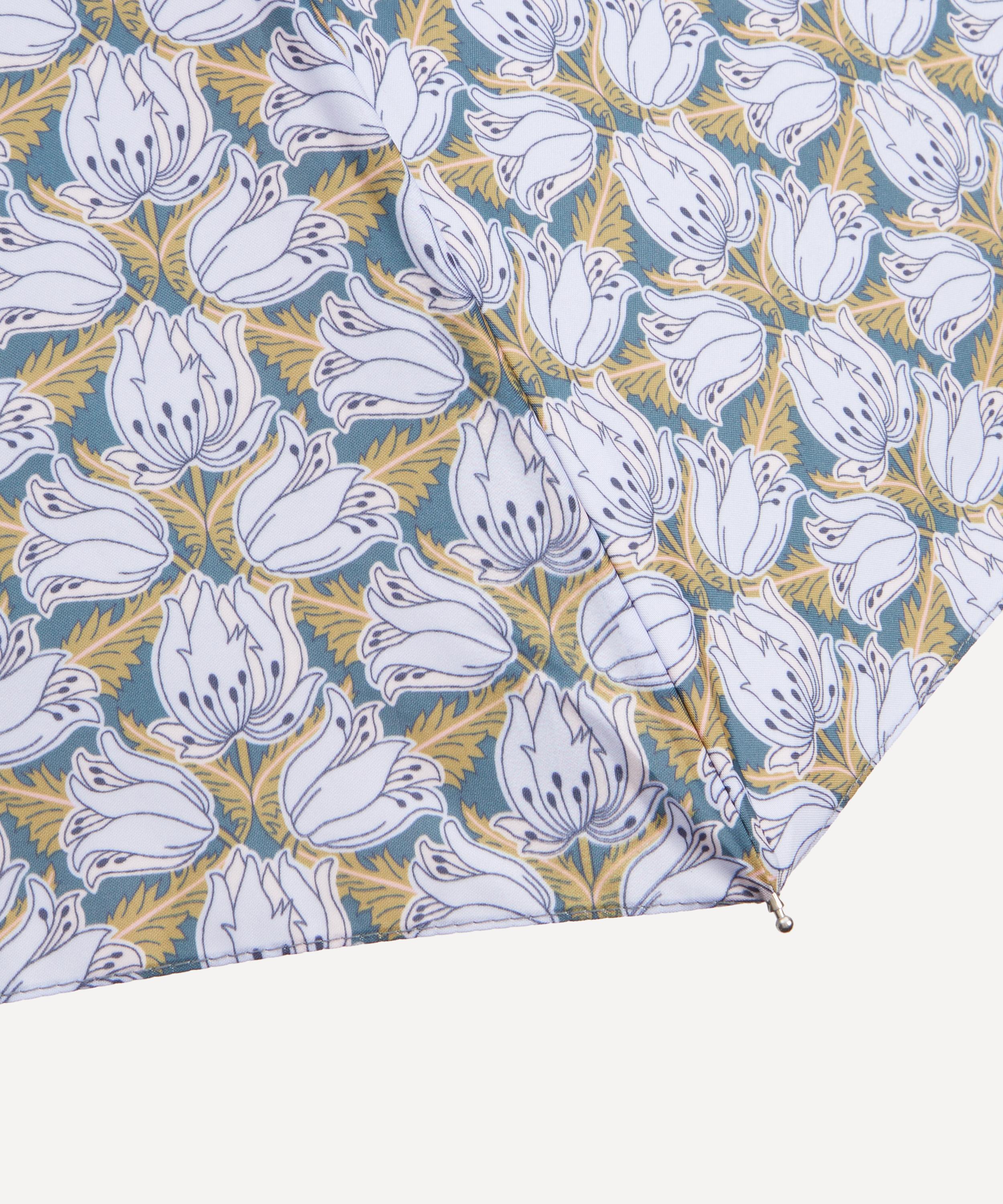 Brighten up gloomy days and stay dry in the rain with Liberty’s umbrella. Both stylish and practical, it’s dressed in our Evelyn Trail print – featuring blossoming lilies and wavy acanthus leaves creating an almost geometric layout, permeated with a typical Art Nouveau aesthetic. Our compact umbrellas are lightweight and foldable, small enough to stow away in your handbag and carry wherever you go.