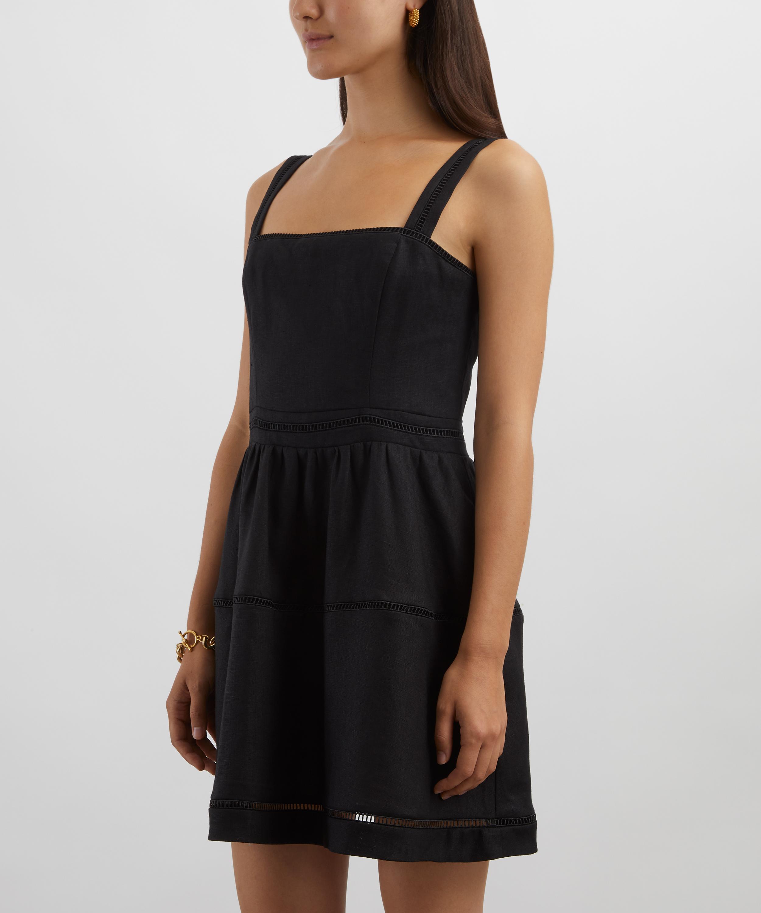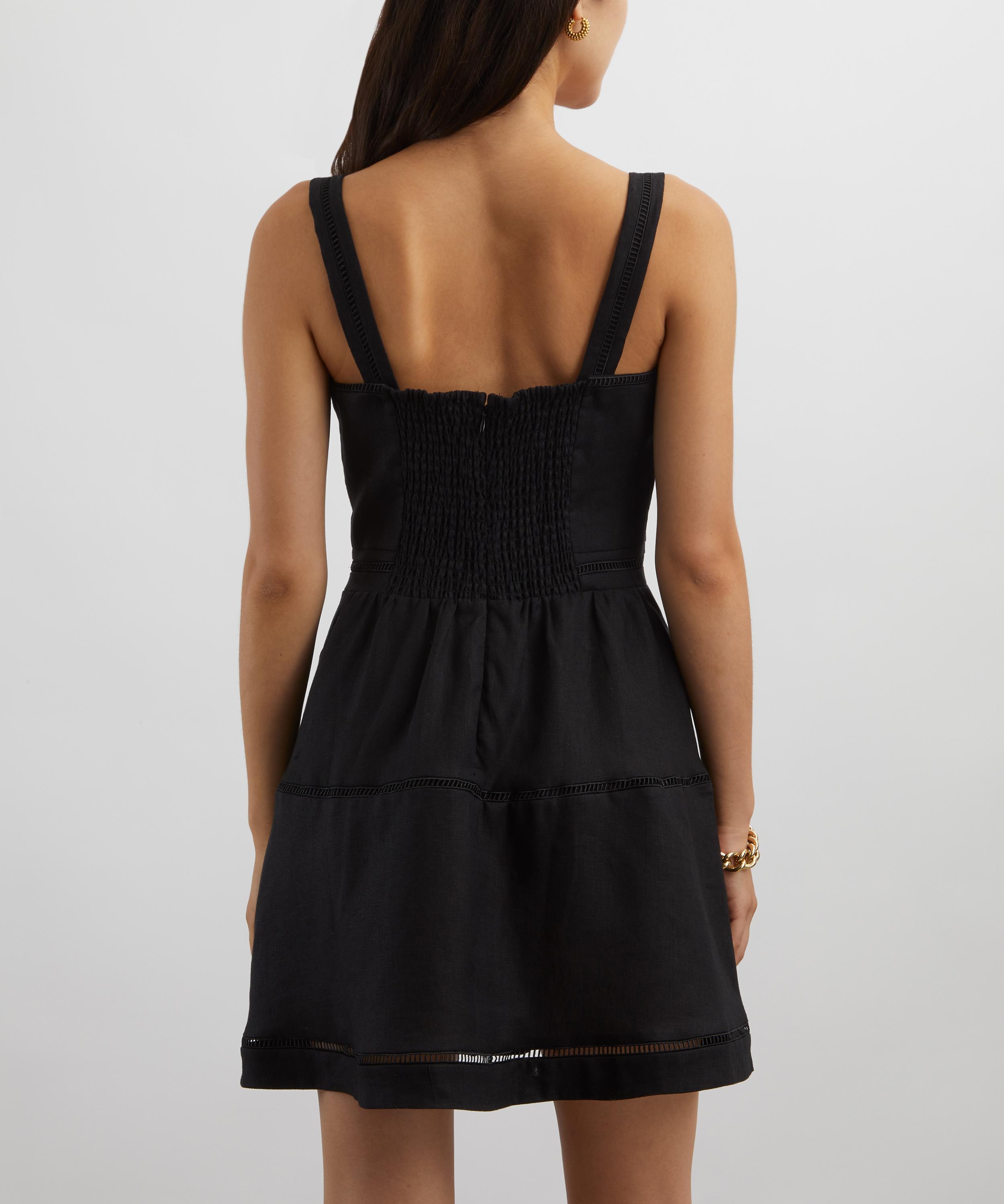 Crafted from lightweight linen, the Everett dress exudes effortless elegance. Featuring a straight neckline and a fitted bodice, this dress falls into a flattering A-line skirt that ends at a playful mini length for a graceful finish.