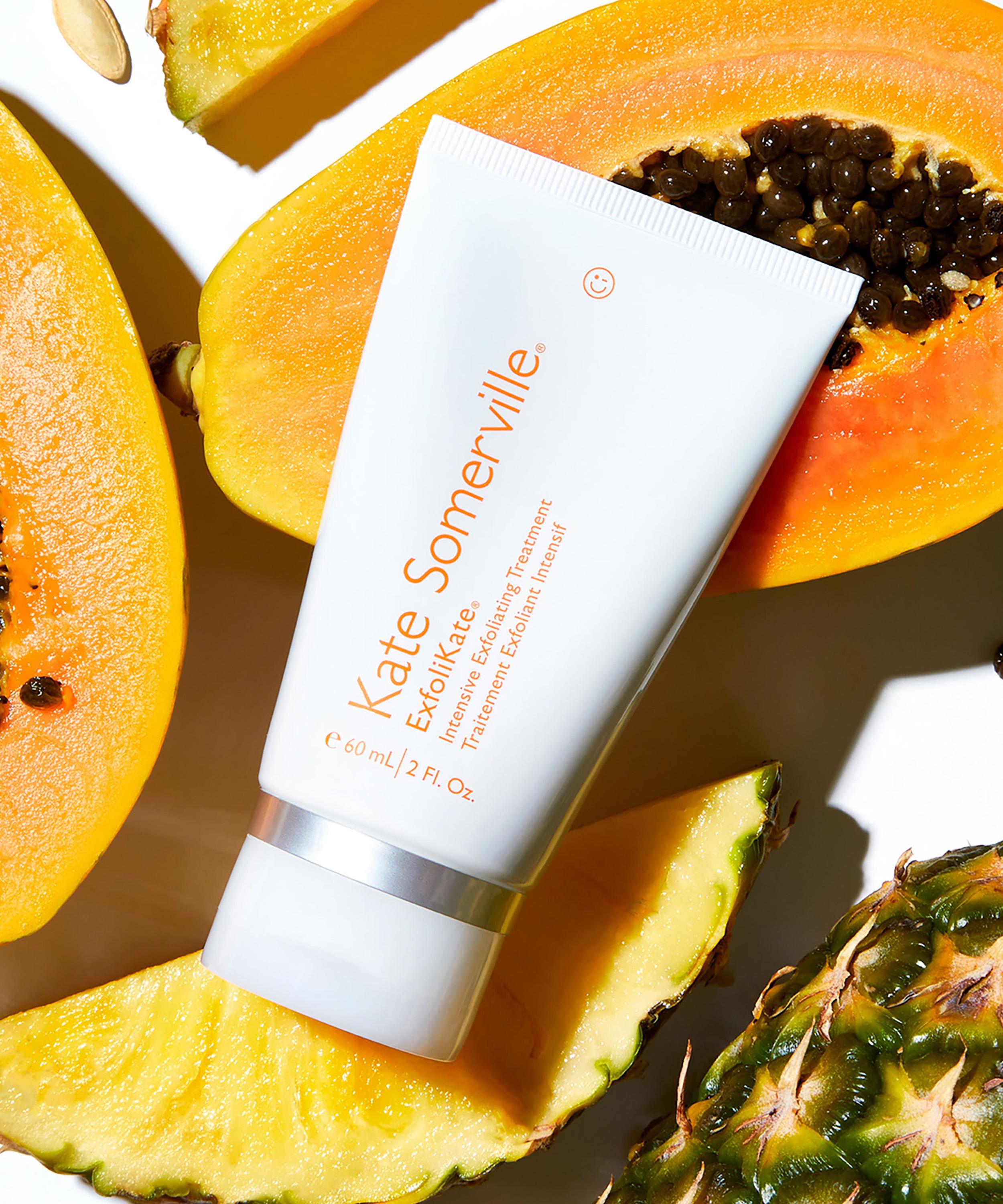 Kate Somerville’s clinic-inspired ExfoliKate Intensive Exfoliating Treatment elegantly buffs away surface dullness to reveal a smooth, glowing complexion.