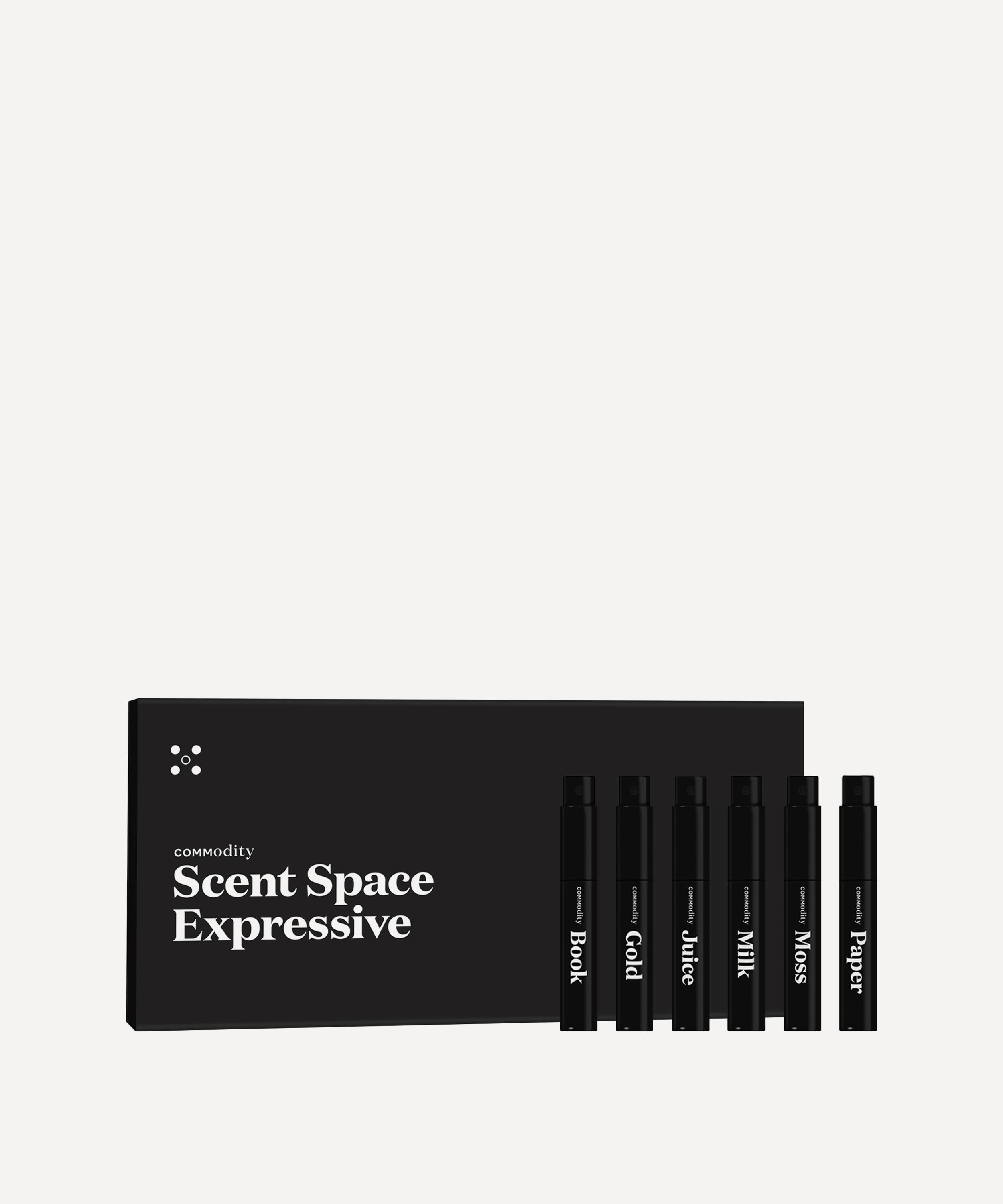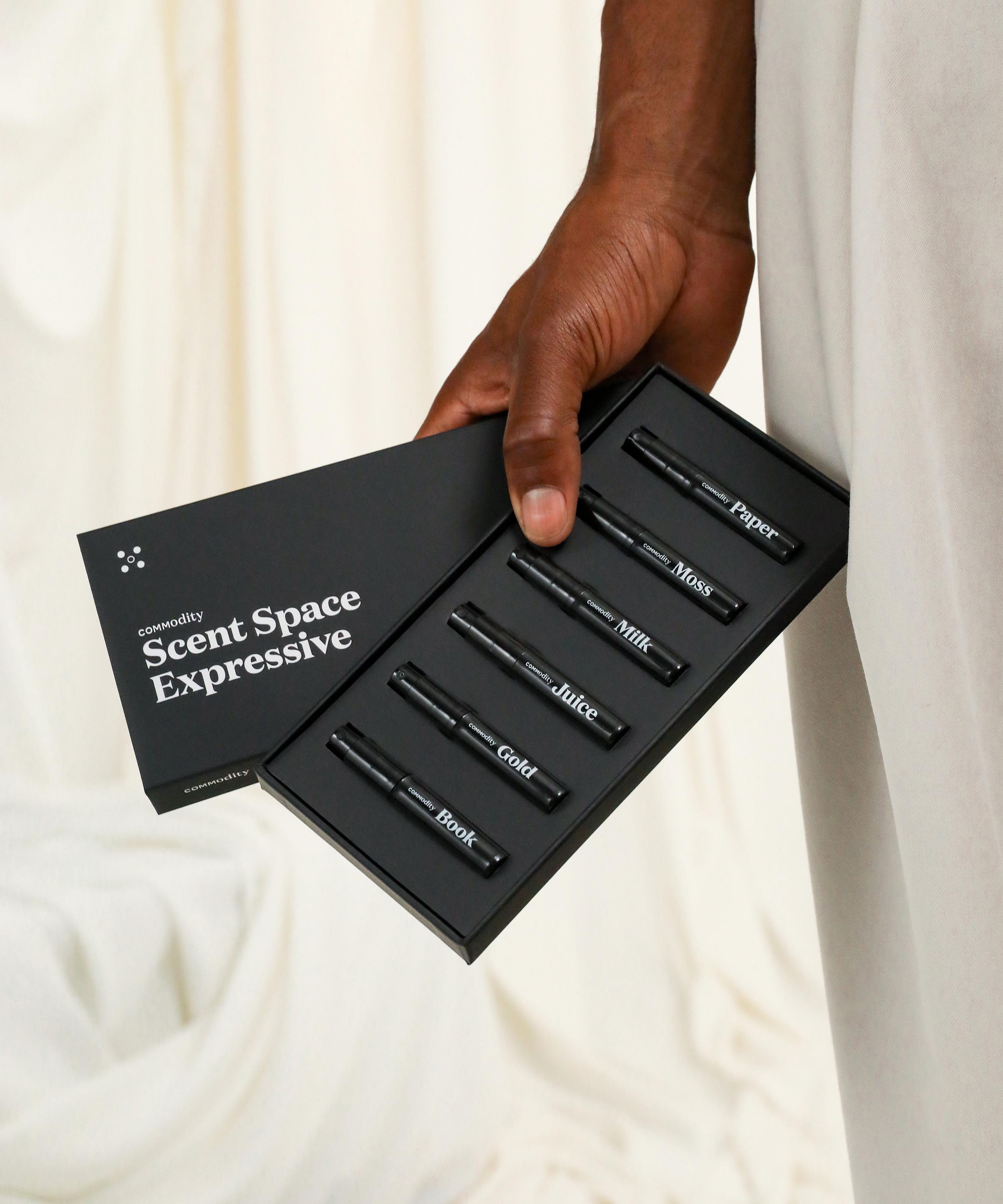 Unveil your signature scent with Commodity’s Expressive Scent Space Kit – six warm, indulgent eau de parfums housed in travel-friendly bottles.
