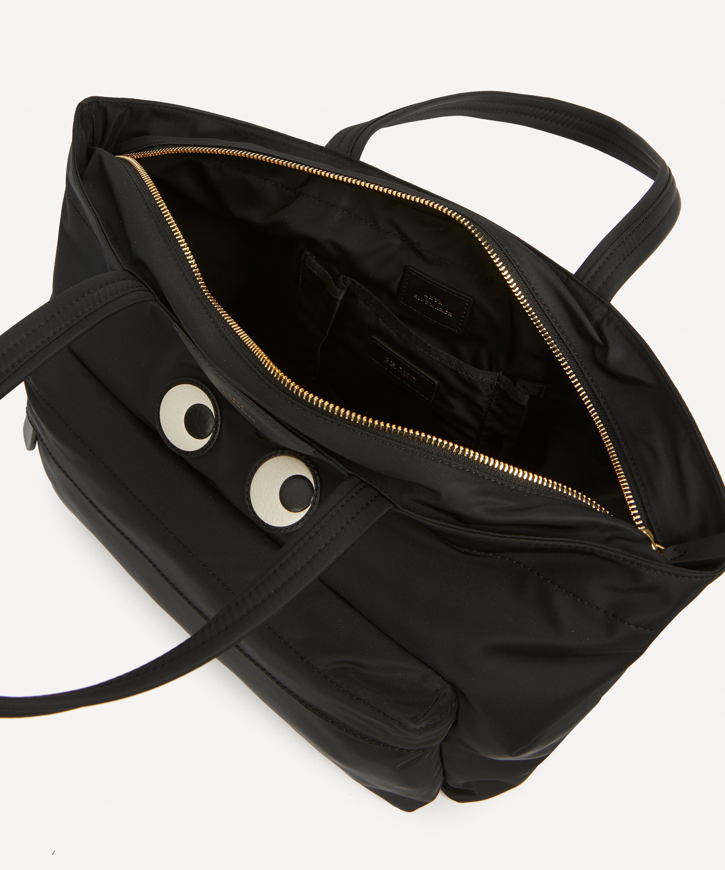 Anya Hindmarch's flair for fun is clear in the Eyes tote bag, crafted from durable recycled nylon with a characterful face design.