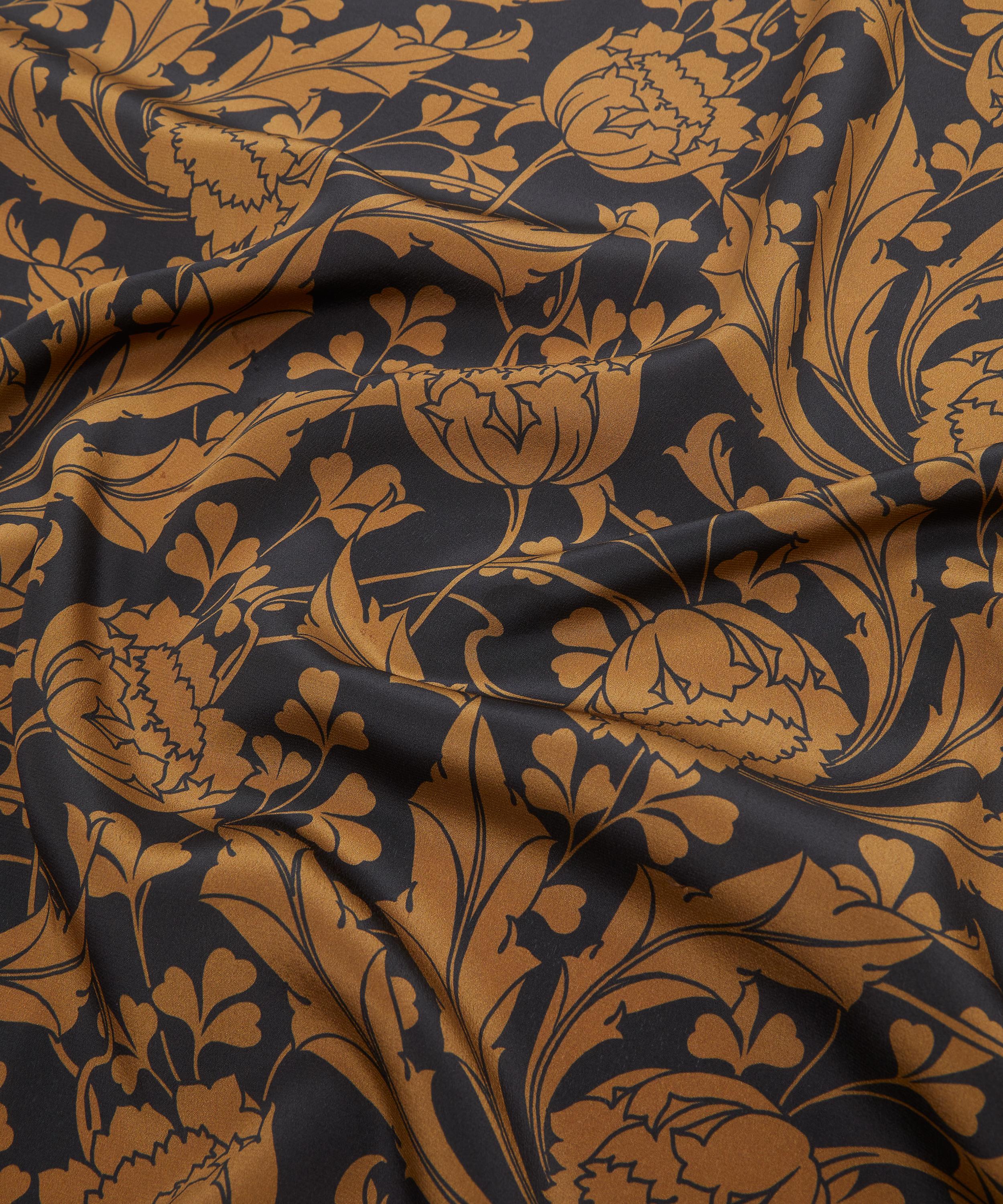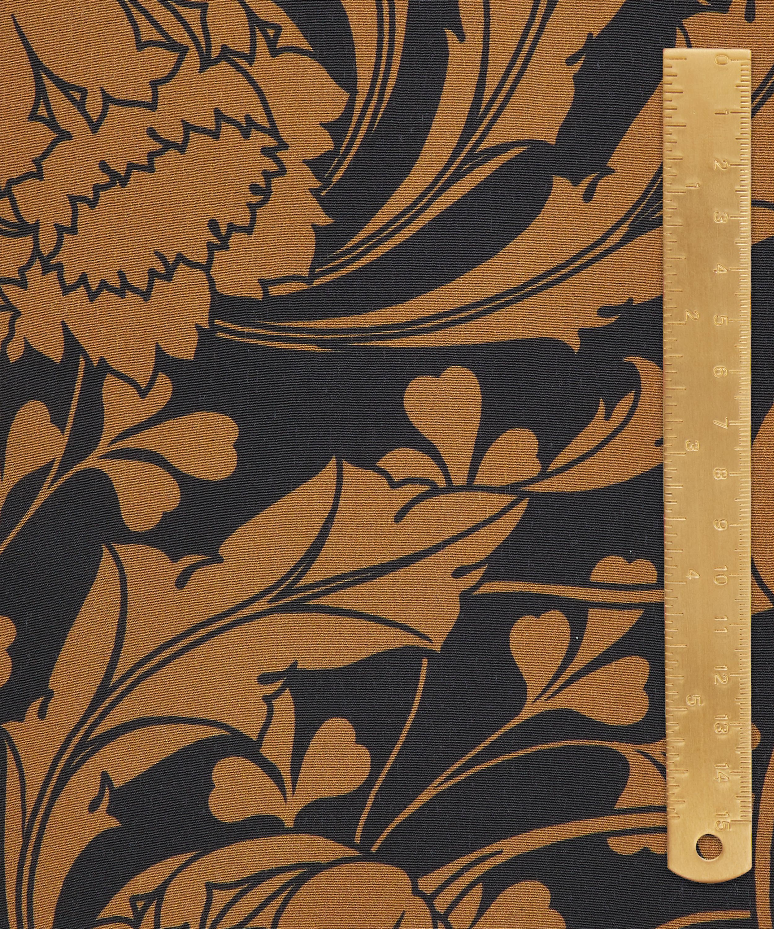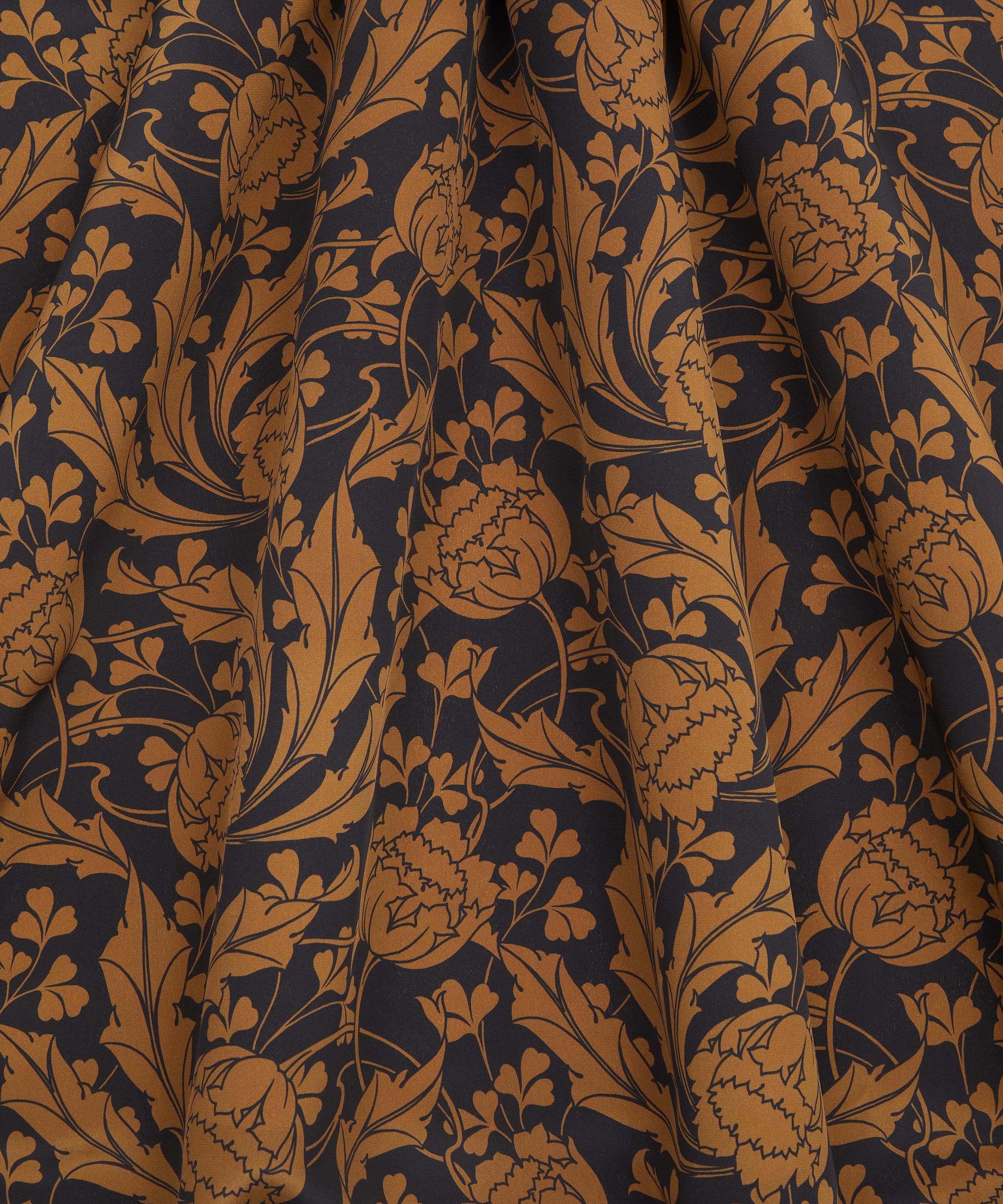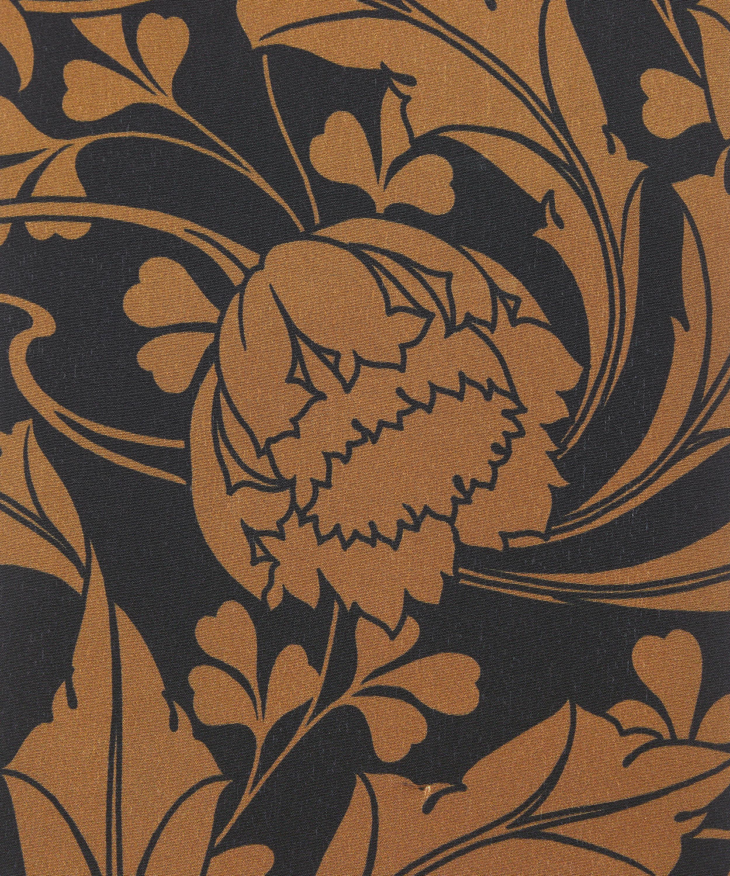 Ezra Venus was inspired by an unfinished Art Nouveau artwork discovered in the Liberty archive. Meticulously retraced into a trailing repeat, its striking tulips sweep into whiplash curves before blossoming into scrolling, leafy vines. Fashioning an ultramodern aesthetic, the bold linework and monochrome silhouettes accentuate the design’s fluidity and dynamic movement. This print is part of the Craftsmanship narrative of this collection, exploring the creative process from within the Liberty archive, from print impressions and embroidered studies, to ceramics, jewellery, and furniture. Uncover the origins of the designers’ musings through artworks inspired by their sketchbooks and prototypes.