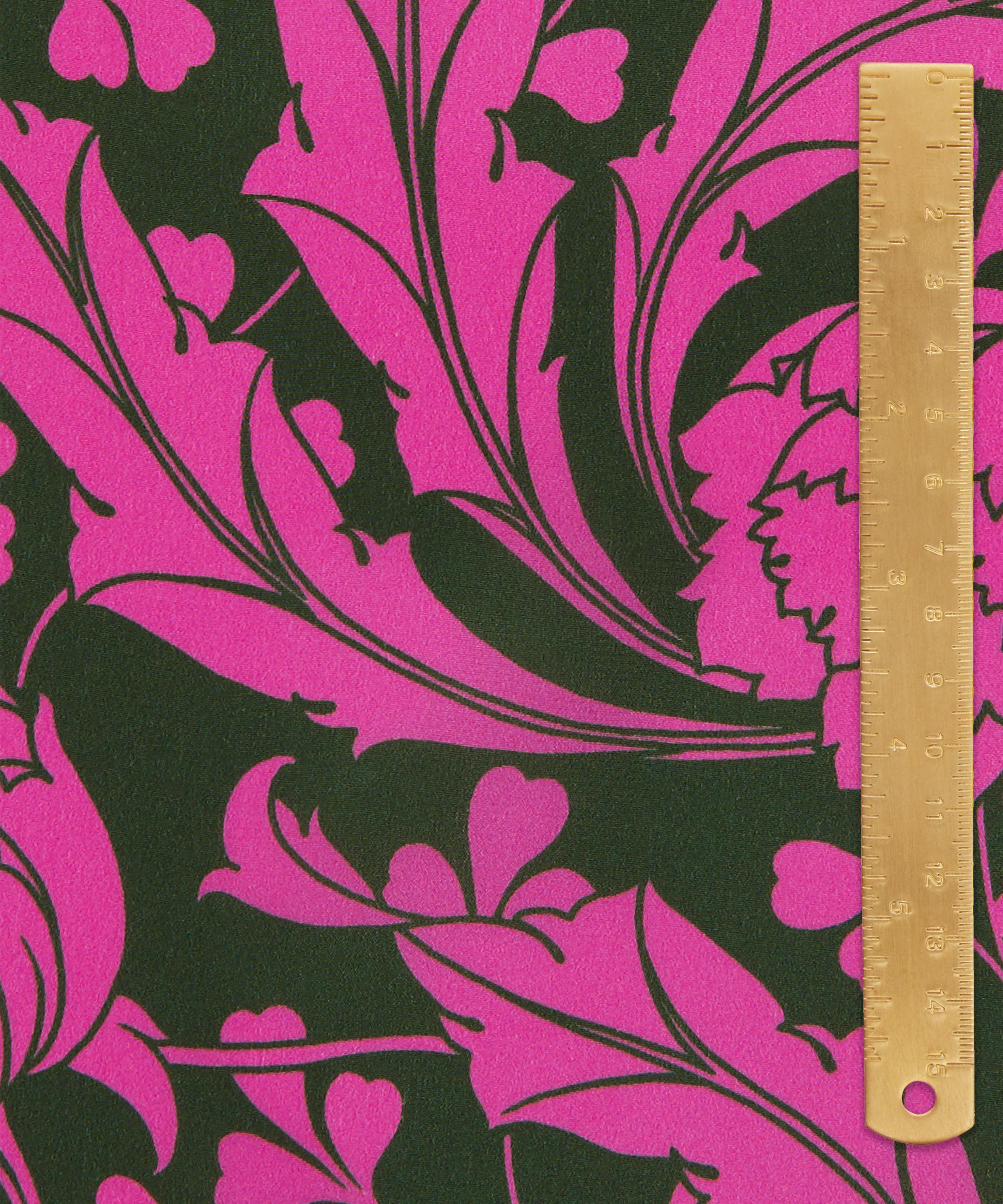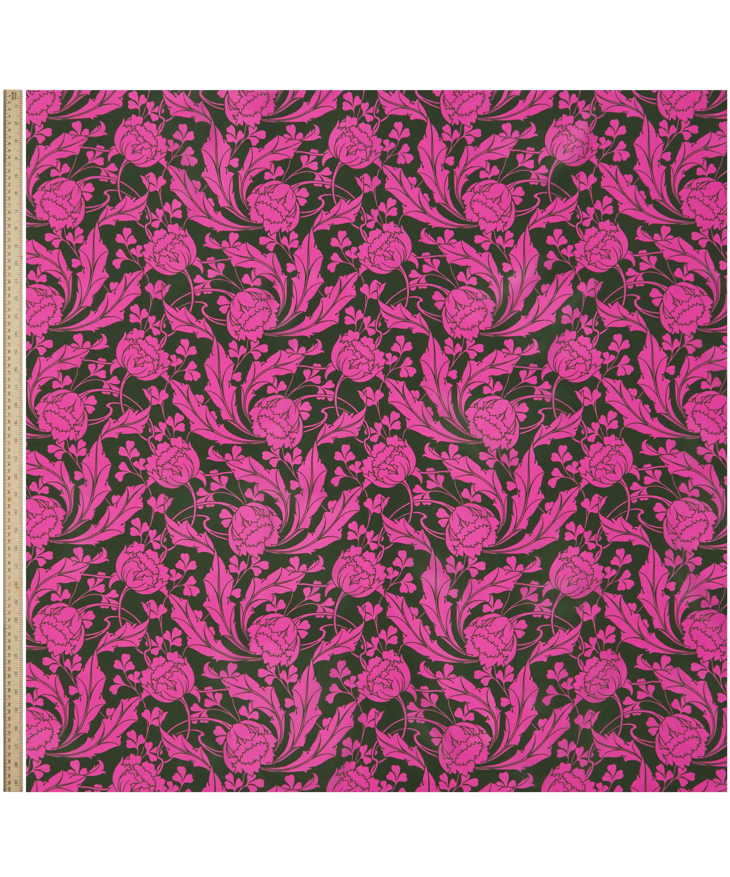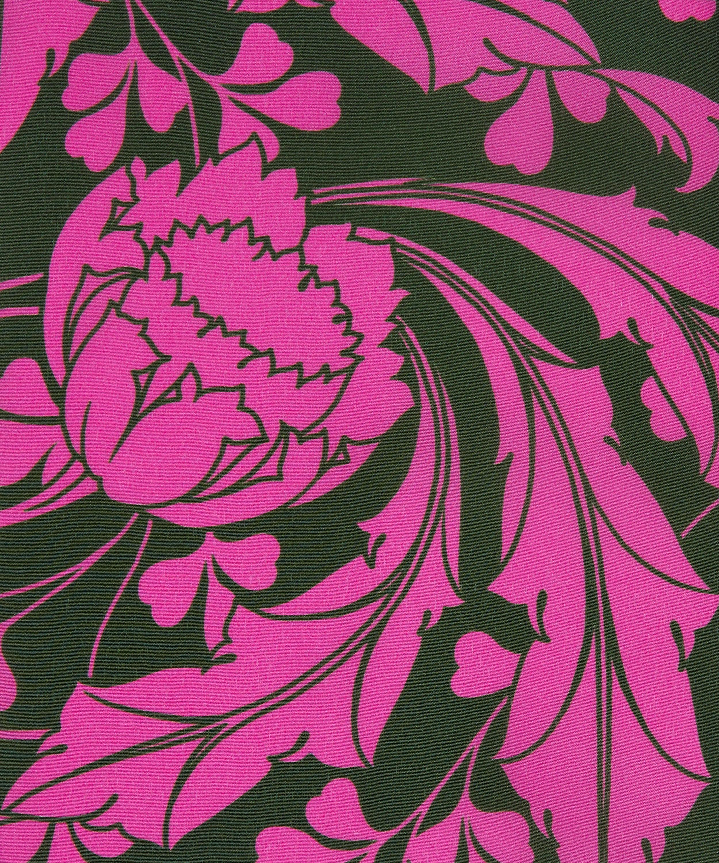 Ezra Venus was inspired by an unfinished Art Nouveau artwork discovered in the Liberty archive. Meticulously retraced into a trailing repeat, its striking tulips sweep into whiplash curves before blossoming into scrolling, leafy vines. Fashioning an ultramodern aesthetic, the bold linework and monochrome silhouettes accentuate the design’s fluidity and dynamic movement. This print is part of the Craftsmanship narrative of this collection, exploring the creative process from within the Liberty archive, from print impressions and embroidered studies, to ceramics, jewellery, and furniture. Uncover the origins of the designers’ musings through artworks inspired by their sketchbooks and prototypes.