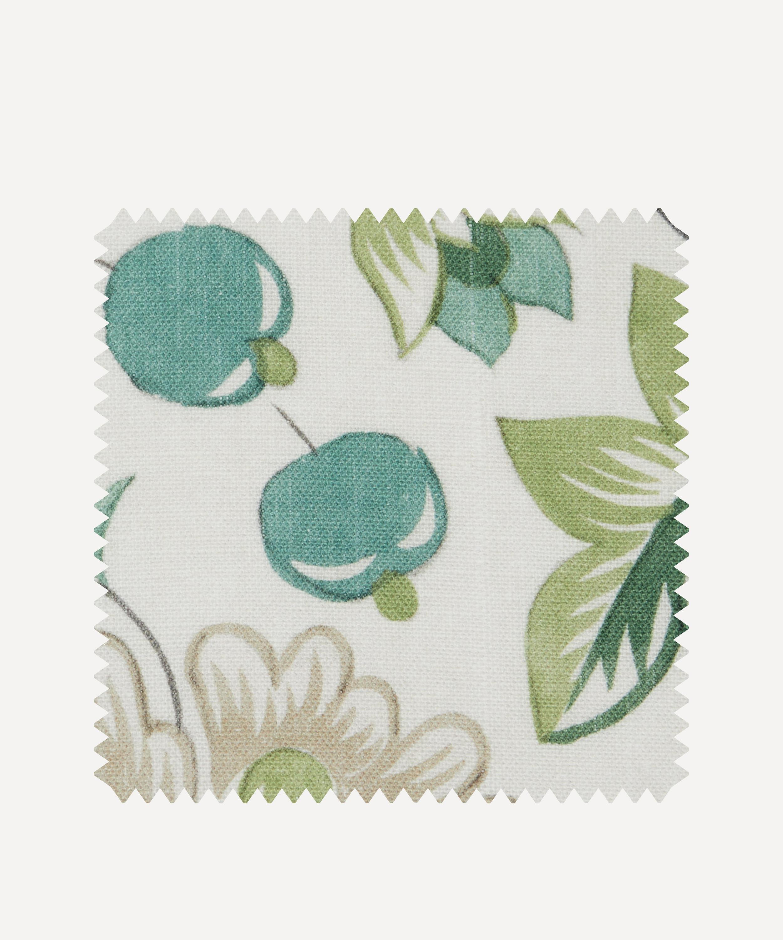 Inspired by a large-scale artwork discovered in the Liberty archive, this magnificent, trailing botanical of stylised flowers, leaves, and berries, was originally hand-painted in watercolour. Redrawn with graphic linework in refreshing palettes, Feather Trail captures a unique aesthetic that marries the tradition of decorative embroidery with a contemporary twist. Printed in Italy onto a beautiful linen with a heavy drape, this fabric is suitable for drapery, cushions, and accessories.