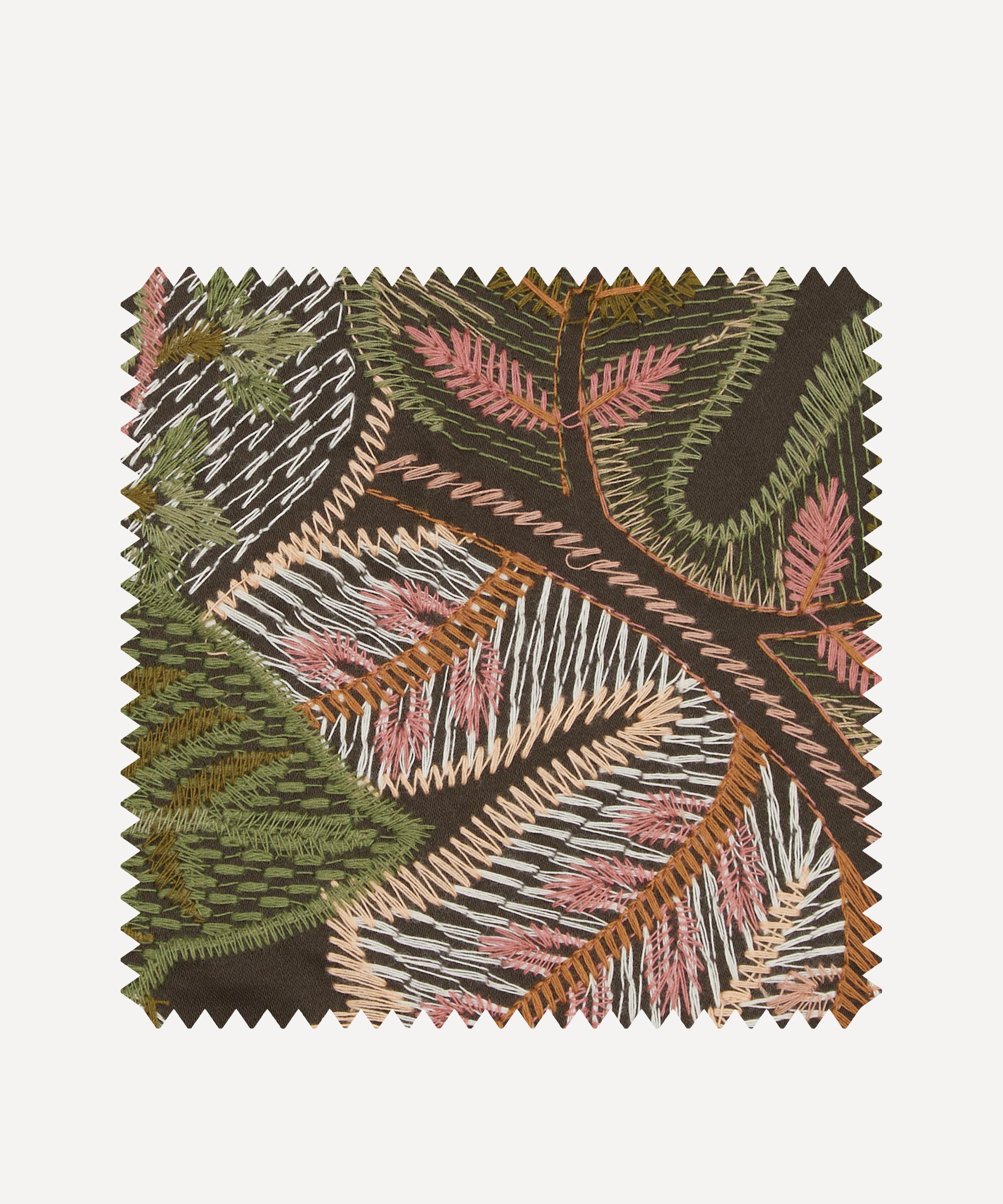Now rendered for the first time as a beautiful densely embroidered fabric, this design is a truly spectacular botanical paisley of tropical palms, feathery fronds, and graceful ferns. Embroidered using matte yarns on a rich cotton base, suitable for light domestic upholstery, drapery, cushions, and accessories. Cypress Stitch is an interpretation of Cypress Voyage, a sumptuous wallpaper design in the Botanical Atlas collection, printed on grass cloth in four colour stories.