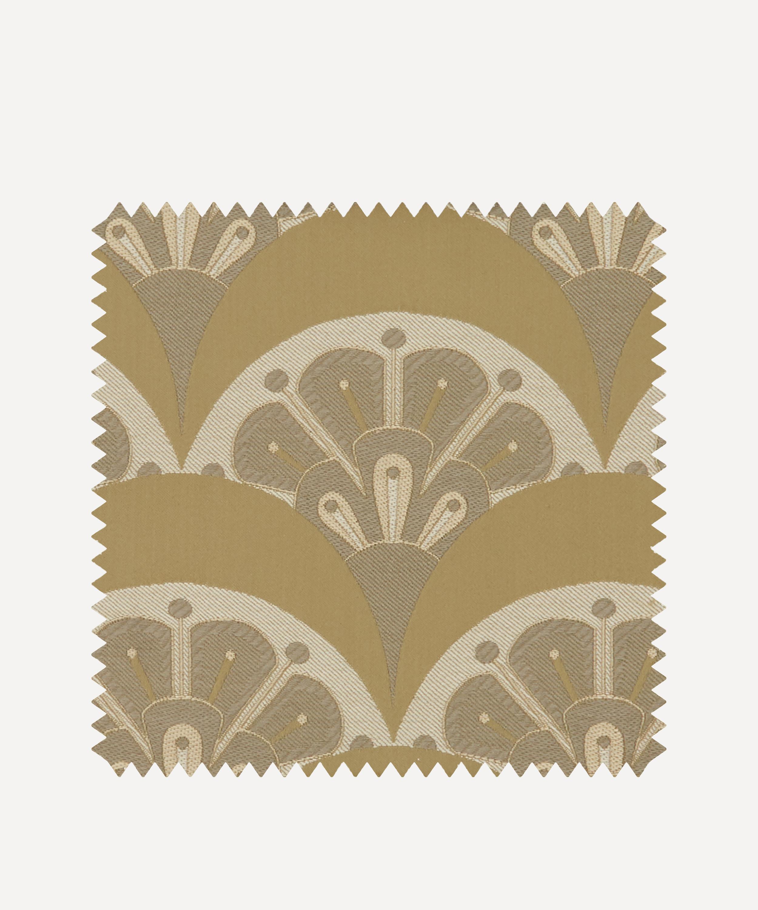 Deco Scallop is inspired by Liberty’s archive catalogues of the late 1890s to 1910s, when beautiful Japanese Art Deco fans and wallpapers were imported alongside fabrics, jewellery, porcelain, screens, and rugs. The motif was developed by the Liberty design studio as a simple contemporary woven jacquard design – a modern take on the Liberty peacock feather and Art Deco fan.