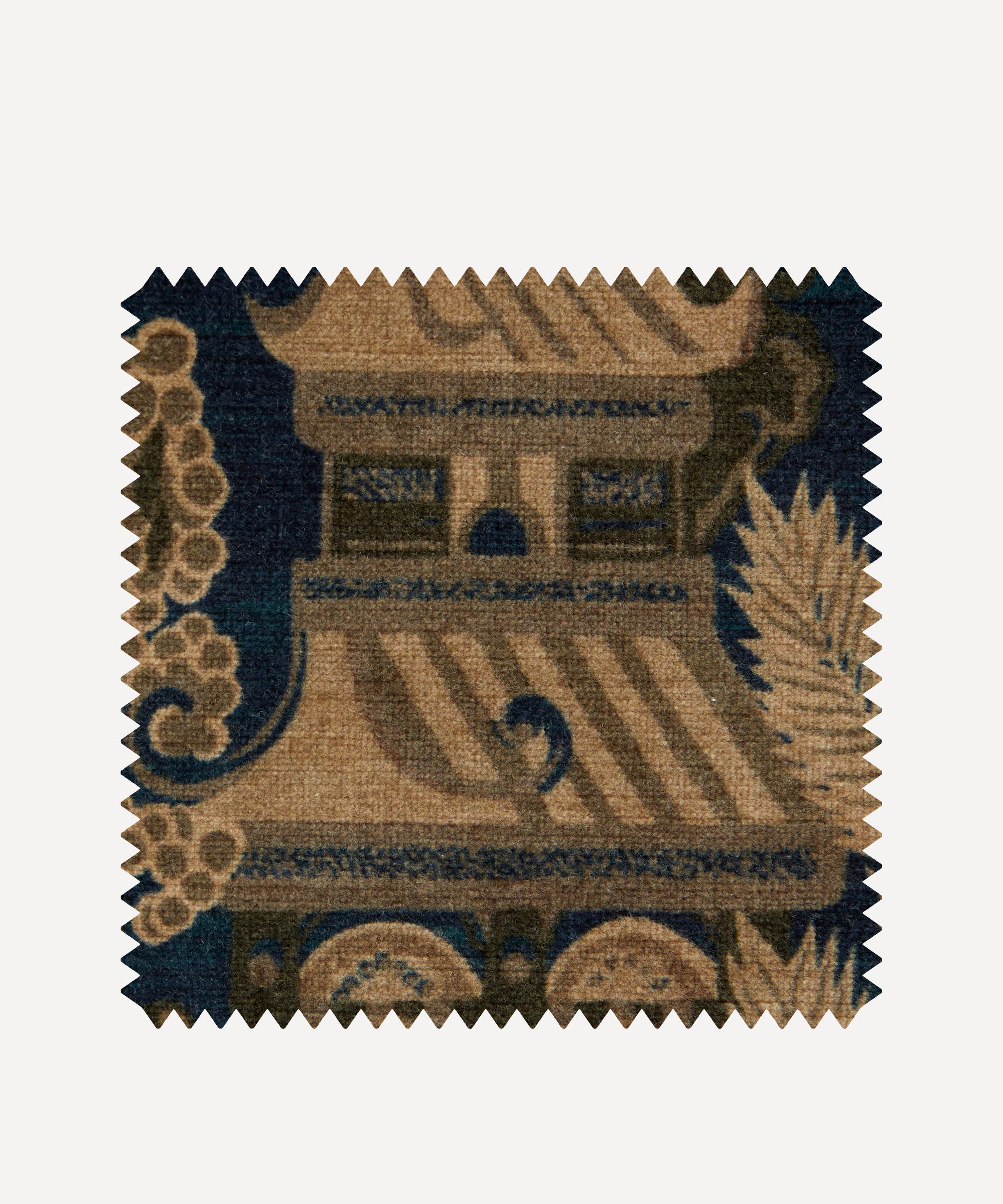 The Botanical Atlas fabric collection celebrates our historic lineage of craftsmanship and design through a cross-pollination of styles and visual narratives. Richly layered embroideries, opulent textured weaves, and contemporary printed velvets and linens are juxtaposed with a selection of elegant stripes and mesmerising geometrics - expertly crafted using traditional and cutting-edge techniques in Italy, Belgium, and India. This magnificent landscape of Floating Pavilion was originally printed as a Liberty furnishing fabric during the 1970s.