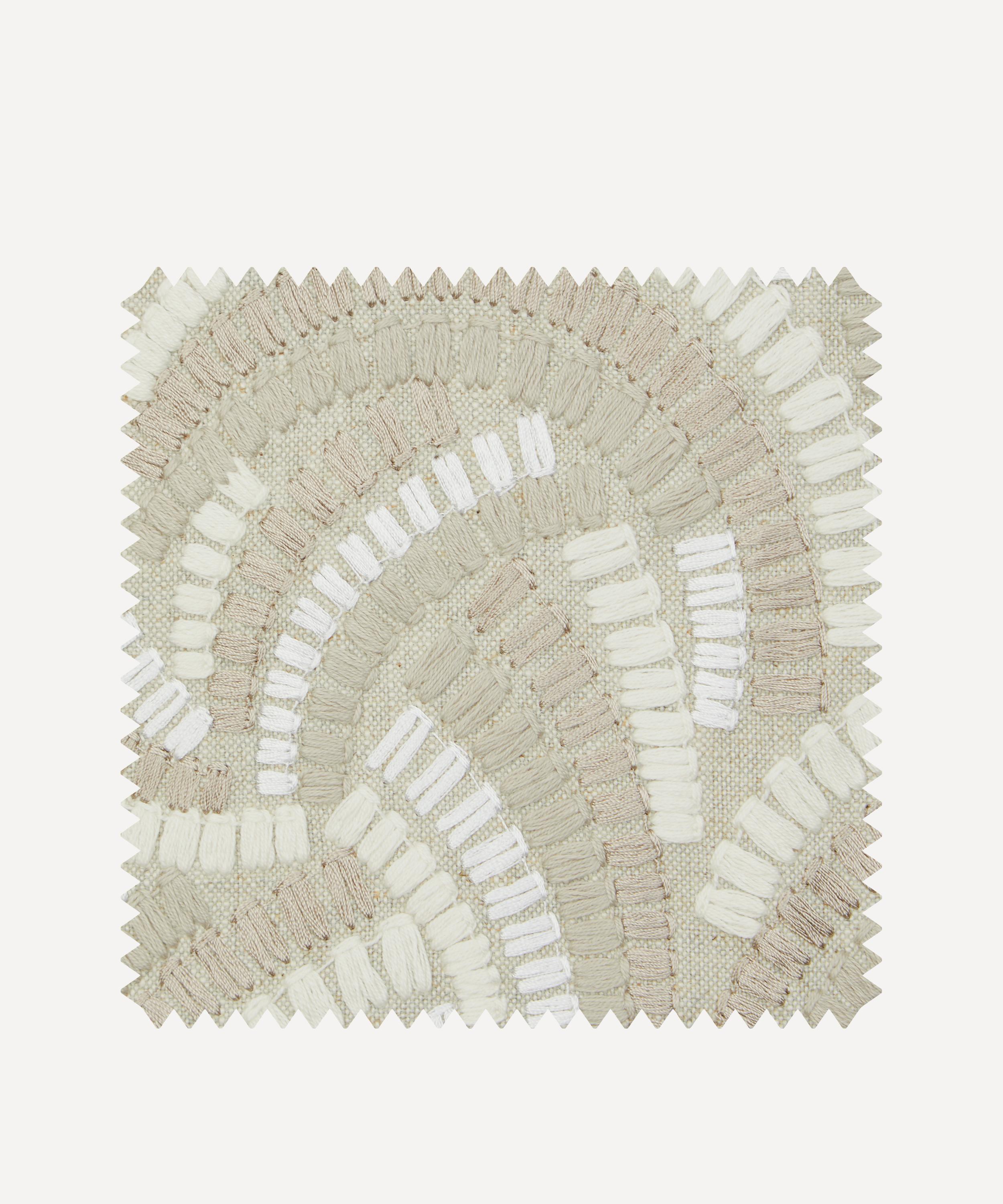 Beautifully illustrated with dynamic geometry and delicate precision, this wonderfully kinetic pattern’s rhythmic curves display an endless optical illusion of mesmerising movement. Embroidered in India with harmonious tonal colours, Kimono Knot is suitable for drapery, cushions, and accessories.