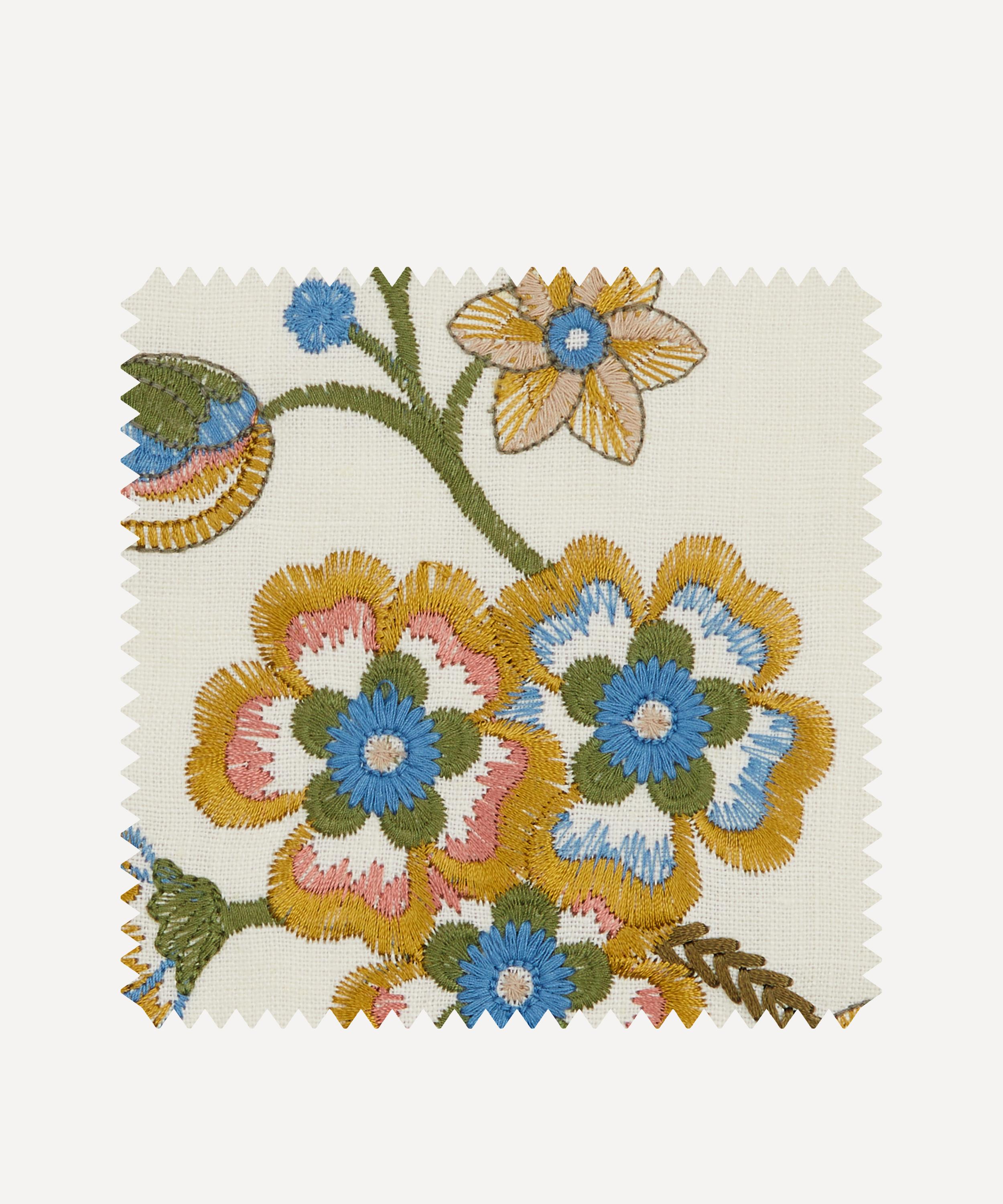 The Botanical Atlas fabric collection celebrates our historic lineage of craftsmanship and design through a cross-pollination of styles and visual narratives. Richly layered embroideries, opulent textured weaves, and contemporary printed velvets and linens are juxtaposed with a selection of elegant stripes and mesmerising geometrics - expertly crafted using traditional and cutting-edge techniques in Italy, Belgium, and India. Taken from an antique Tree of Life design within the Liberty archive, Palampore Embroidery has historically appeared as a best-selling scarf design.