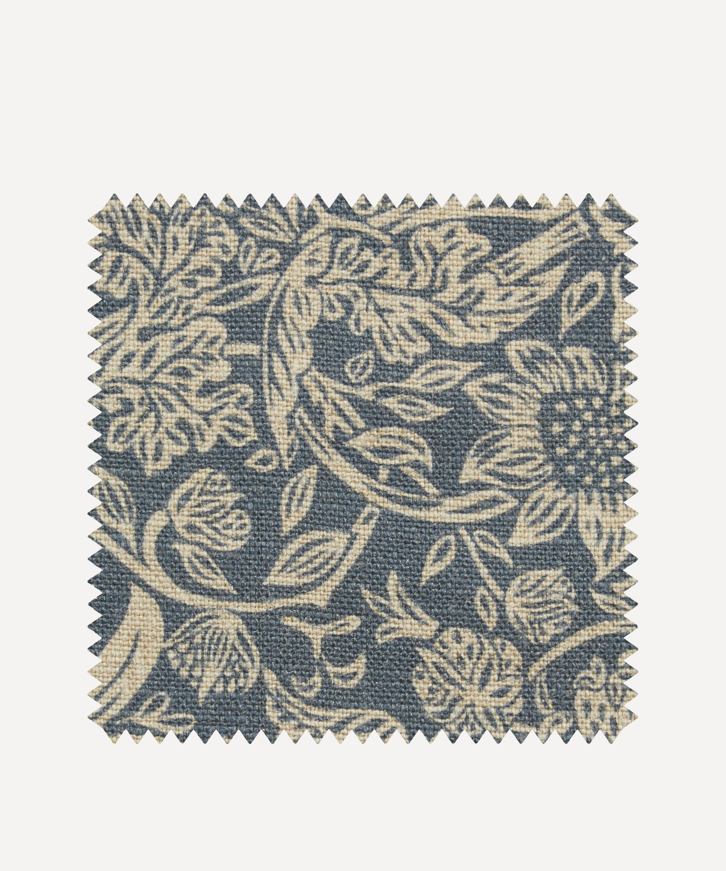 Strawberry Thief was designed by William Morris in 1883, and is part of a group of designs incorporating animals with flowers. Liberty first produced it as a furnishing fabric in 1979. Strawberry Meadowfield is a one-colour version of the original. It is expertly printed in Italy onto our Ladbroke linen – a beautiful heavyweight base created from pure linen. Ladbroke linen has an excellent drape due to its superior weight, and is also well-suited for use in domestic upholstery. The fine weave allows a beautiful print interpretation.