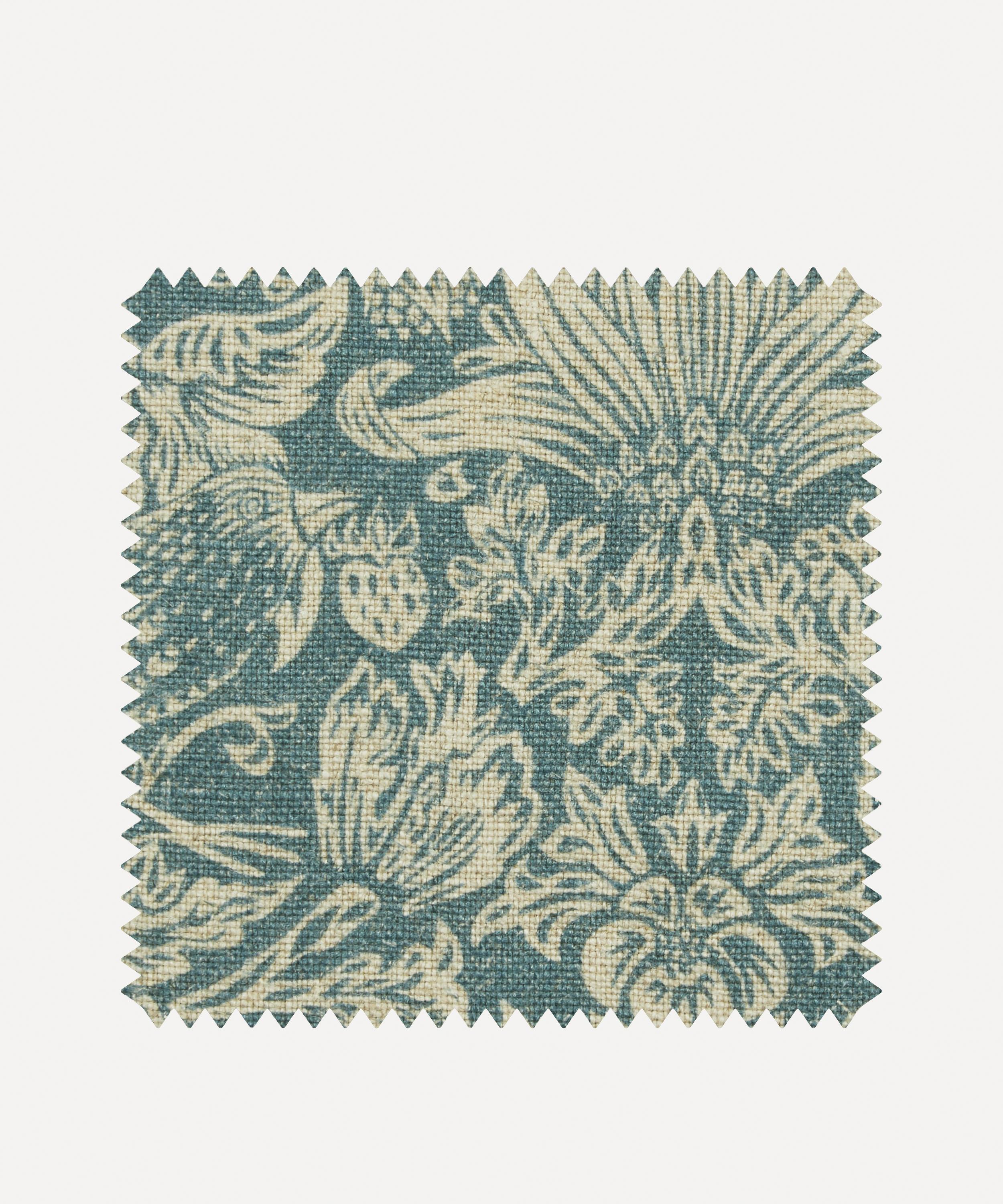Strawberry Thief was designed by William Morris in 1883, and is part of a group of designs incorporating animals with flowers. Liberty first produced it as a furnishing fabric in 1979. Strawberry Meadowfield is a one-colour version of the original. It is expertly printed in Italy onto our Ladbroke linen – a beautiful heavyweight base created from pure linen. Ladbroke linen has an excellent drape due to its superior weight, and is also well-suited for use in domestic upholstery. The fine weave allows a beautiful print interpretation.