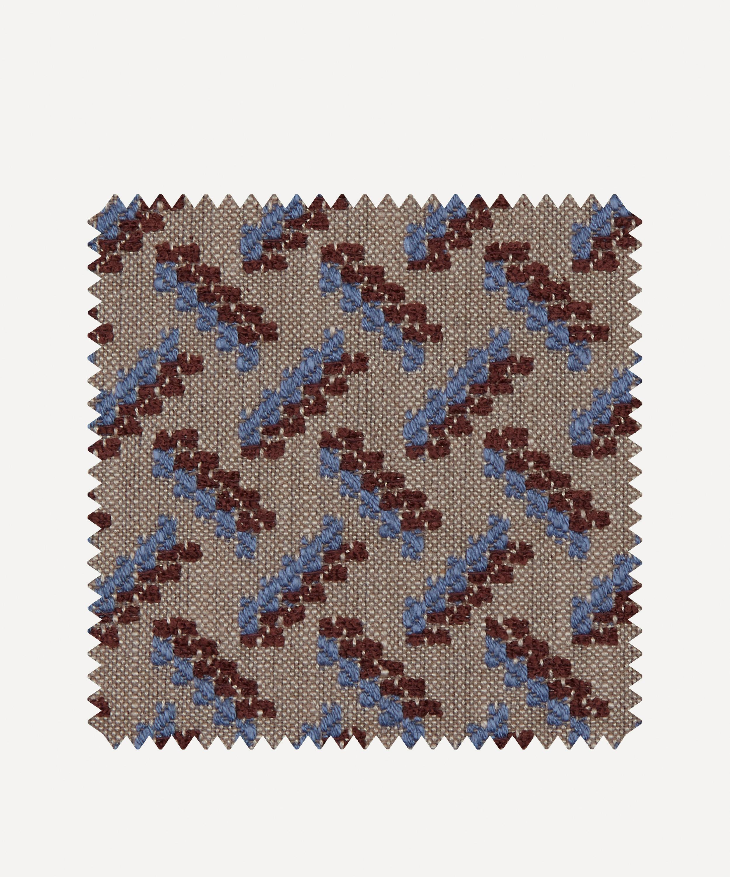 Echoing the grandeur of the Tudor-style architecture discovered within the Liberty flagship store, the building’s landmark chimneys are evoked in Tudor Brick’s geometric pattern. Crafted from handmade bricks inspired by those found at Hampton Court, each of the Regent Street store’s chimney bricks are shaped from special moulds to create unique patterns. Carefully woven with a cotton-linen blend, Tudor Brick is appropriate for upholstery, drapery, cushions, and accessories.